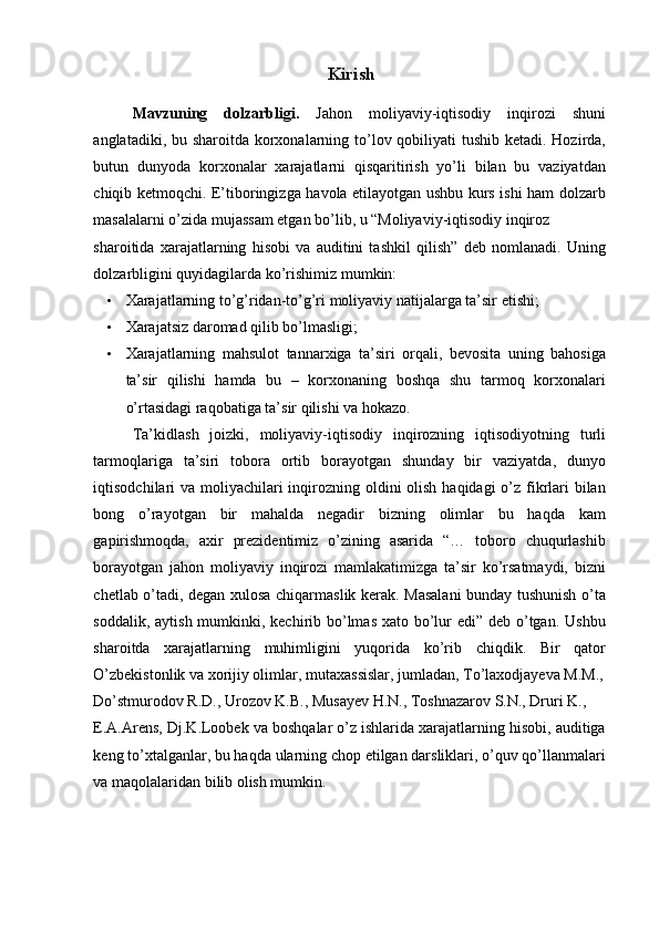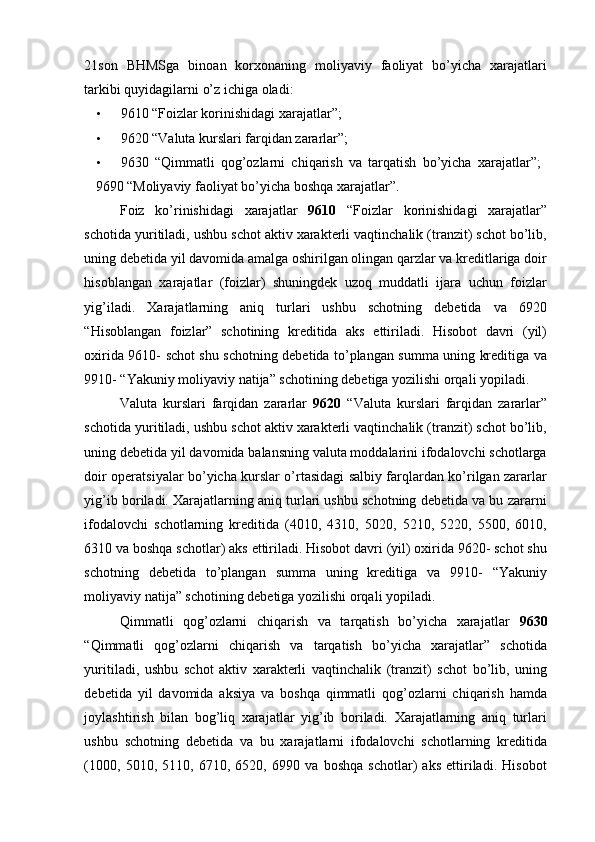 Moliyaviy faoliyat hisobi va hisobotda aks ettirish