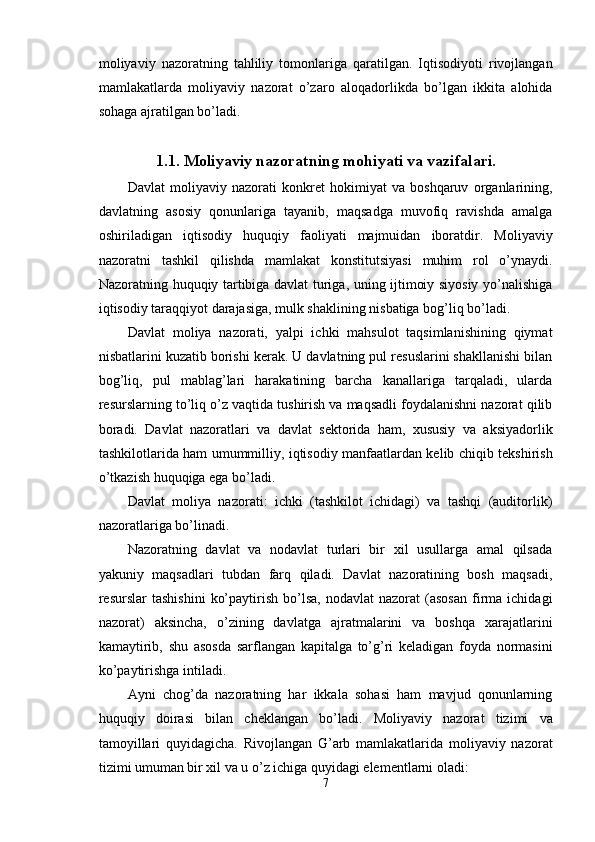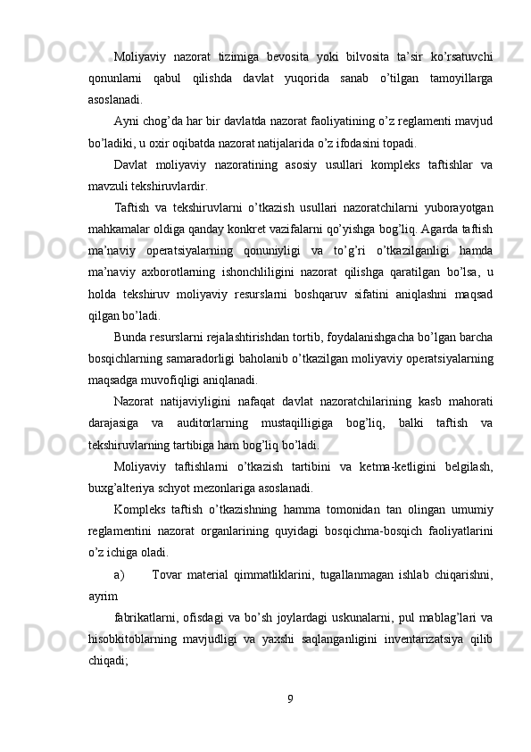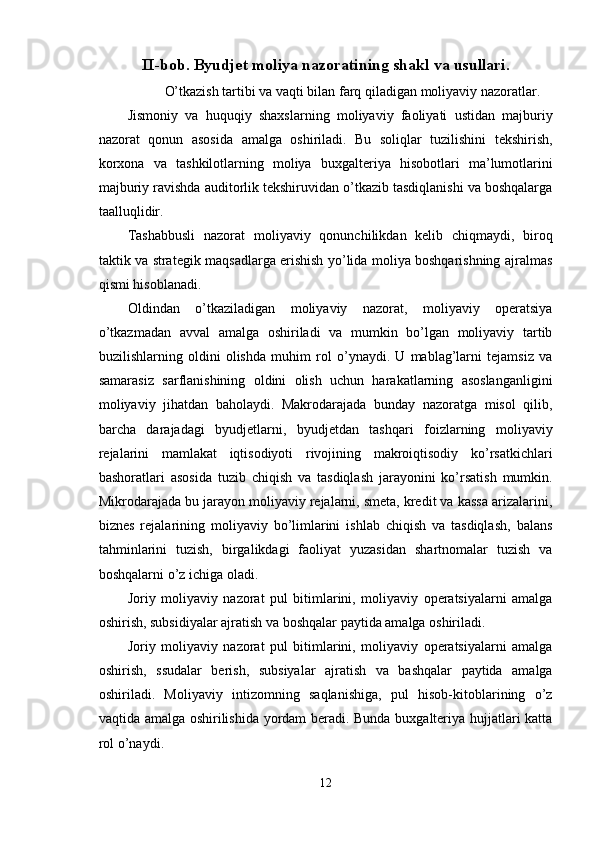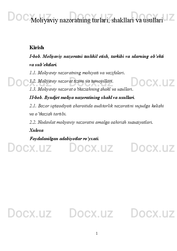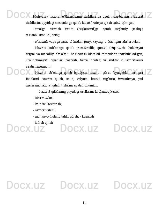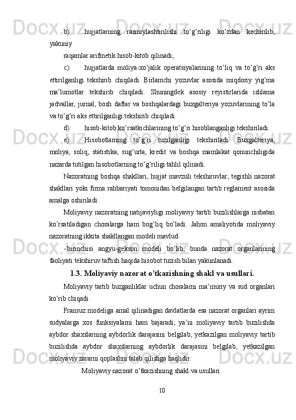 Moliyaviy nazoratning turlari, shakllari va usullari