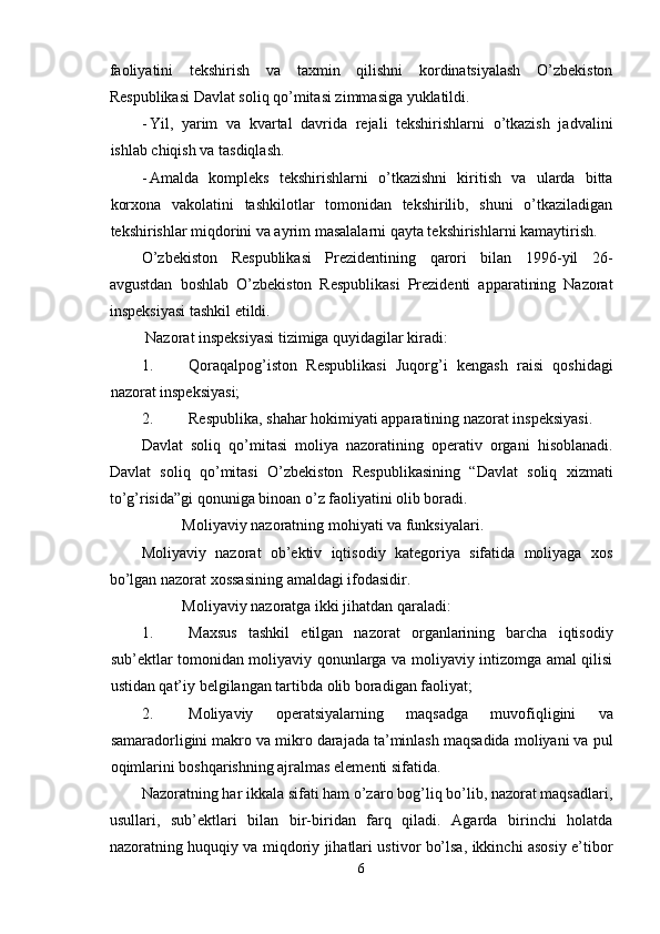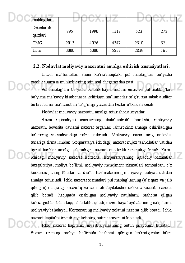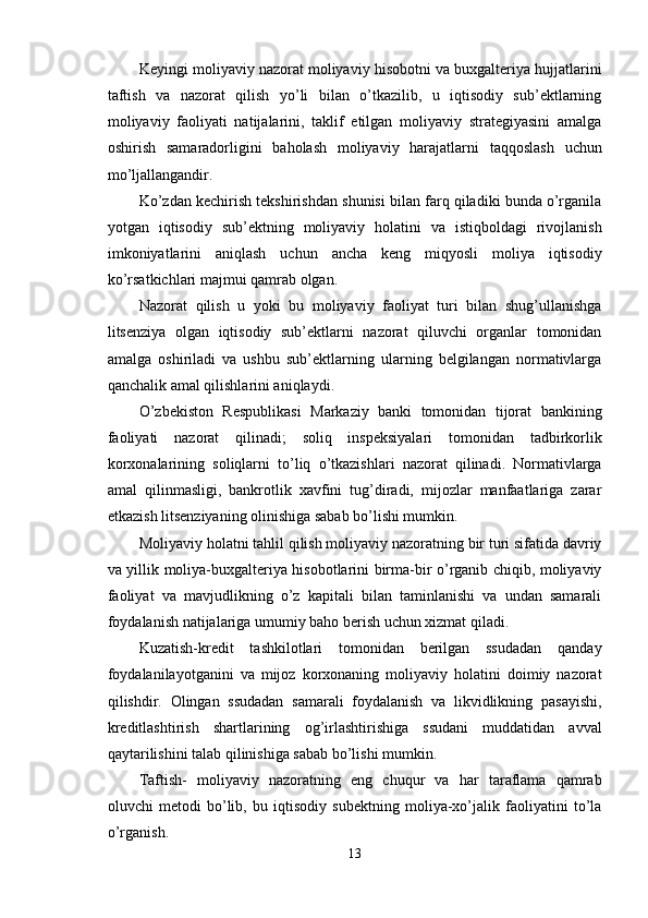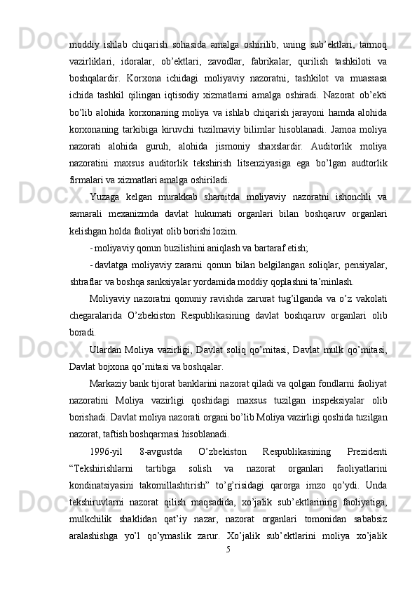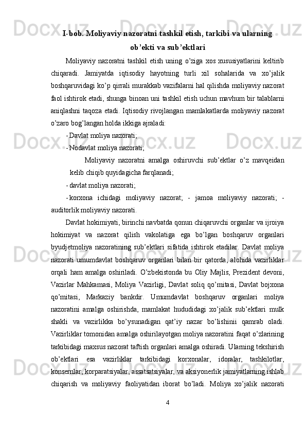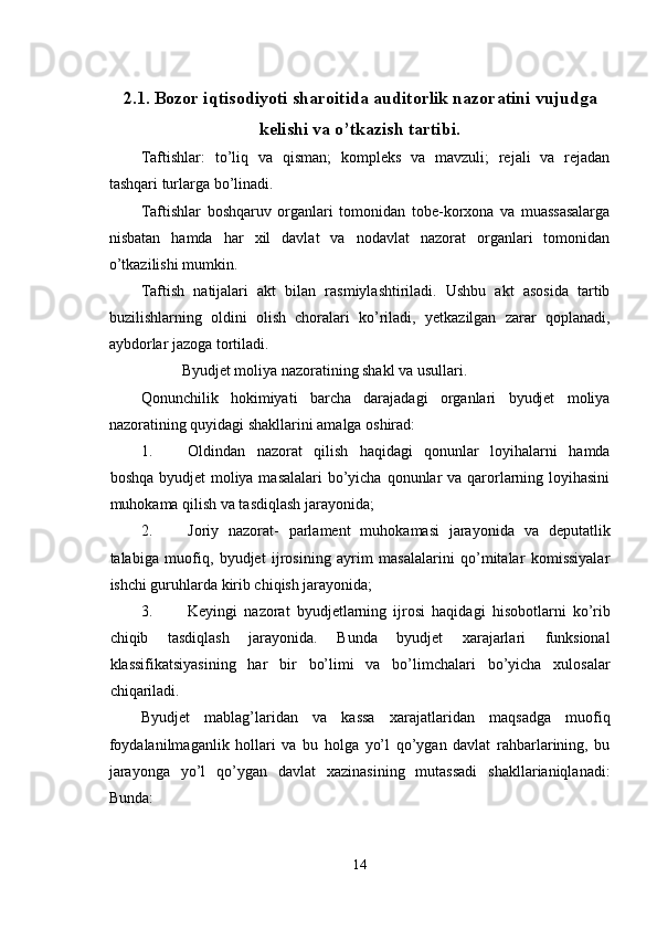 Moliyaviy nazoratning turlari, shakllari va usullari