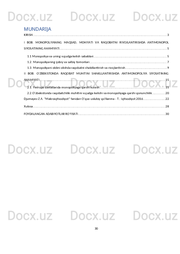Monopoliyaga qarshi kurash va raqobatni rivojlantirish