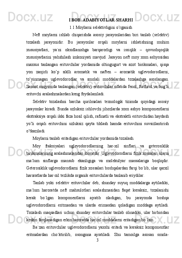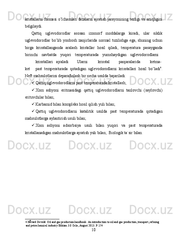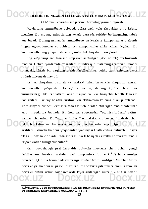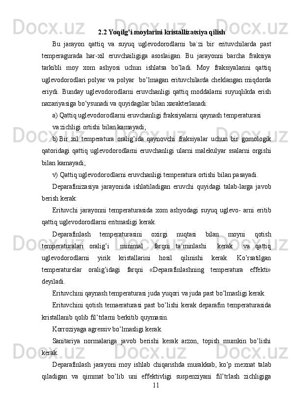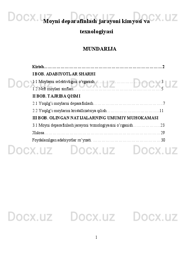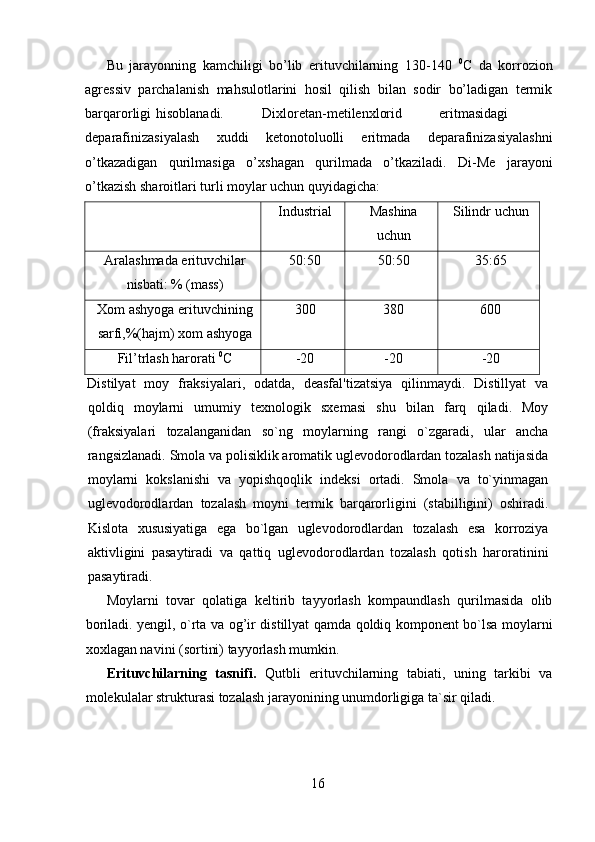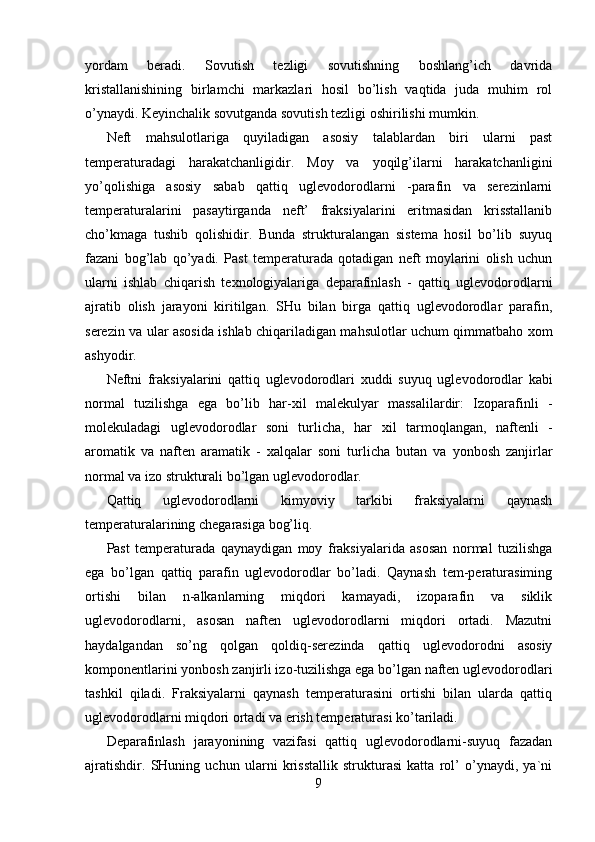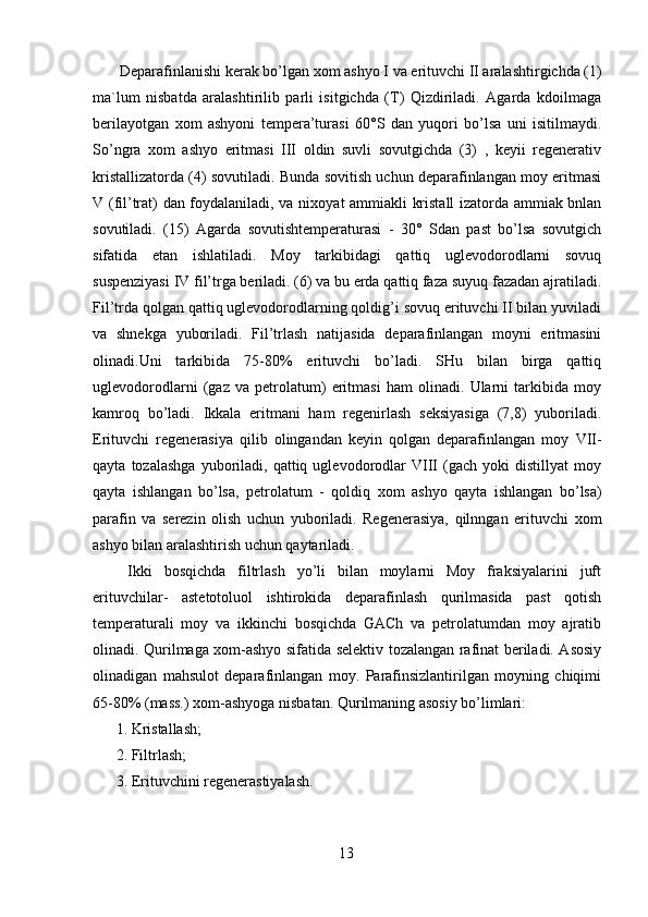 Moyni deparafinlash jarayoni kimyosi va texnologiyasi