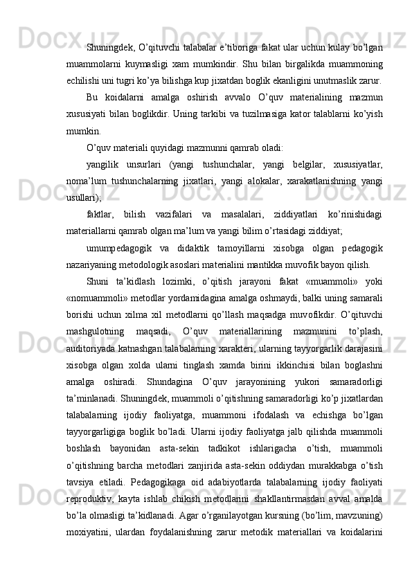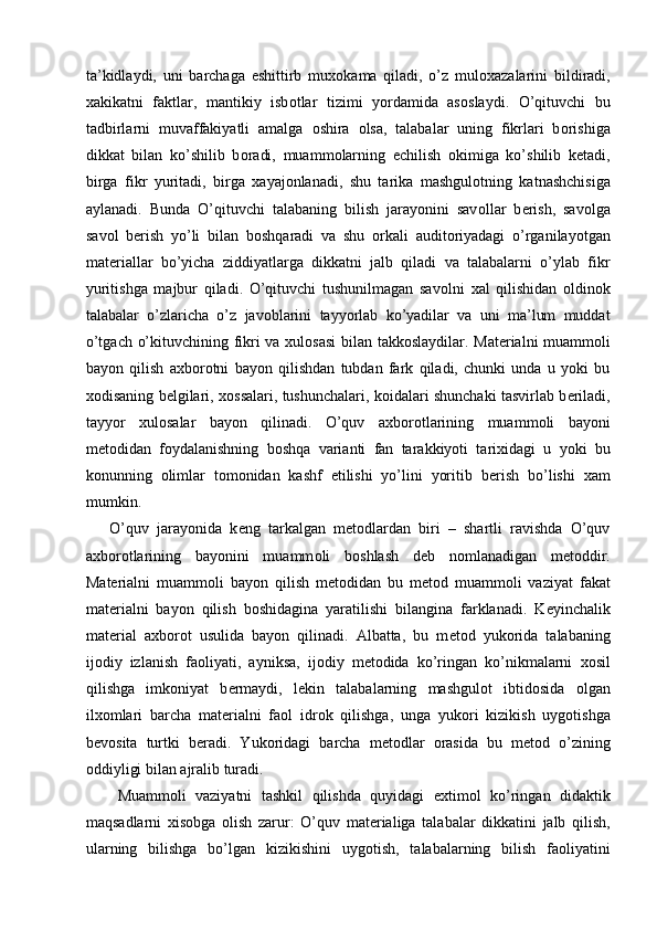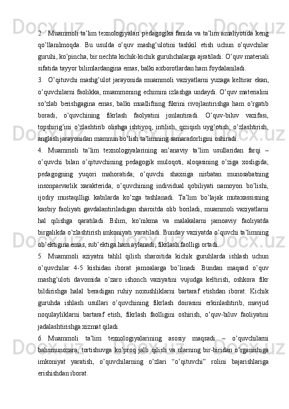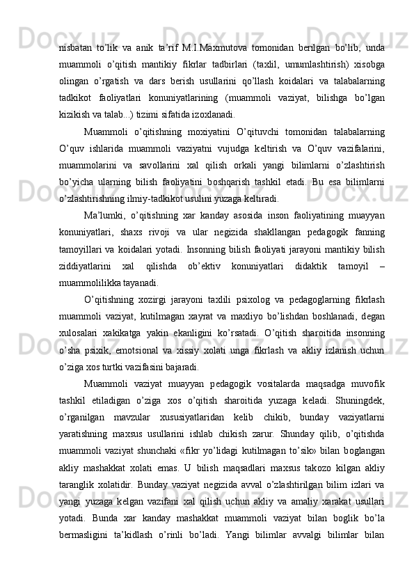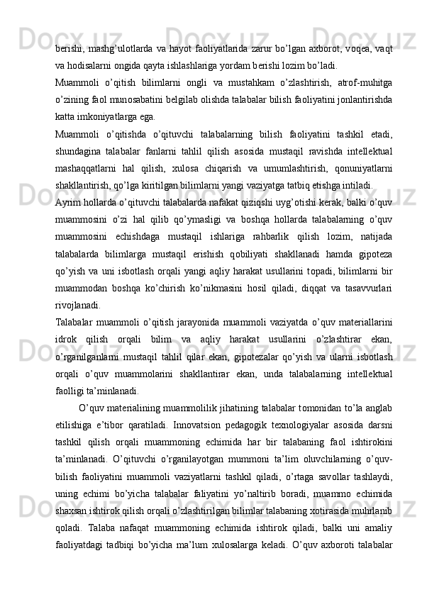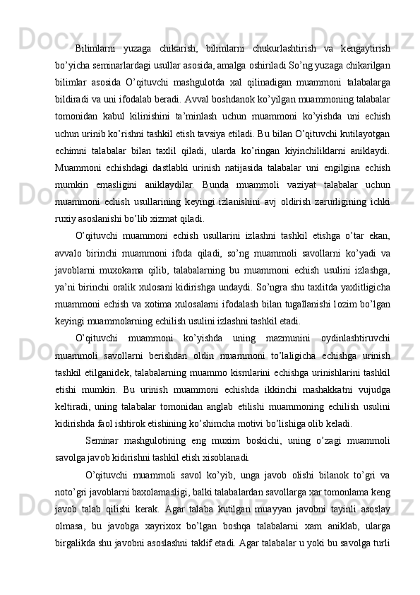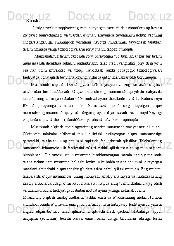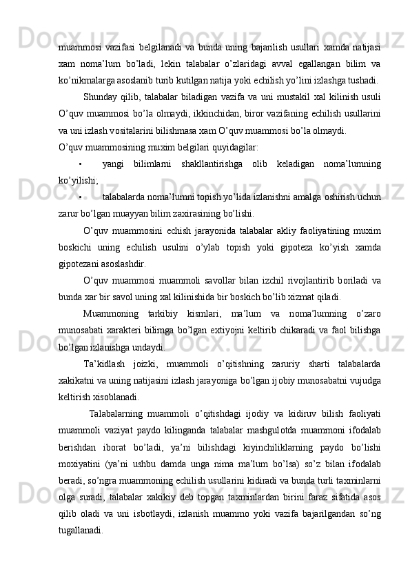Muammоli o’qitish kоntsеptsiyasi