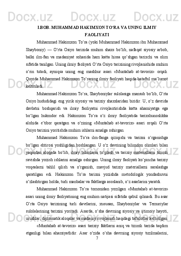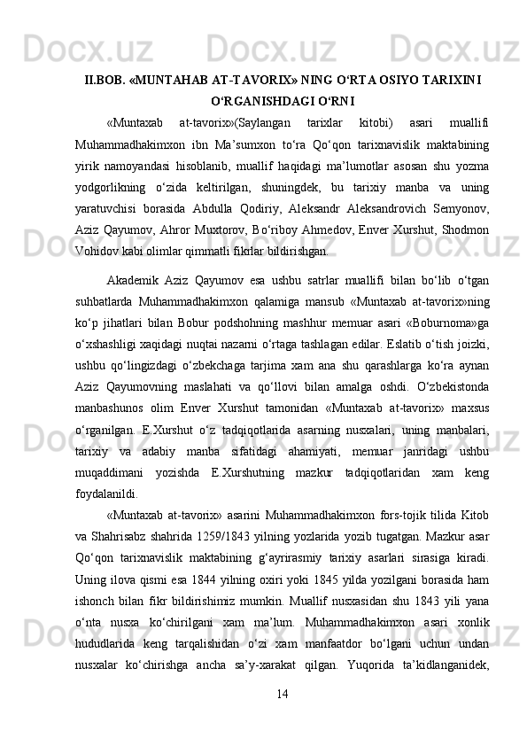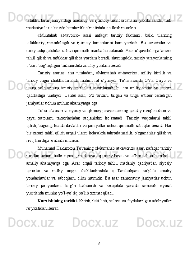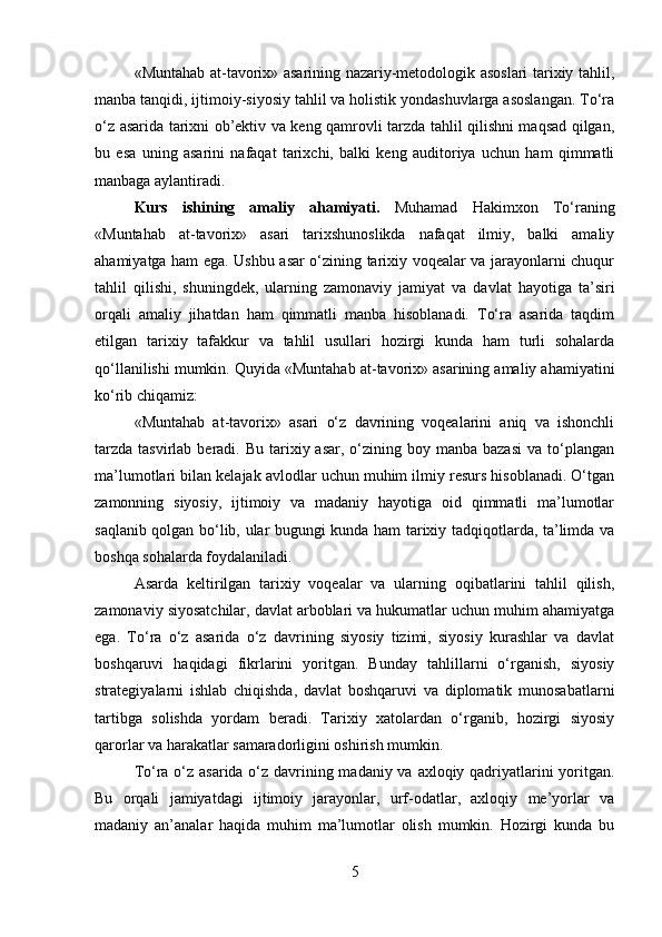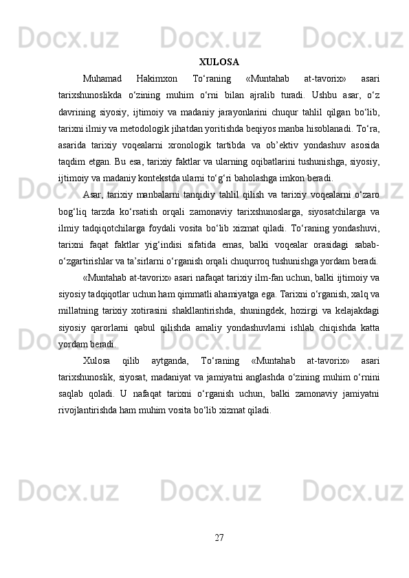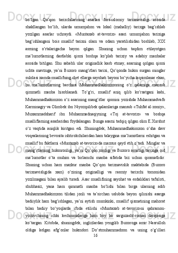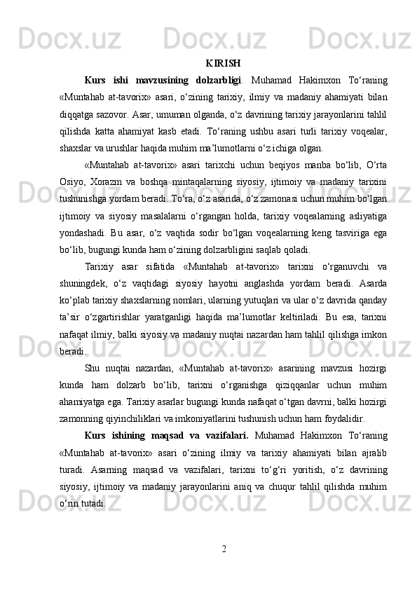 MUHAMMAD HAKIMXON TO‘RANING «MUNTAHAB AT-TAVORIX» ASARI