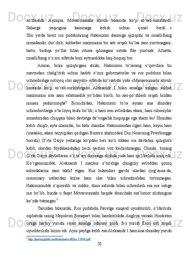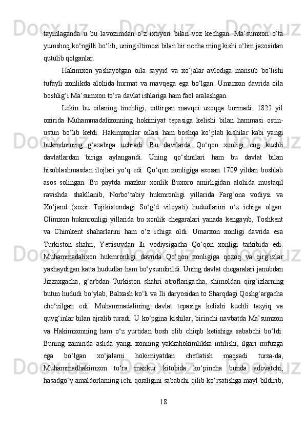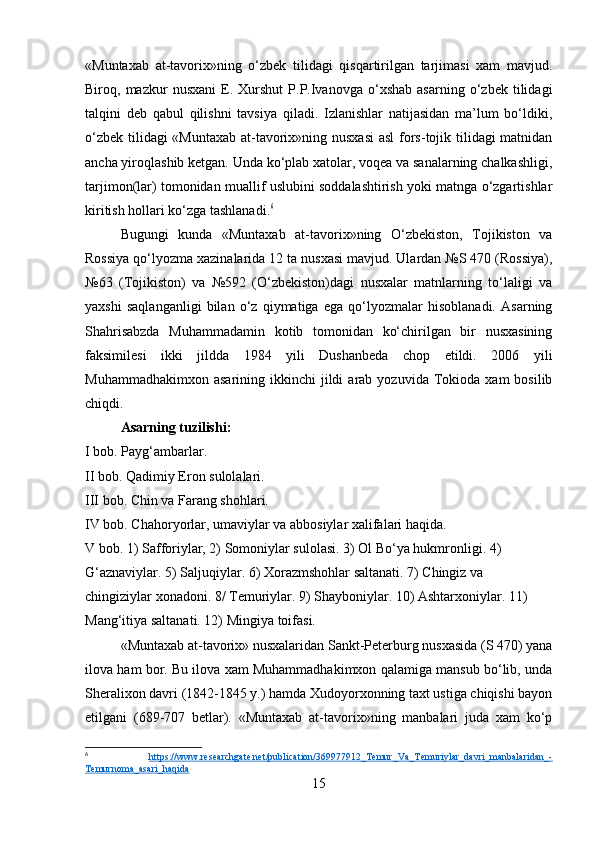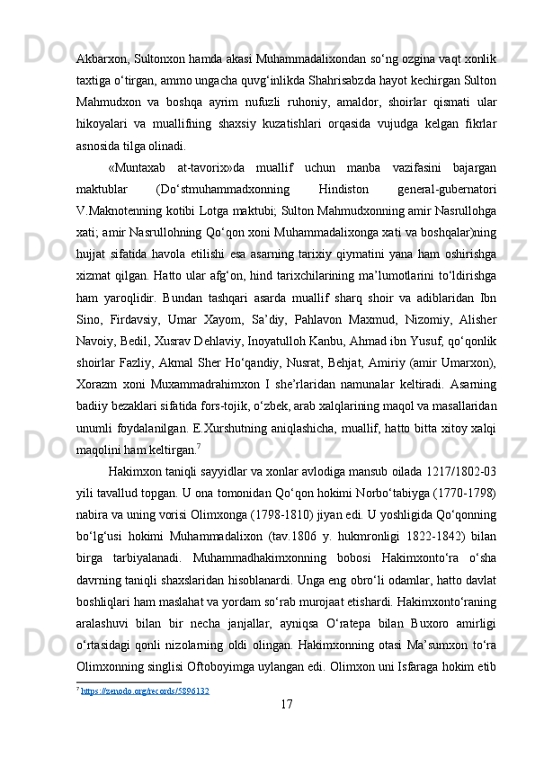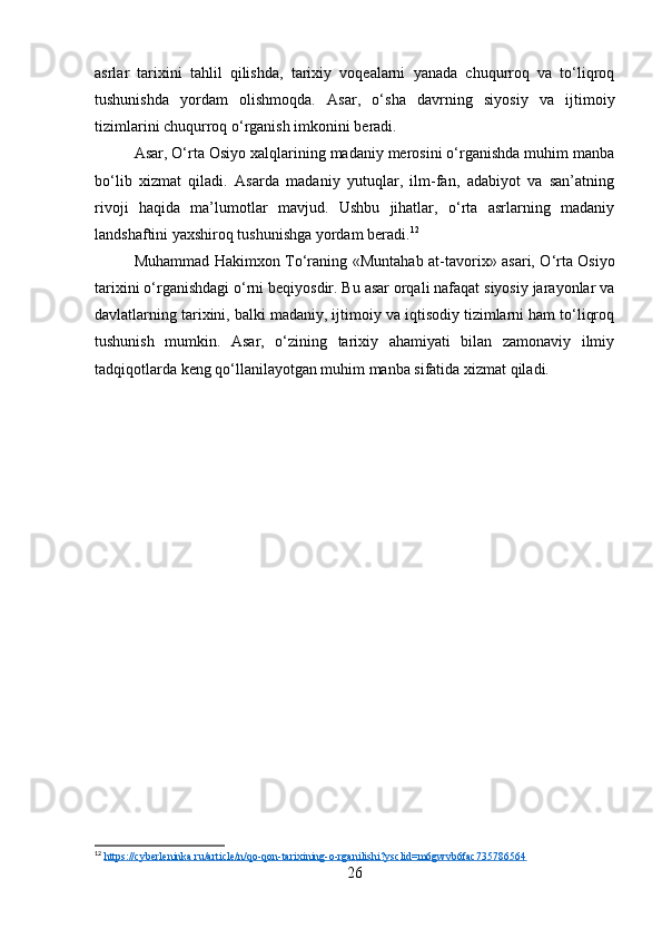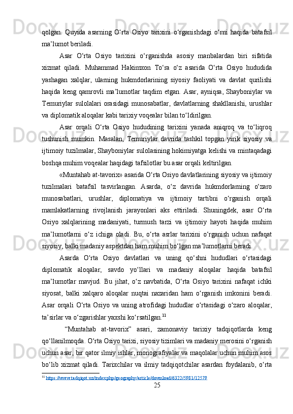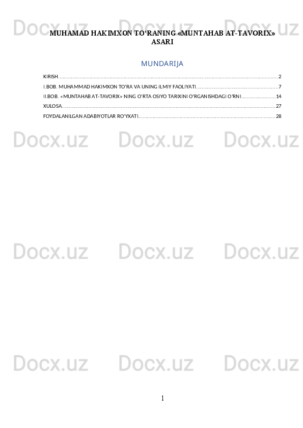 MUHAMMAD HAKIMXON TO‘RANING «MUNTAHAB AT-TAVORIX» ASARI