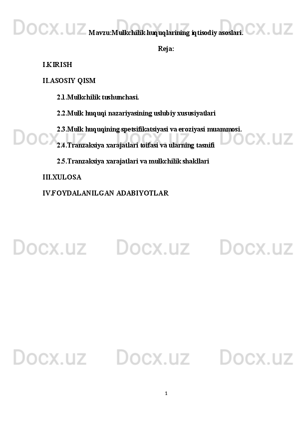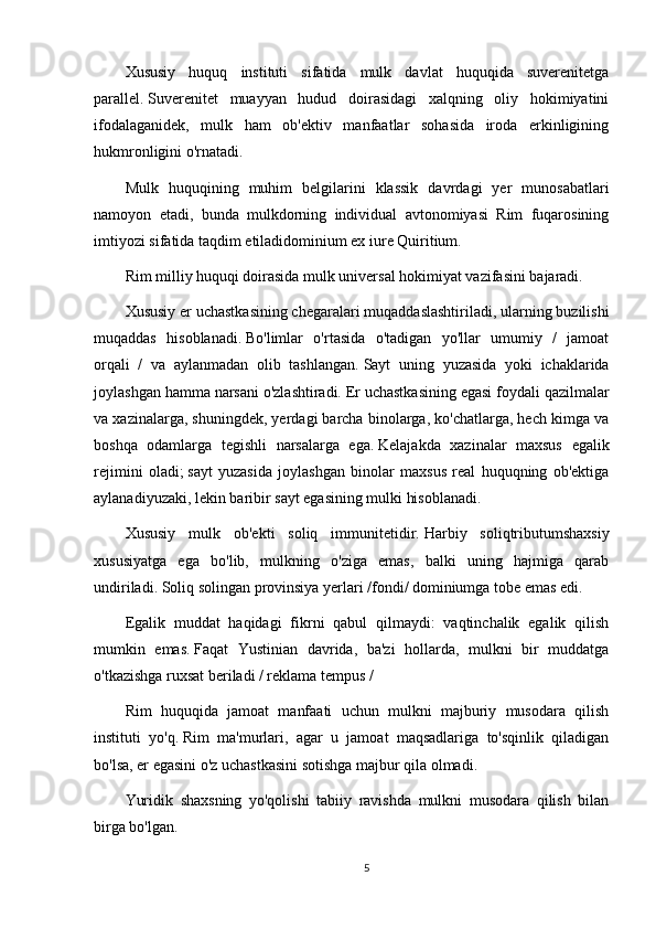 mulk   rejimiga   murojaat   qilishadi.   Xususiy   mulk   huquqi   ular   tomonidan   faqat