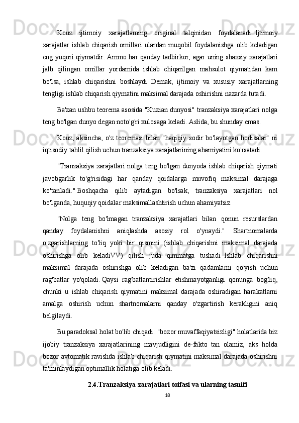 Ayrim   iqtisodchilar   nazariyalarida   tranzaksiya   xarajatlari   nafaqat   bozor