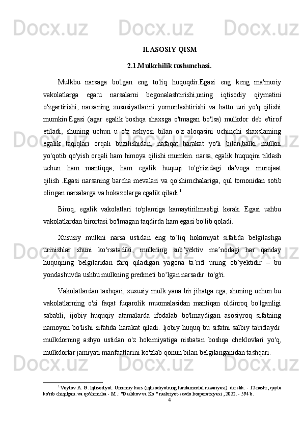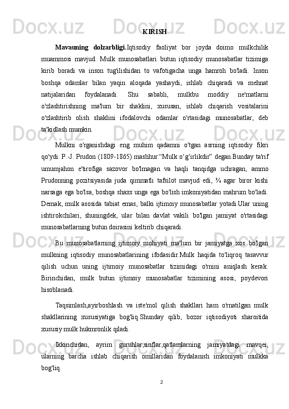 To'rtinchidan, har bir iqtisodiy tizim ichida unga xos bo'lgan mulkchilikning