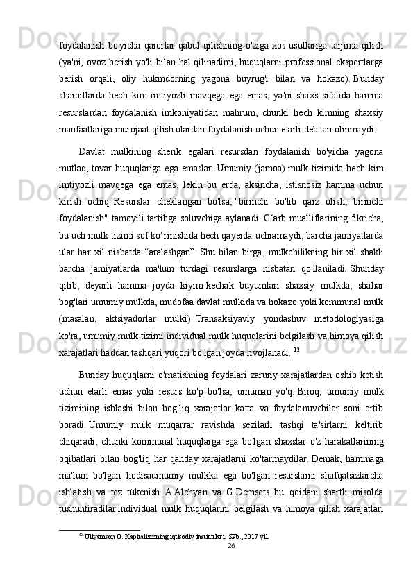 5. Kapelyushnikov R.I.   Mulk huquqining iqtisodiy nazariyasi.   M., 2019 yil.
