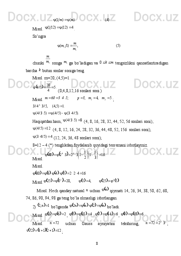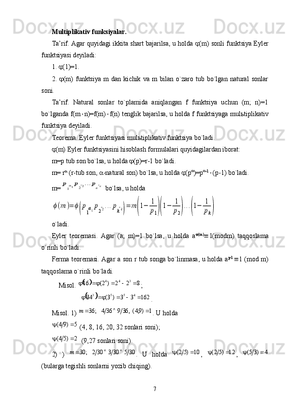 Multiplikativ funksiyalar.
