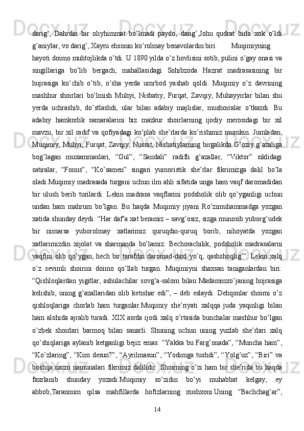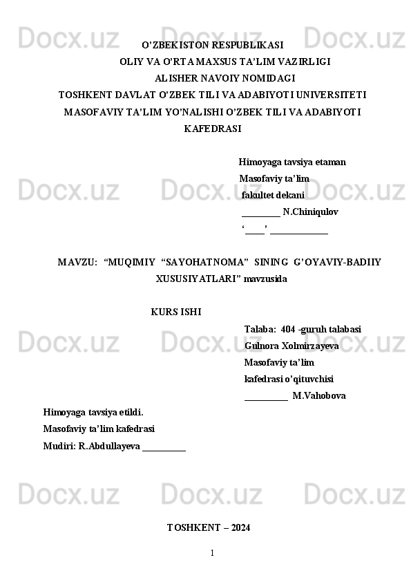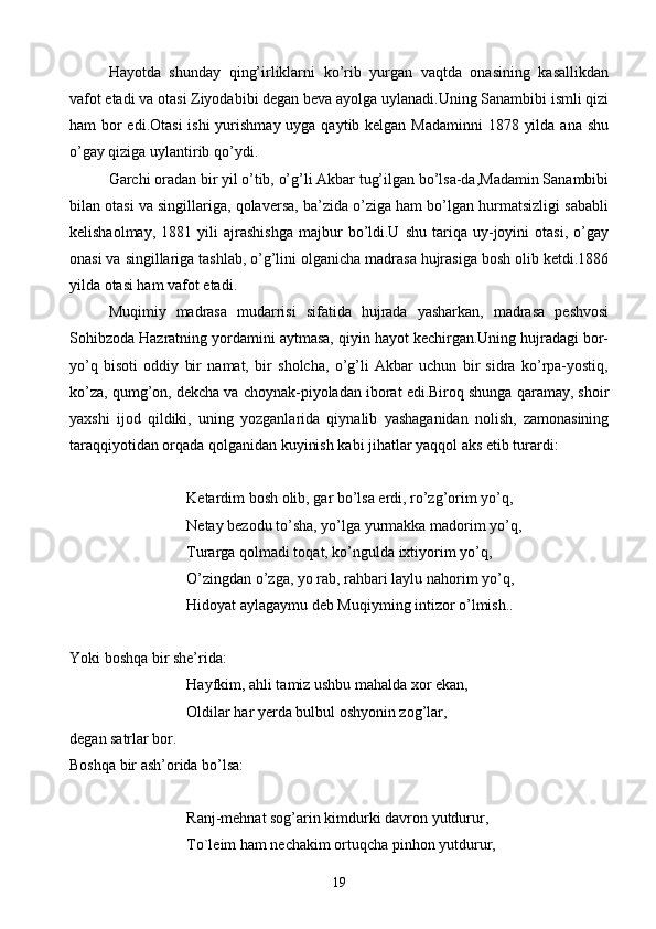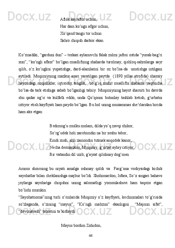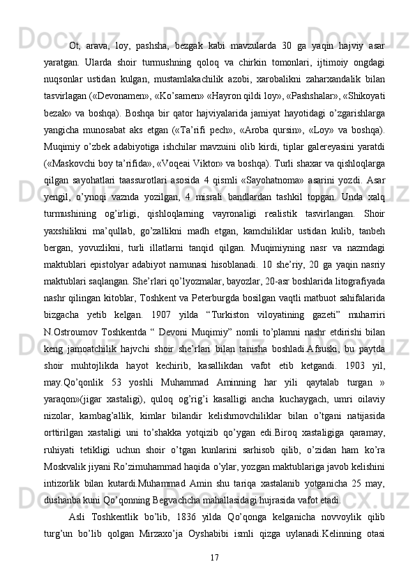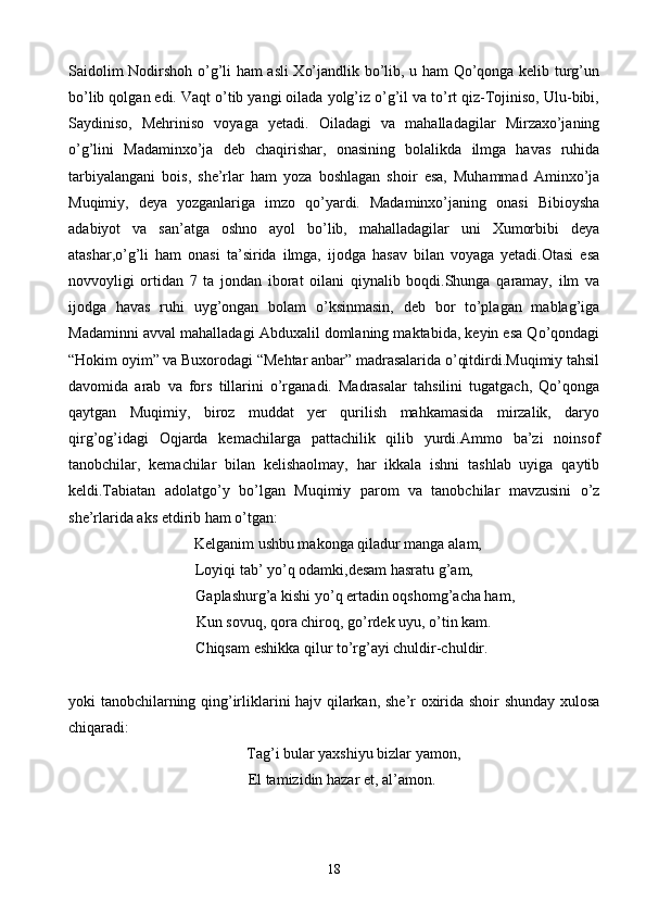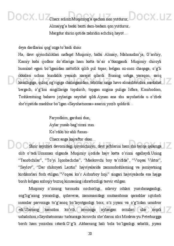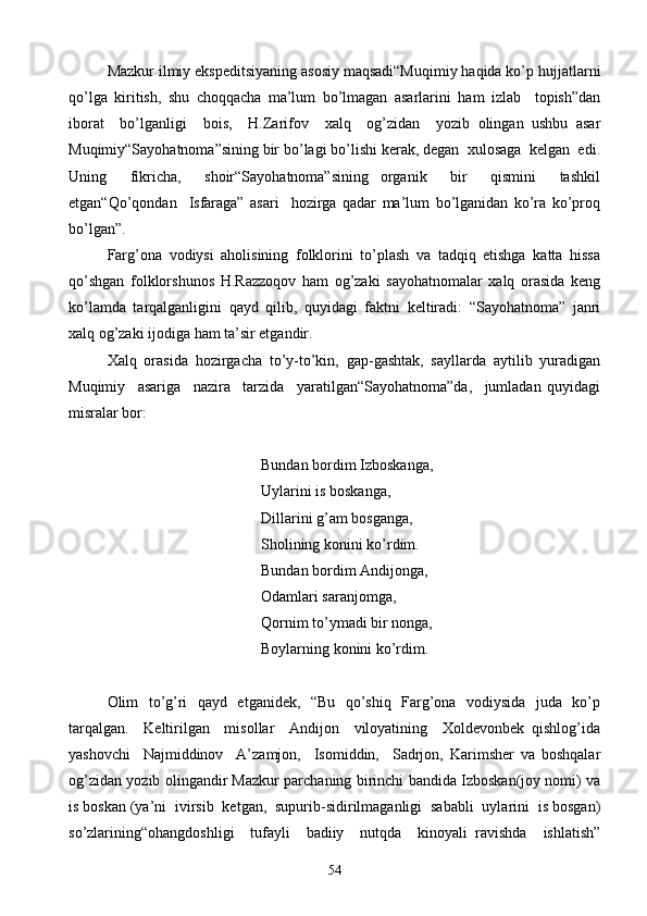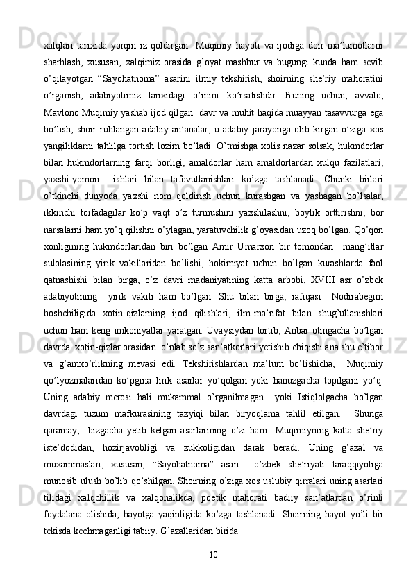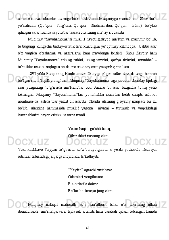 Muqimiy “Sayohatnoma” sining g’oyaviy-badiiy xususiyatlari