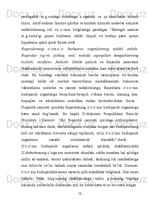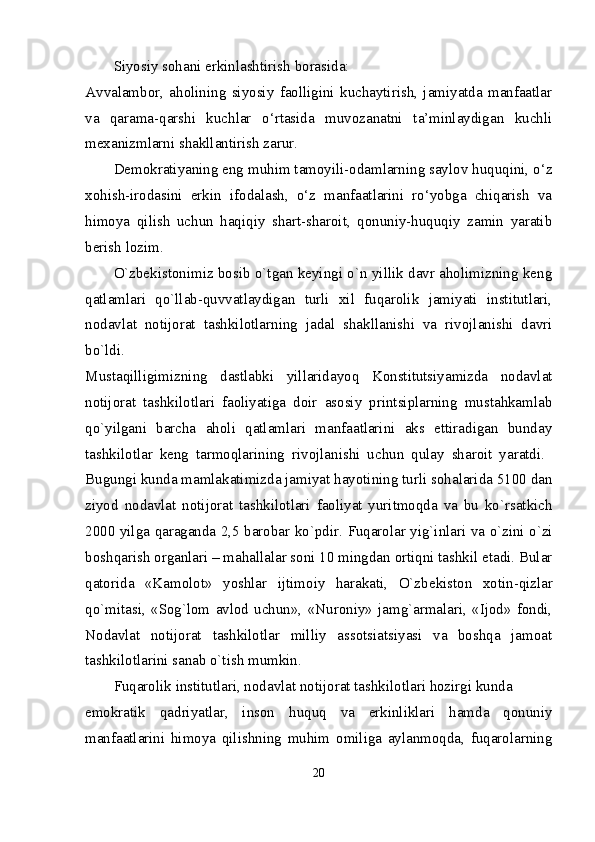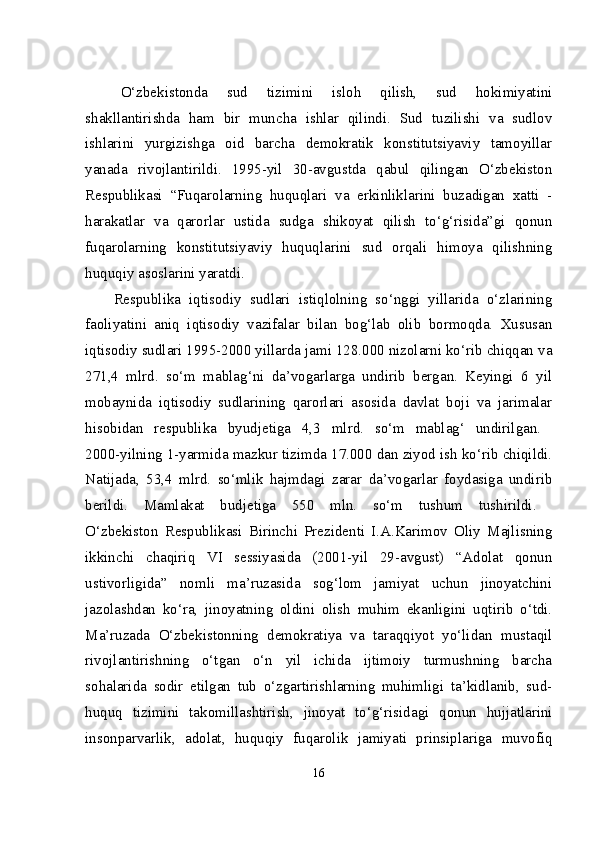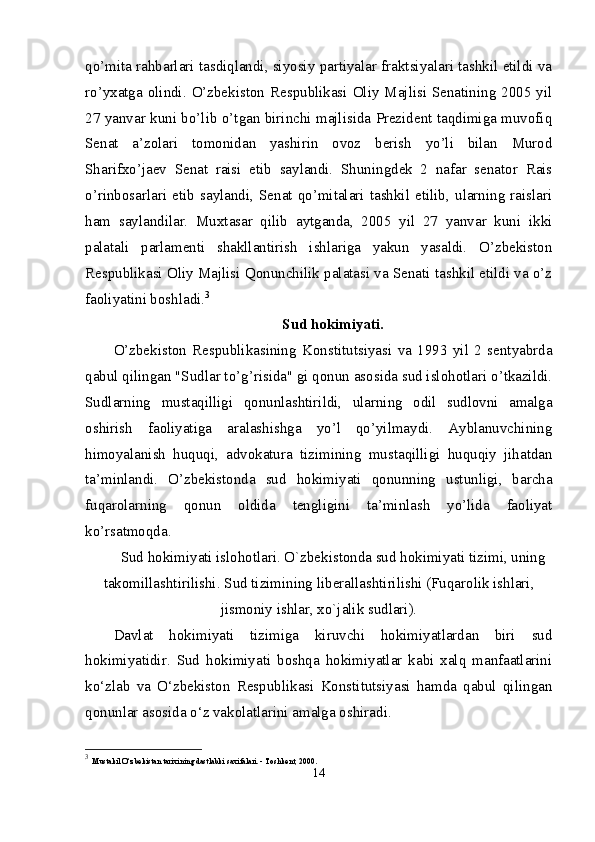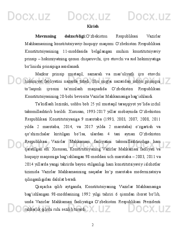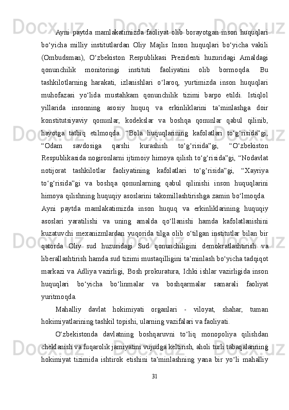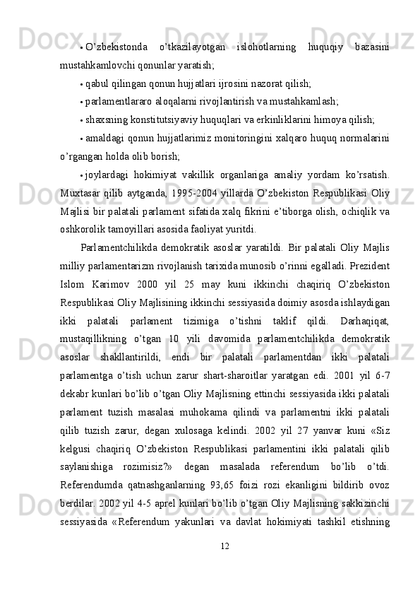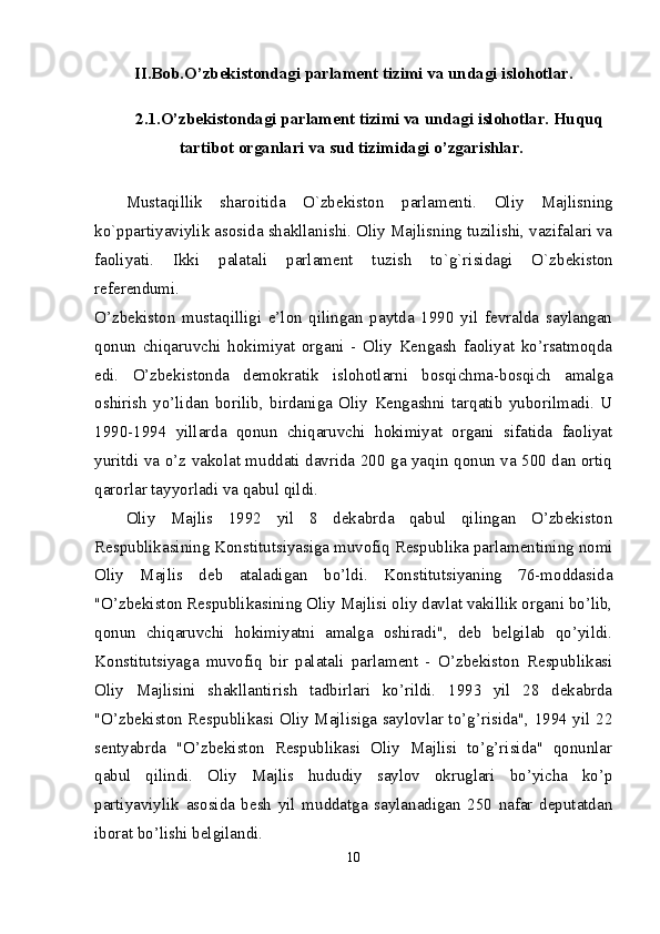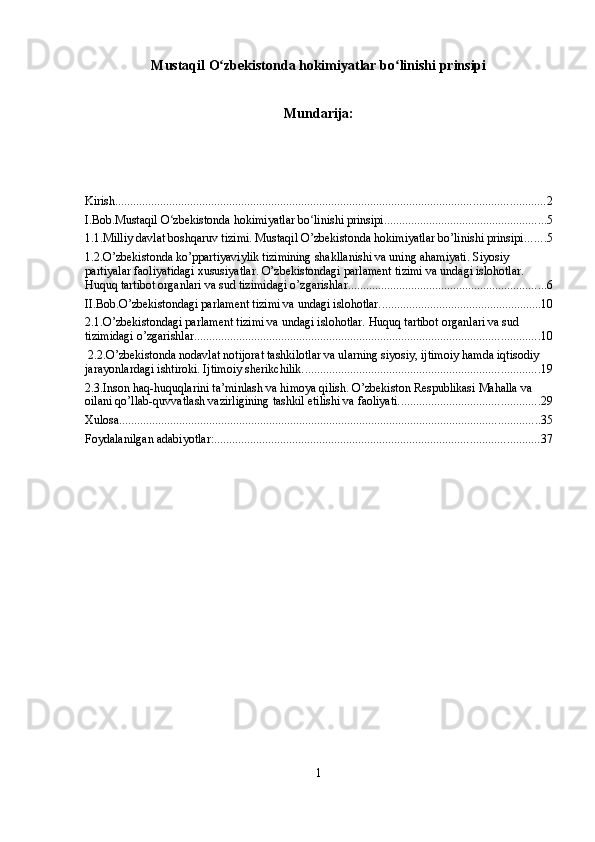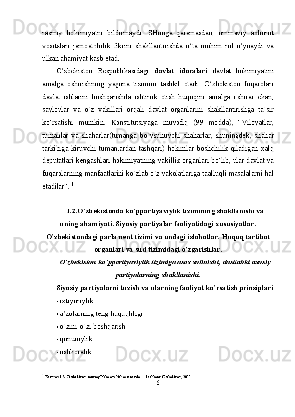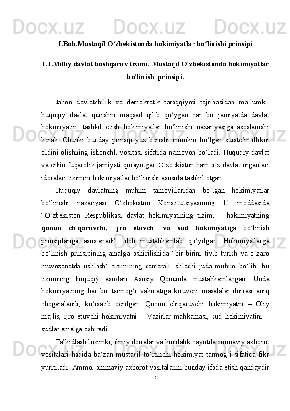 Mustaqil Oʻzbekistonda hokimiyatlar boʻlinishi prinsipi