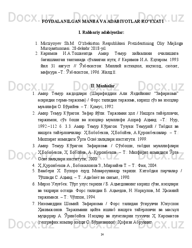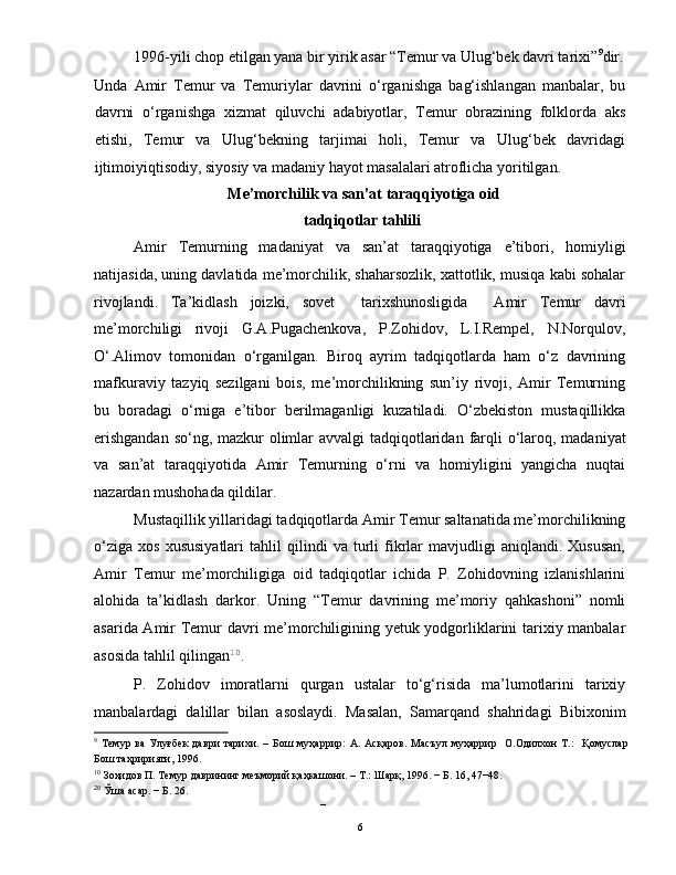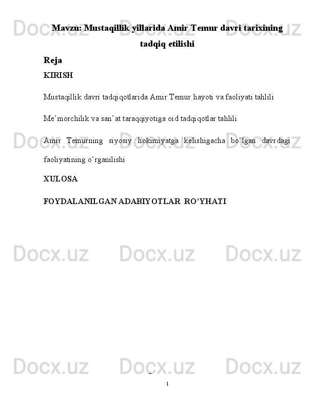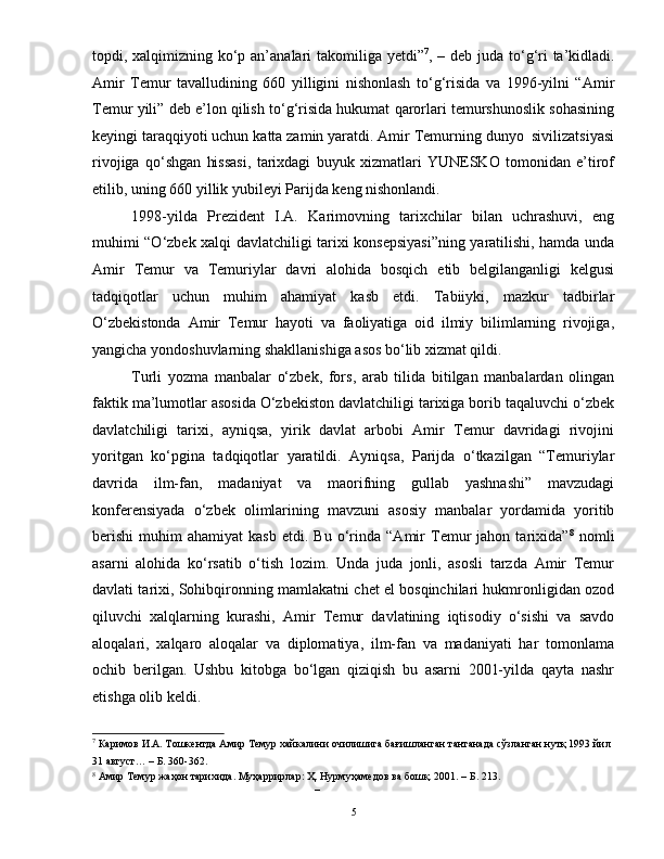 Mustaqillik yillarida Amir Temur davri tarixining tadqiq etilishi