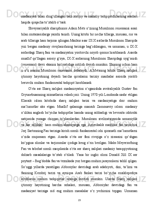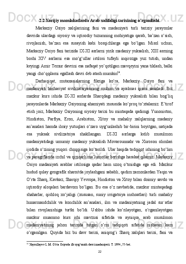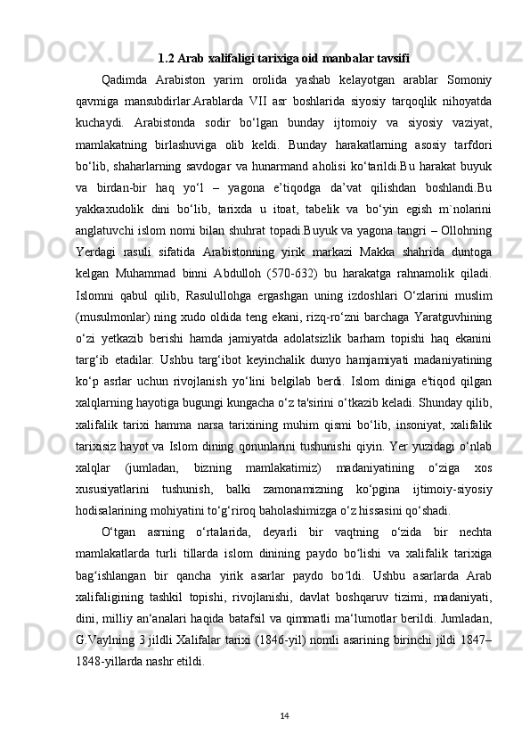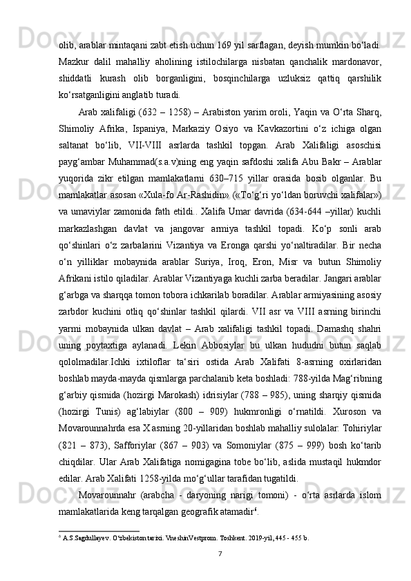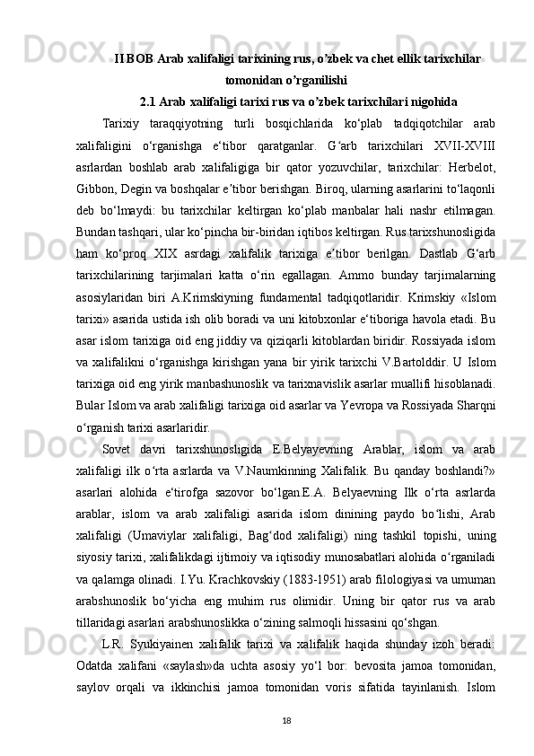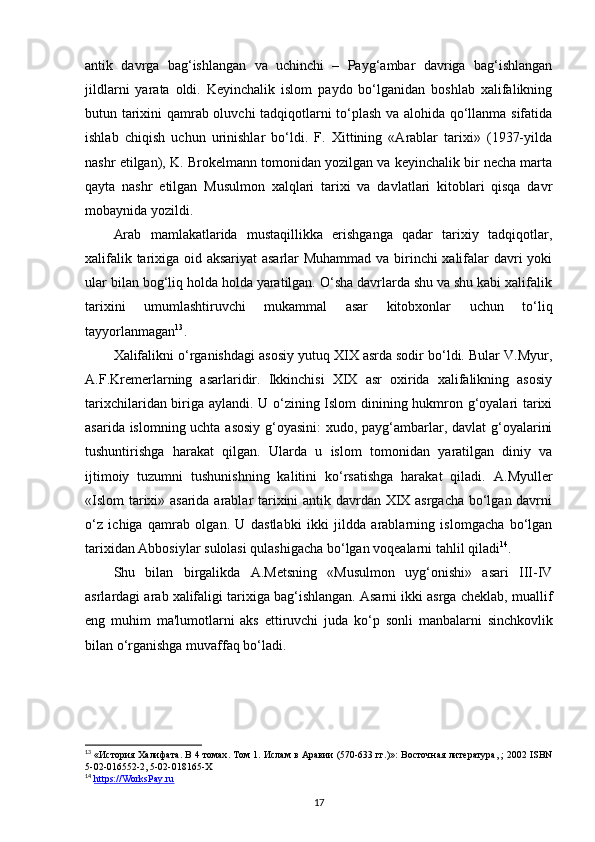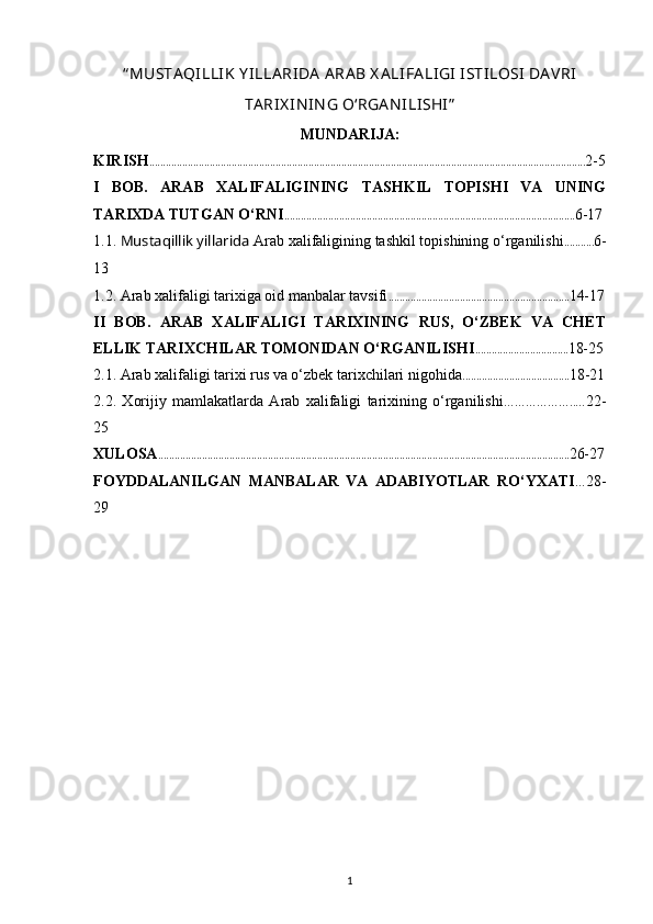 MUSTAQILLIK YILLARIDA ARAB XALIFALIGI ISTILOSI DAVRI TARIXINING O‘RGANILISHI