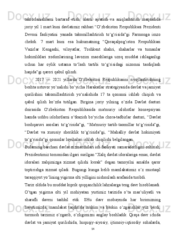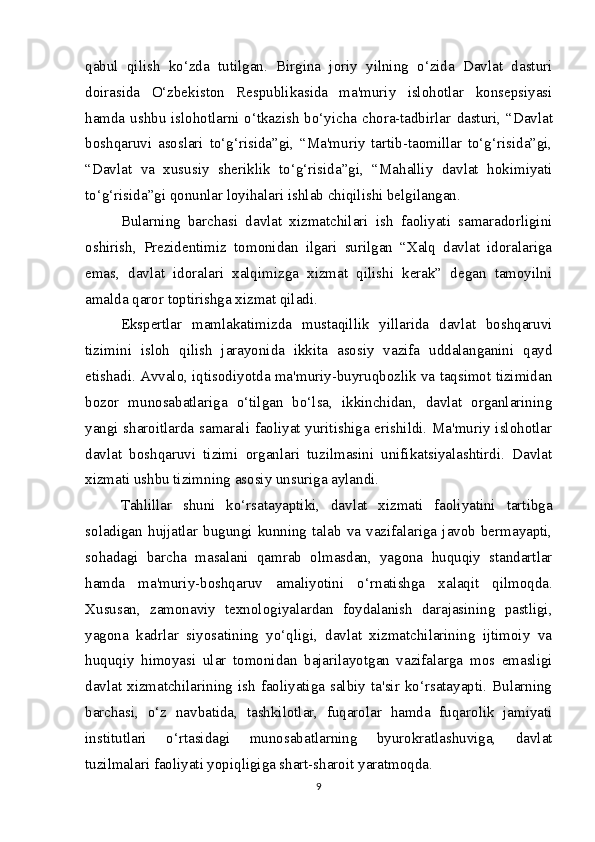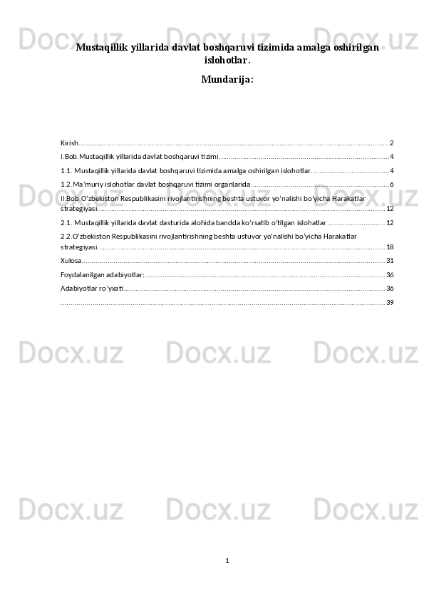 Mustaqillik yillarida davlat boshqaruvi tizimida amalga oshirilgan islohotlar