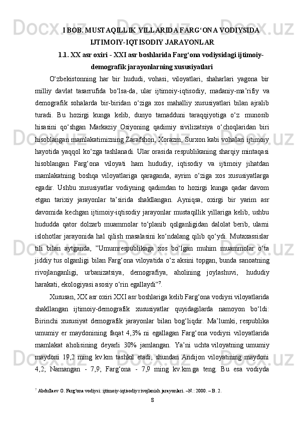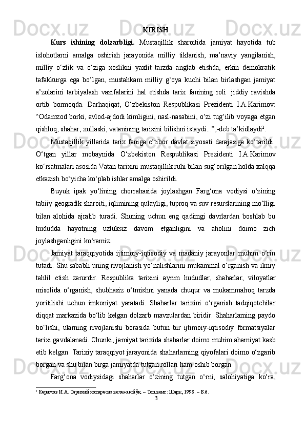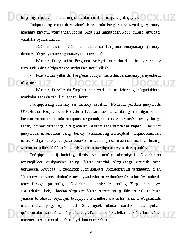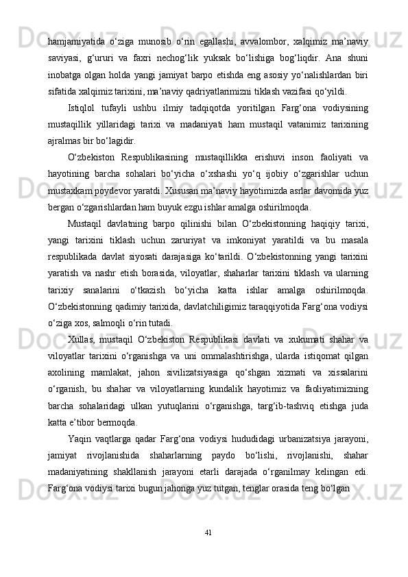 MUSTAQILLIK YILLARIDA FARG‘ONA VODIYSI TARIXINING O‘RGANILISHI