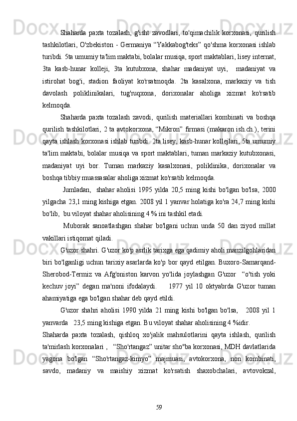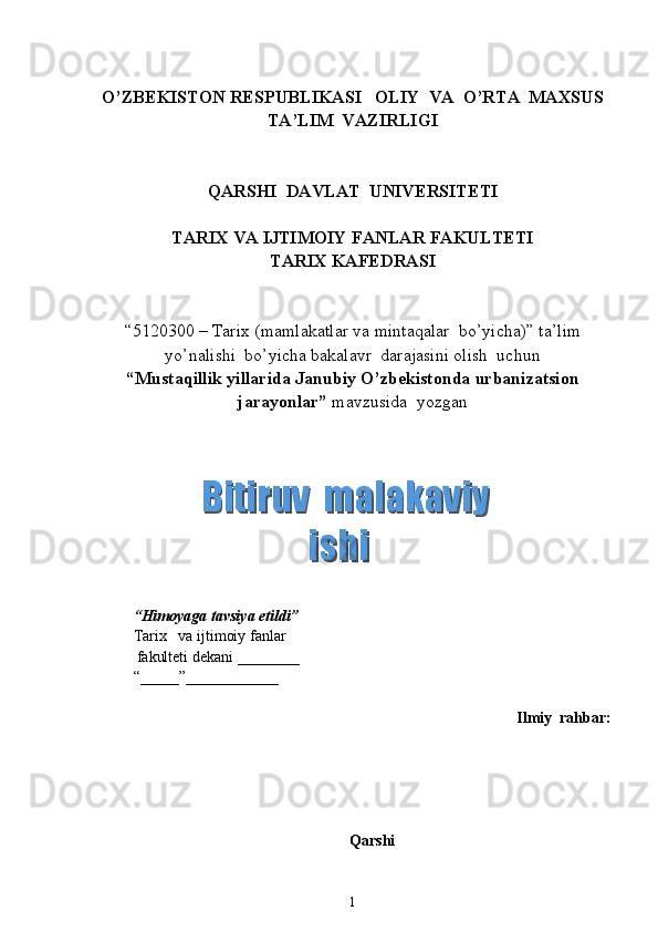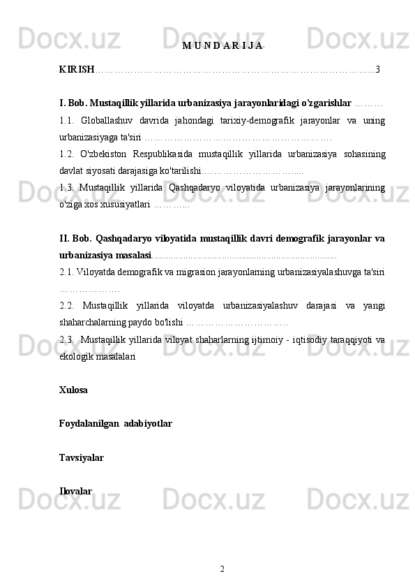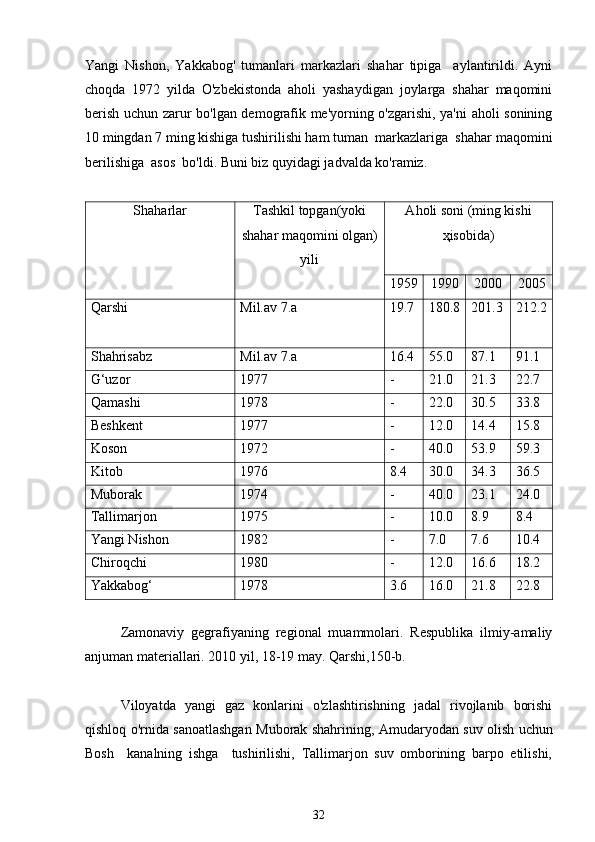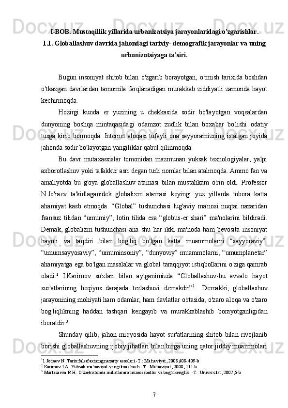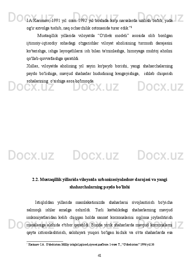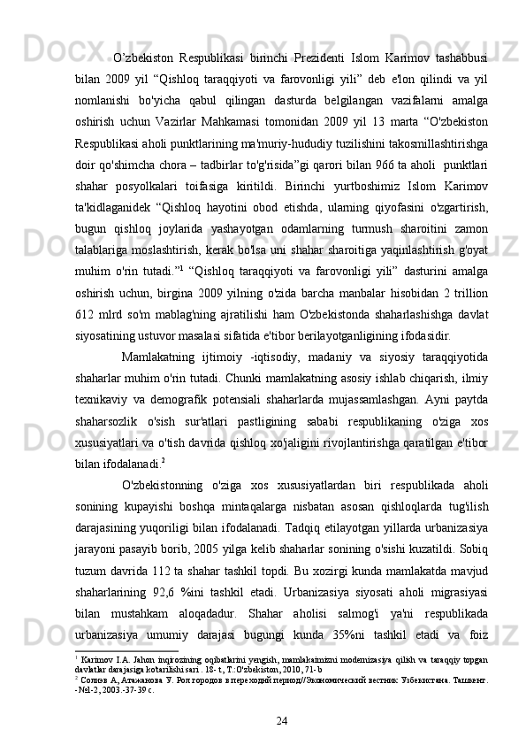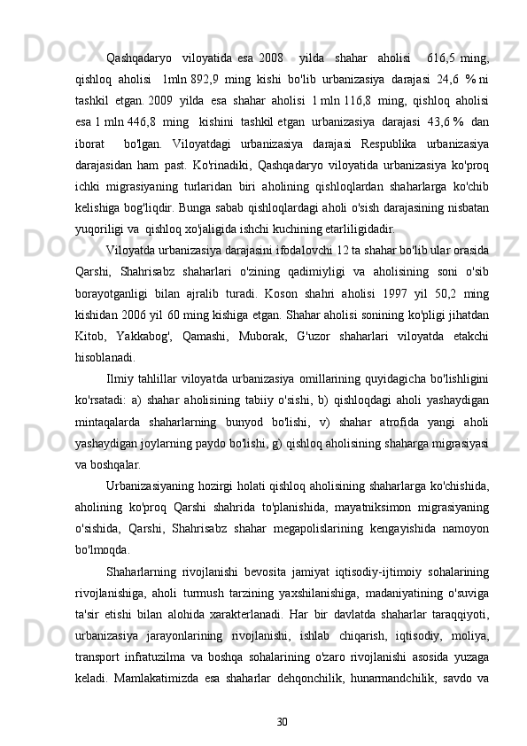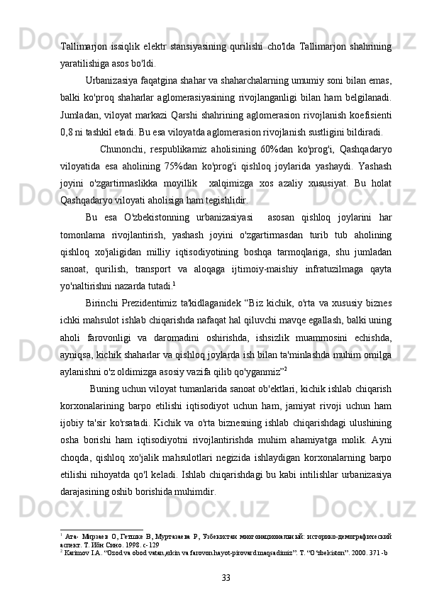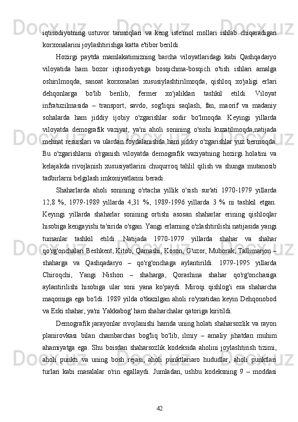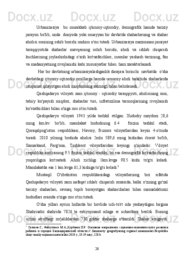 Mustaqillik yillarida Janubiy O’zbekistonda urbanizatsion jarayonlar