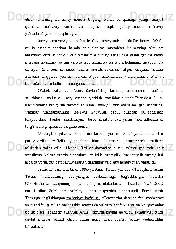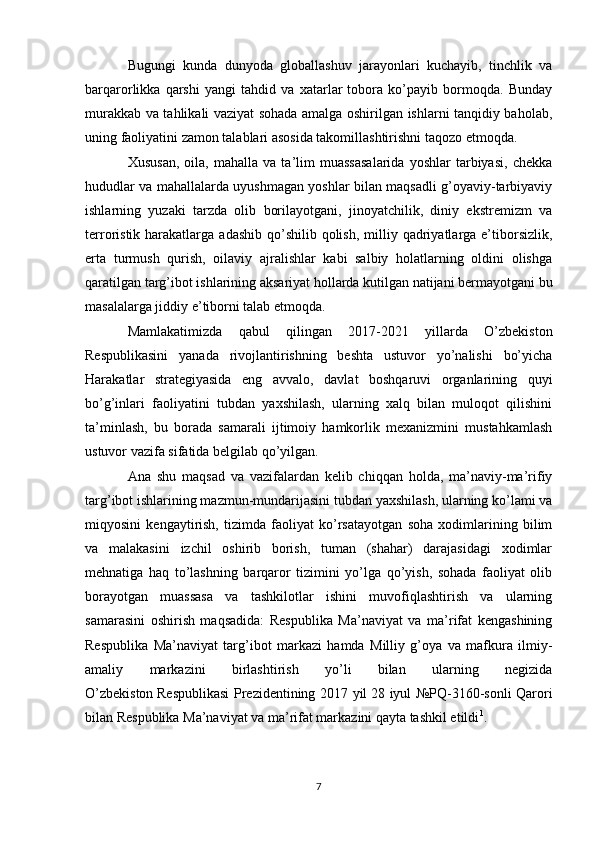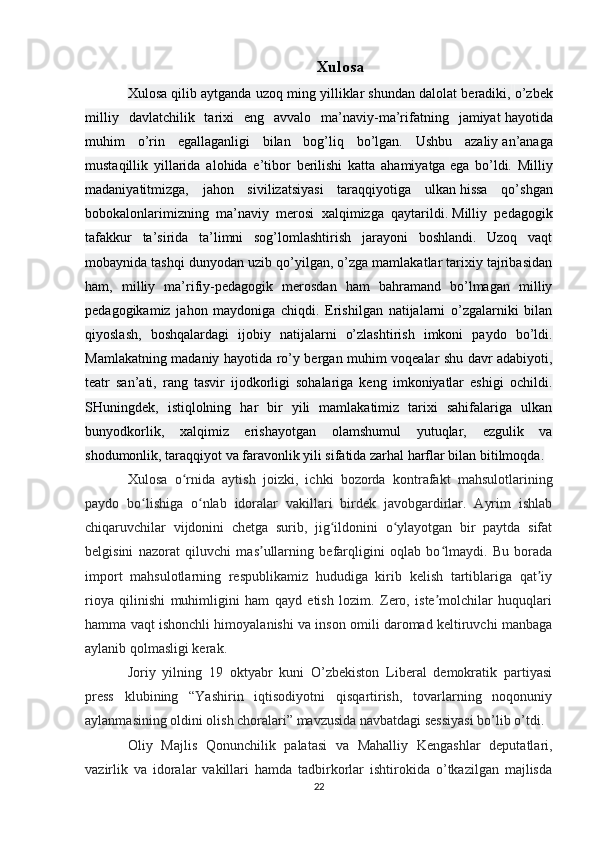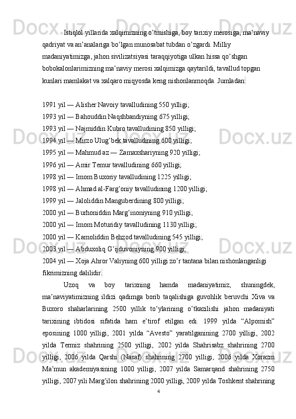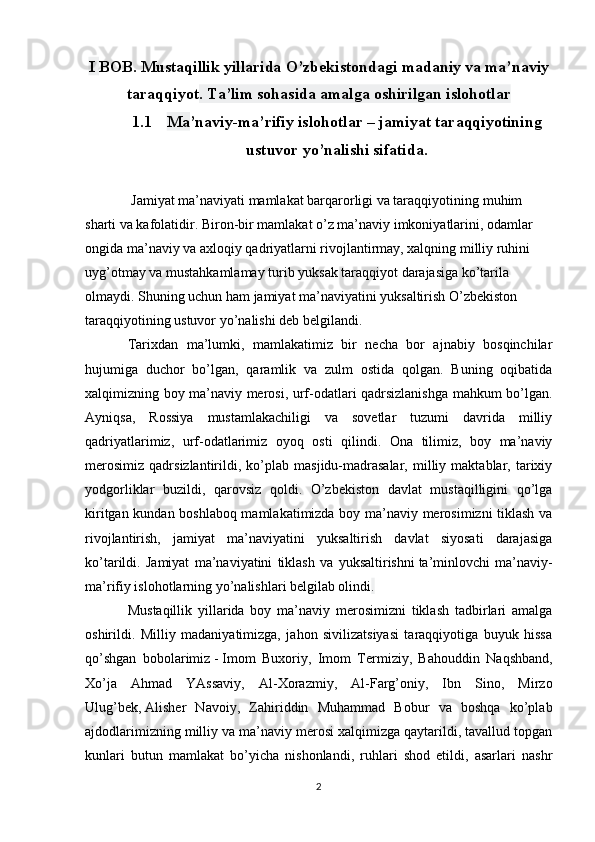 Mustaqillik yillarida O’zbekistondagi madaniy va ma’naviy taraqqiyot. Ta’lim sohasida amalga oshirilgan islohotlar
