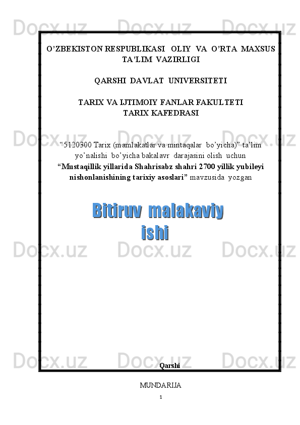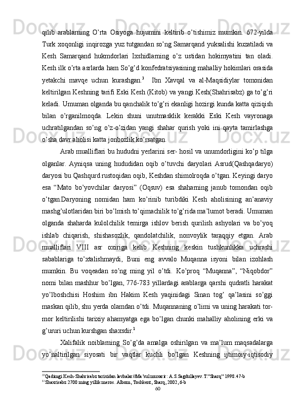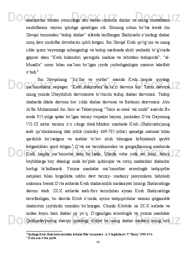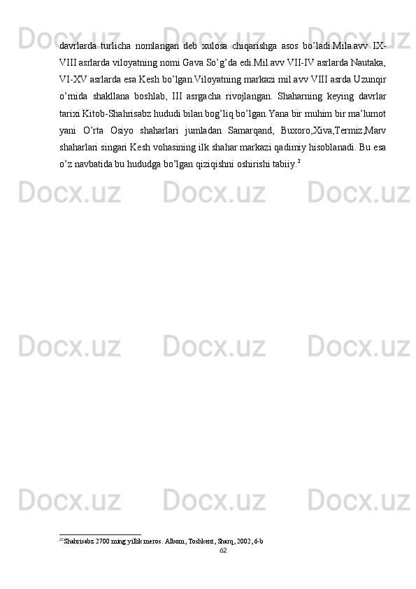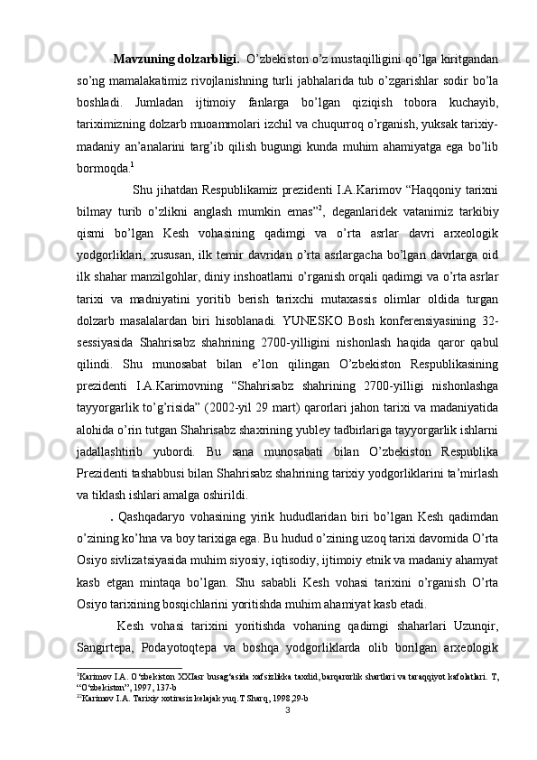 Mustaqillik yillarida Shahrisabz shahri 2700 yillik yubileyi nishonlanishining tarixiy asoslari