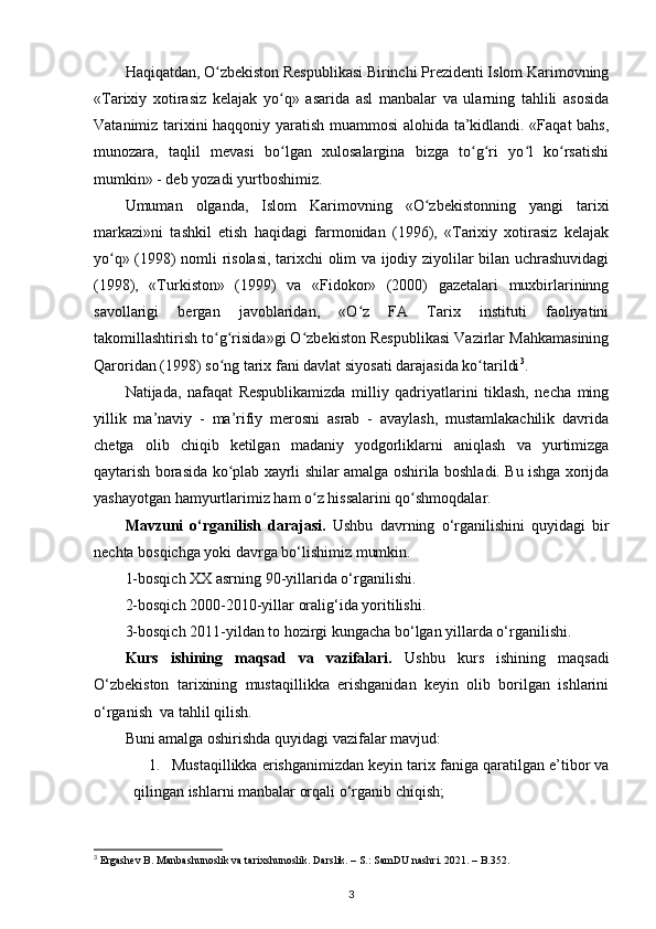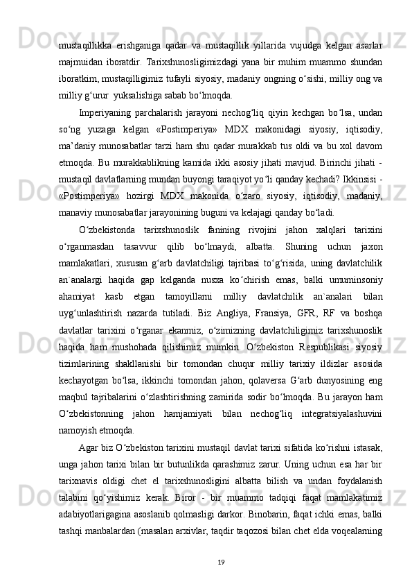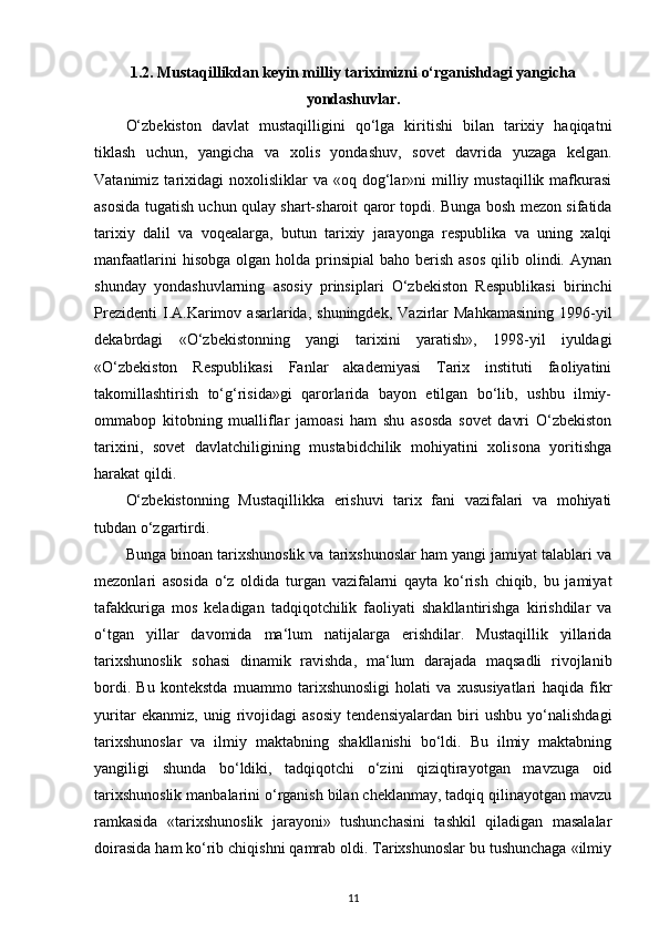 MUSTАQILLIK YILLАRIDА TАRIХGА QIZIQISHNING ОRTISHI, TАRIХ FАNIDАGI YANGI YO‘NАLISHLАR VА QАRАSHLАR