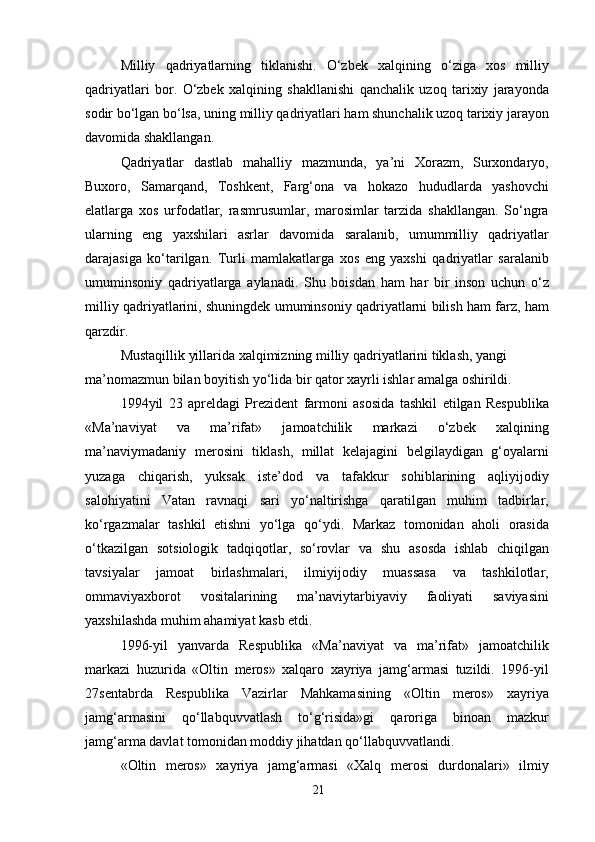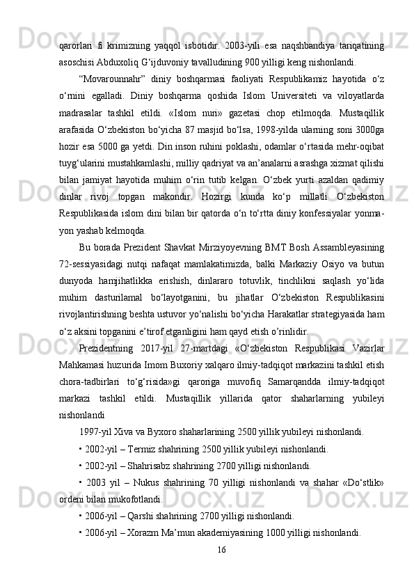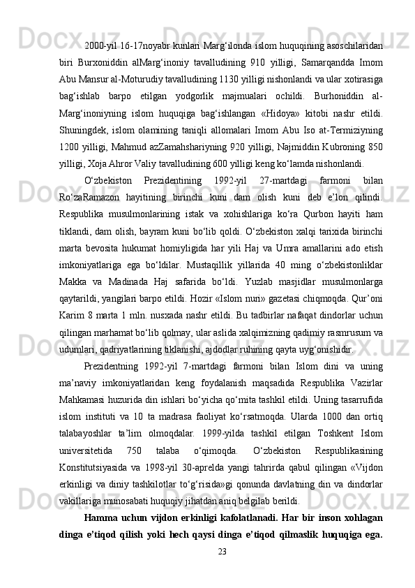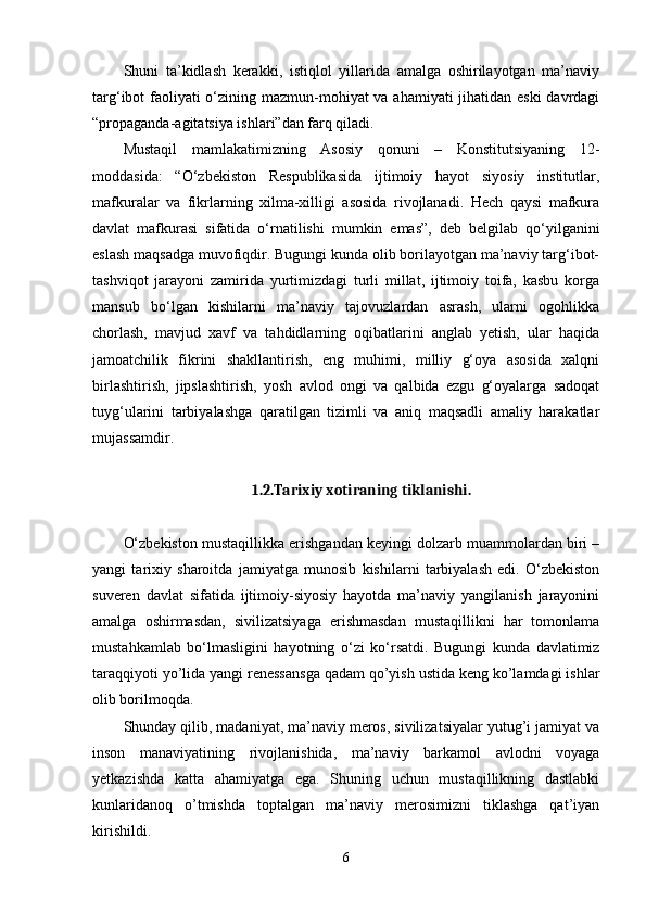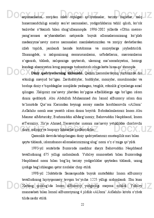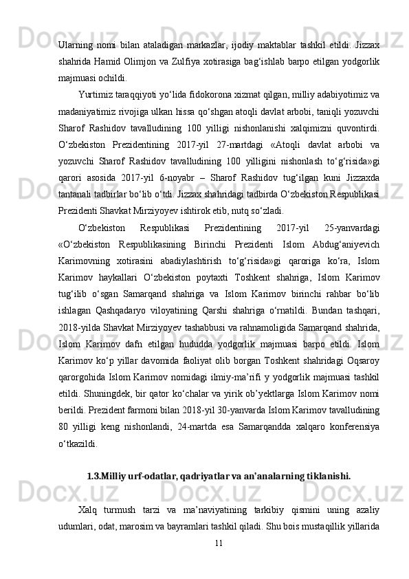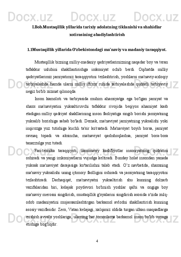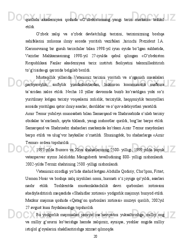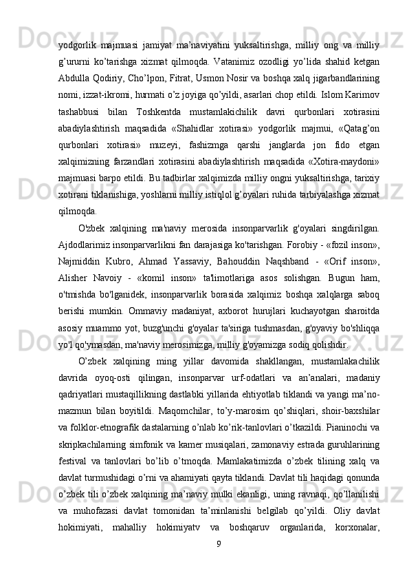 Mustaqillik yillarida tarixiy adolatning tiklanishi va shahidlar xotirasining abadiylashtirish