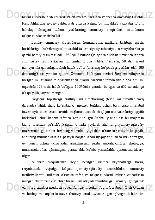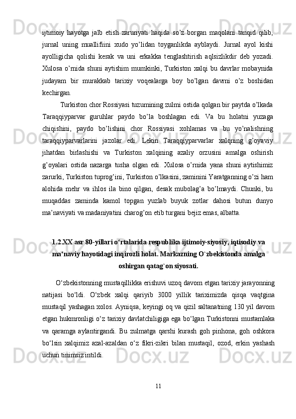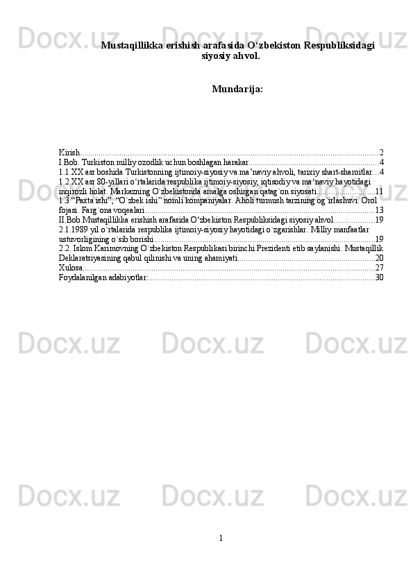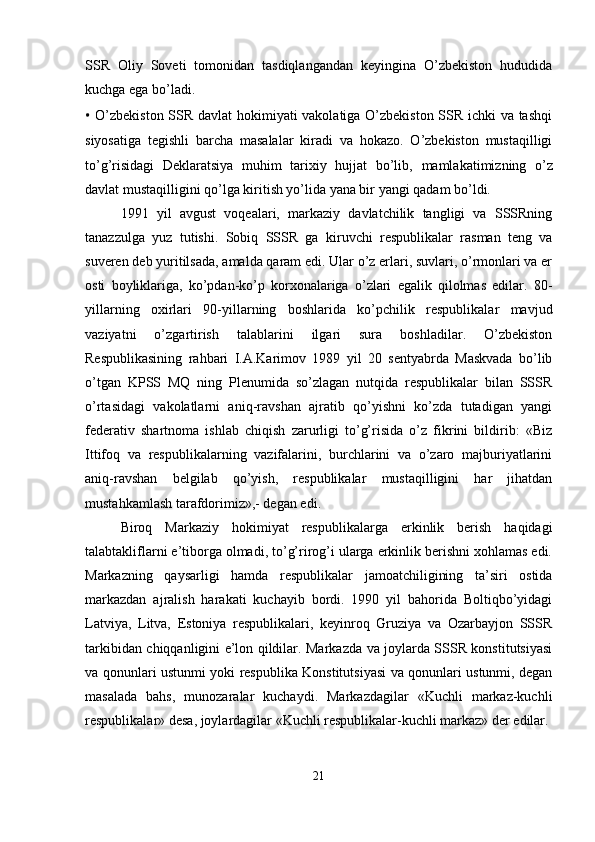 Mustaqillikka erishish arafasida O‘zbekiston Respubliksidagi siyosiy ahvol