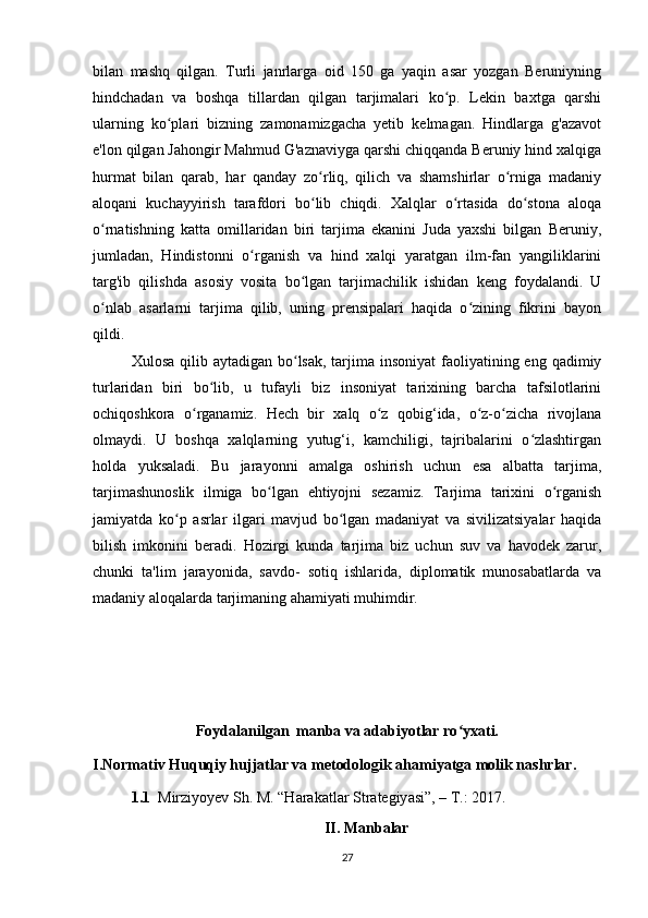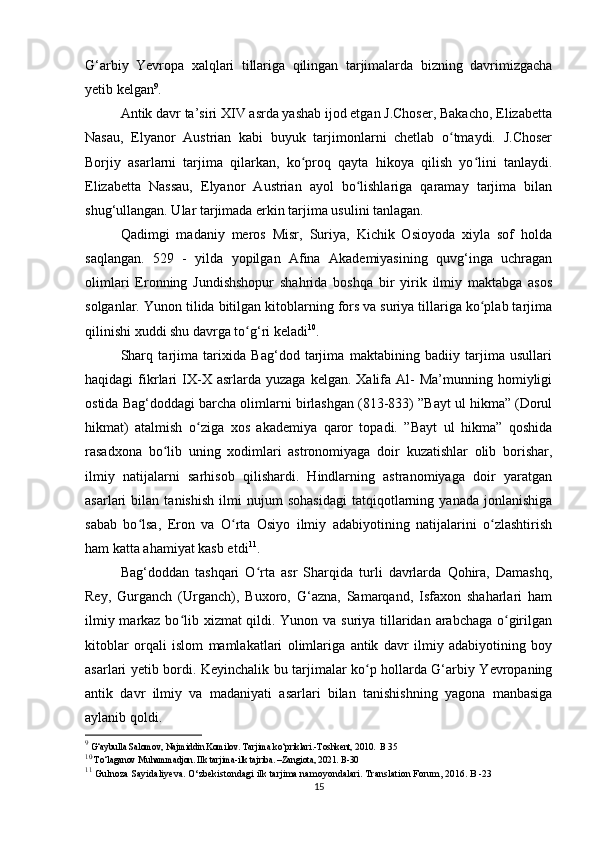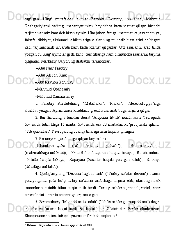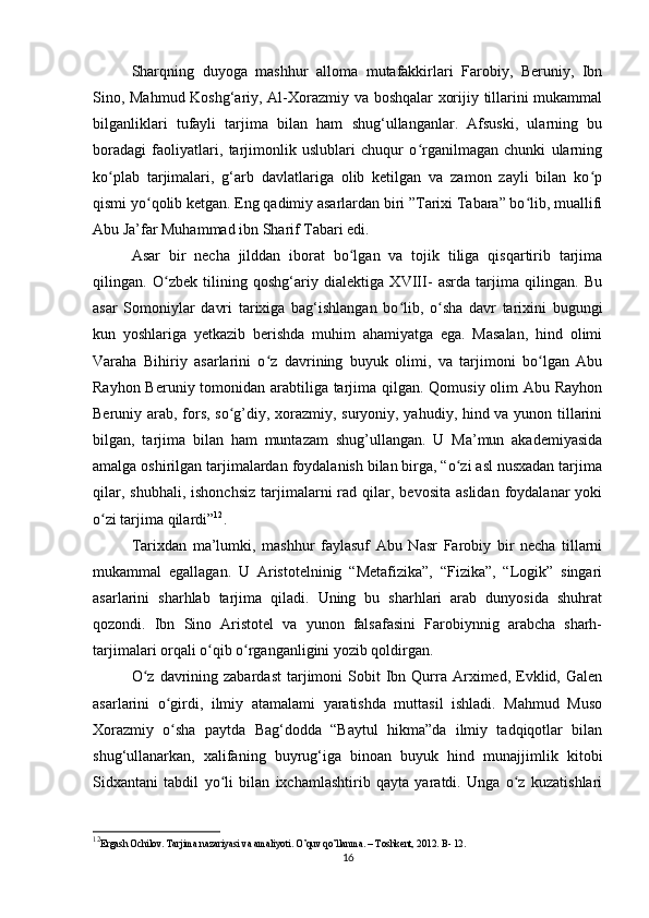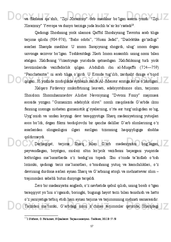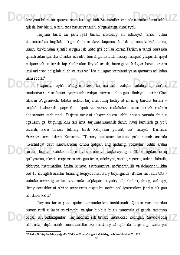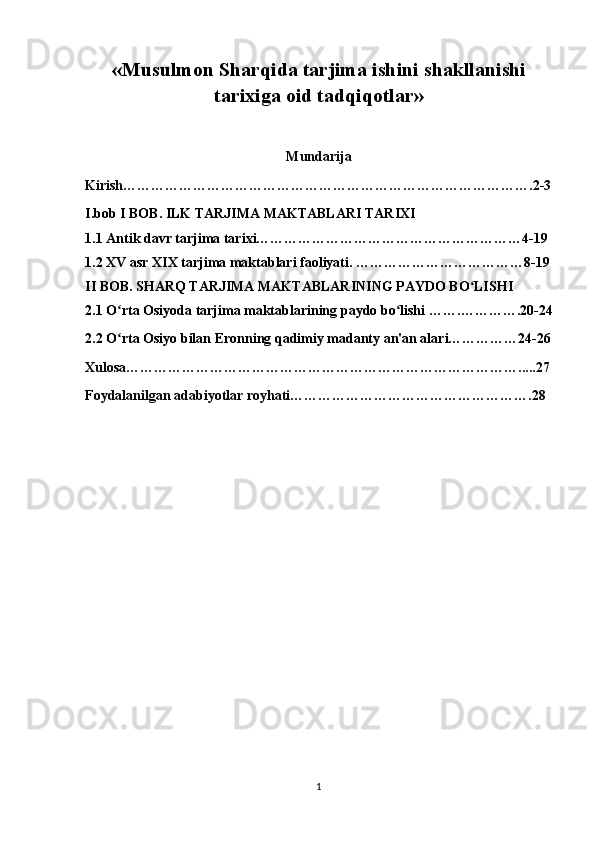 «Musulmon Sharqida tarjima ishini shakllanishiga tarixiga oid tadqiqotlar»