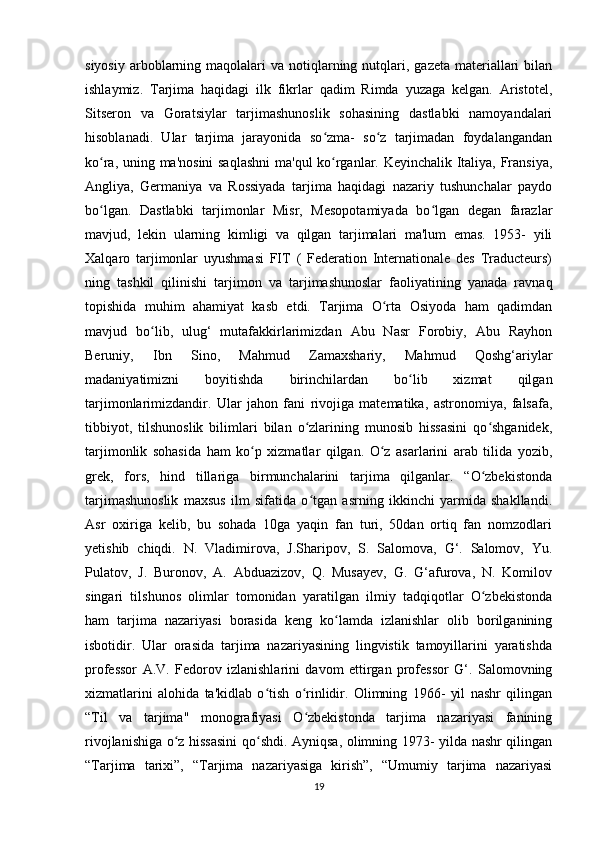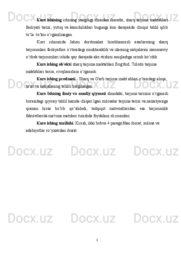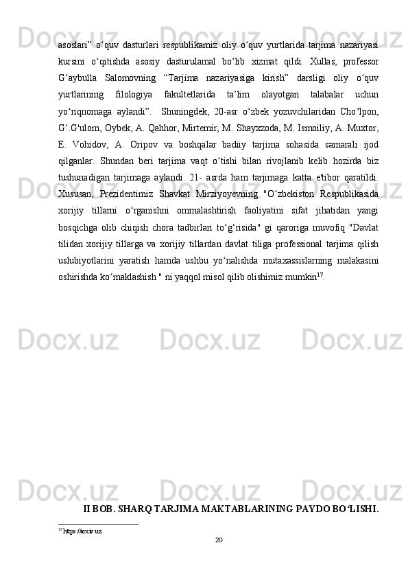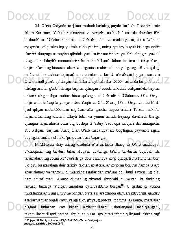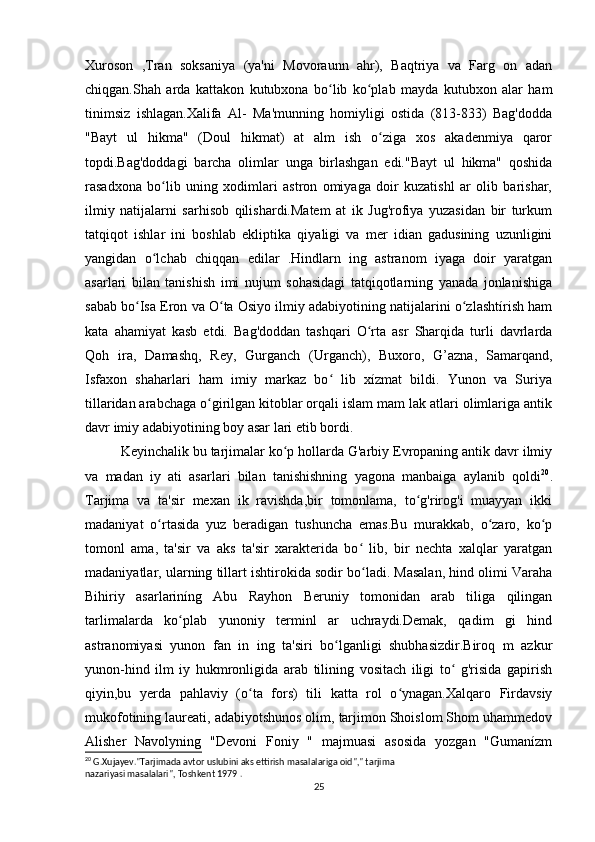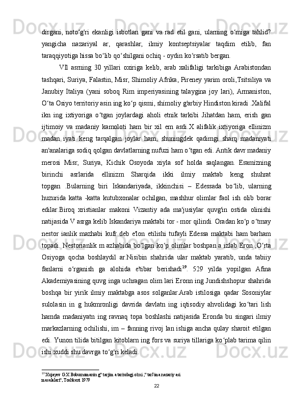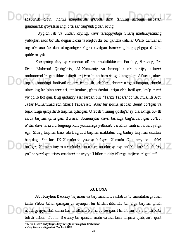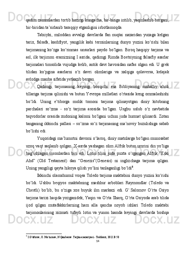 «Musulmon Sharqida tarjima ishini shakllanishiga tarixiga oid tadqiqotlar»