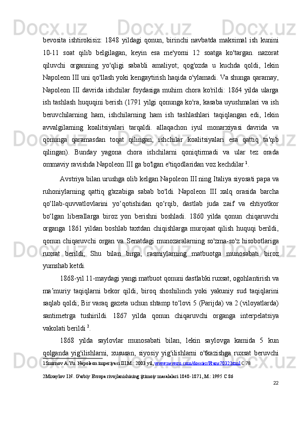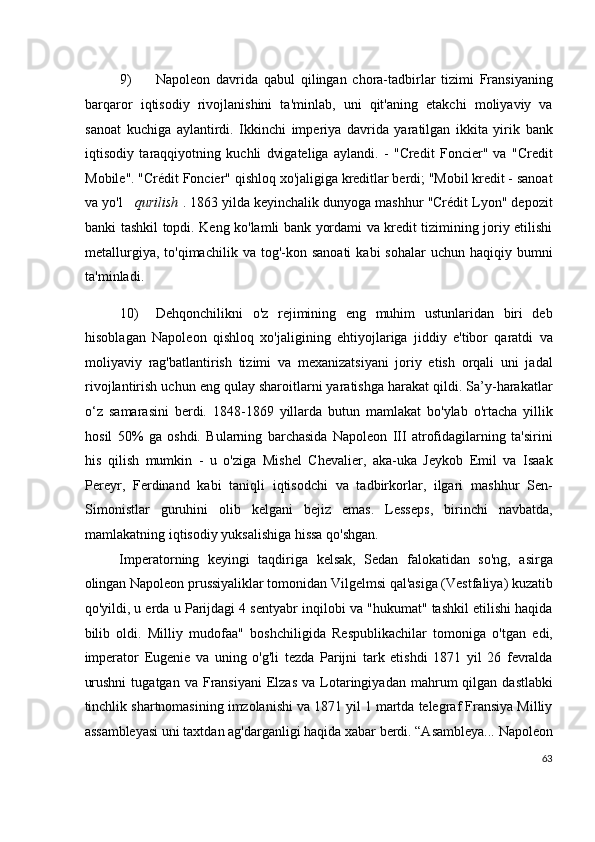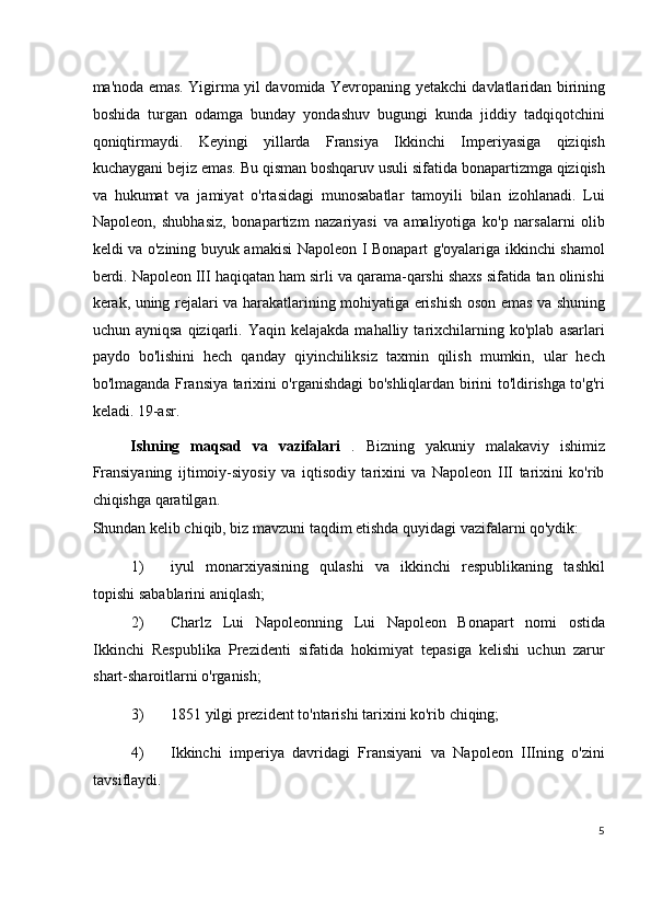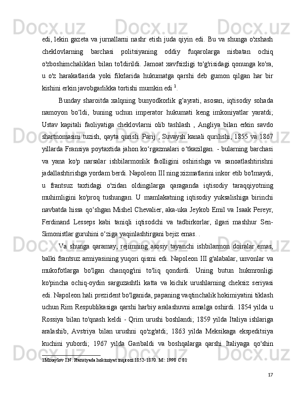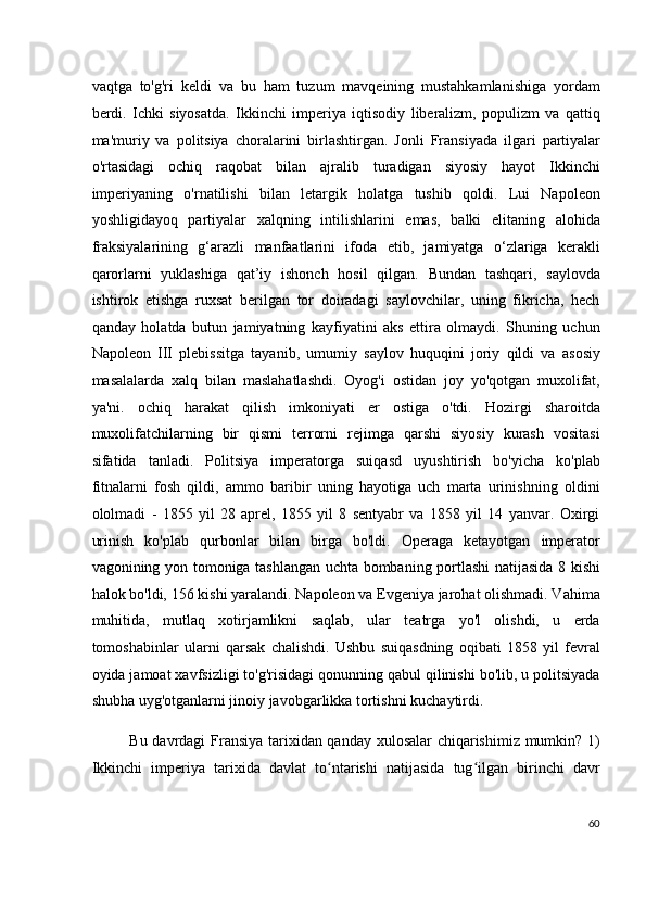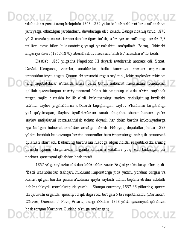 NAPOLEON III HUKMRONLIGI DAVRIDA FRANSIYA