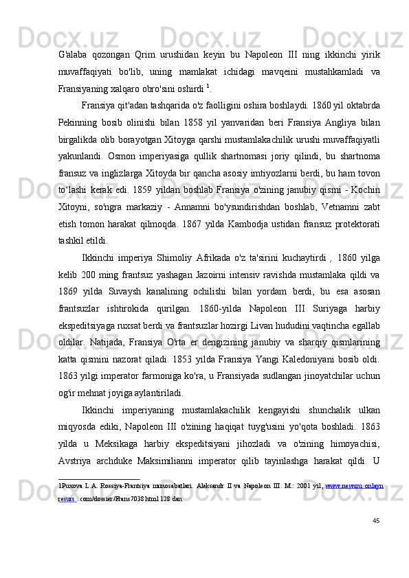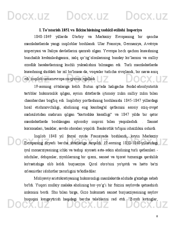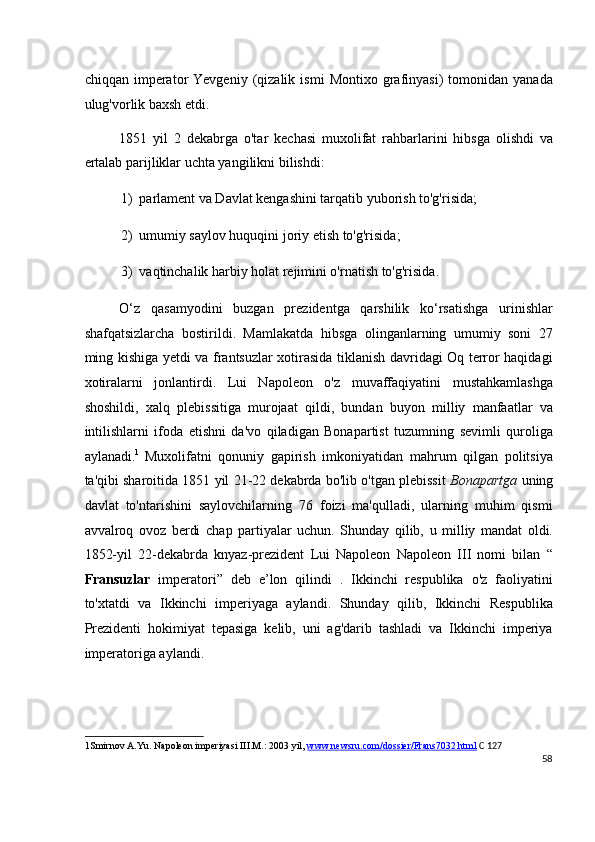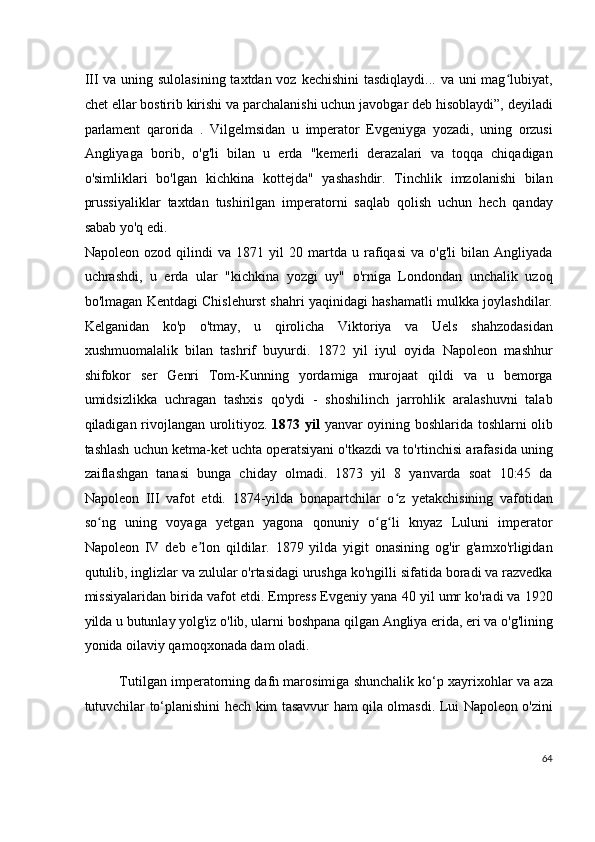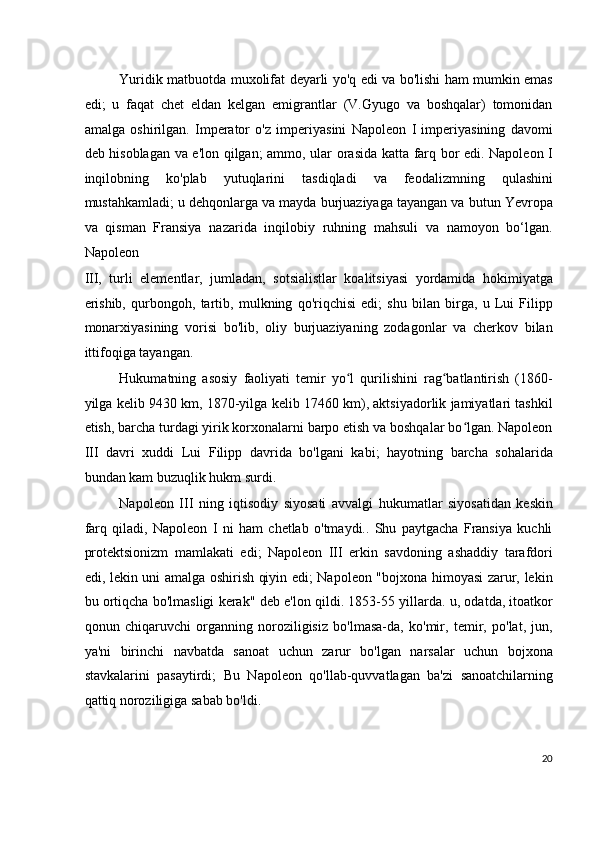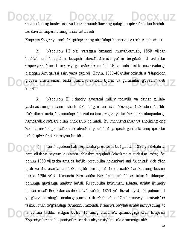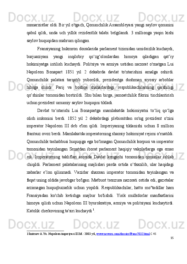 NAPOLEON III HUKMRONLIGI DAVRIDA FRANSIYA