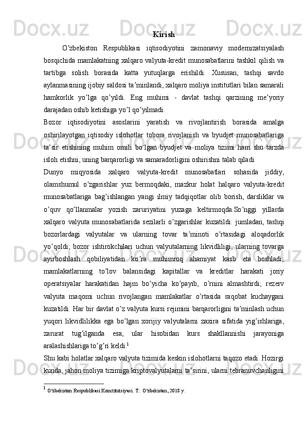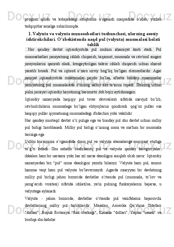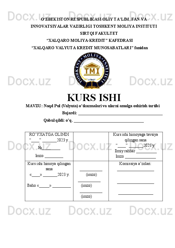 Naqd Pul (Valyuta) o’tkazmalari va ularni amalga oshirish tartibi