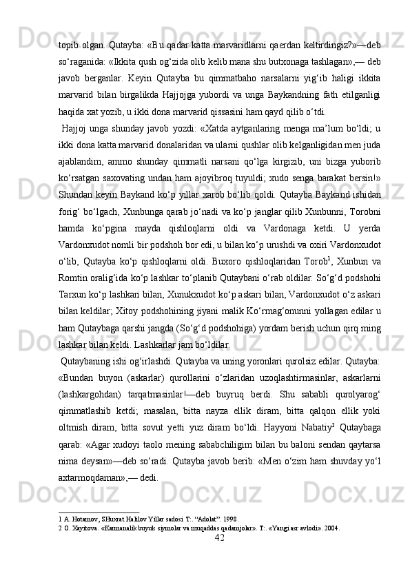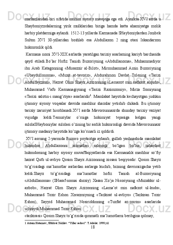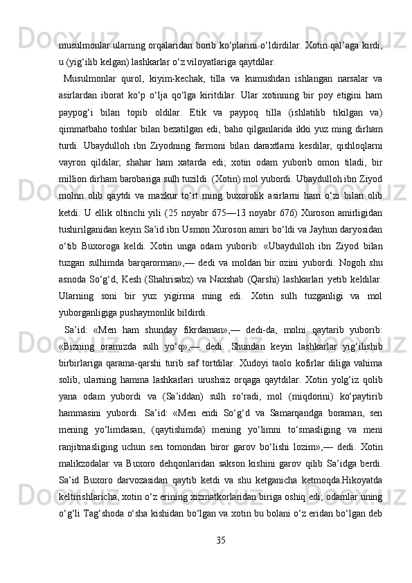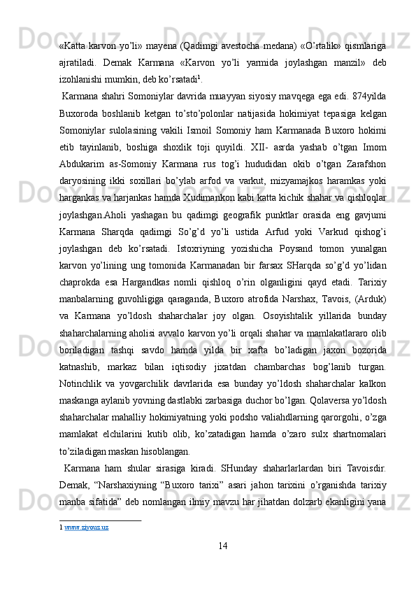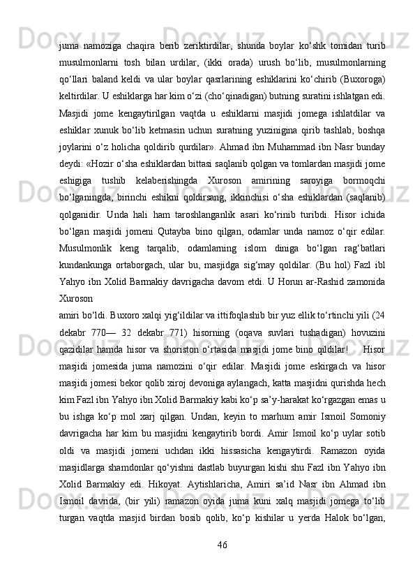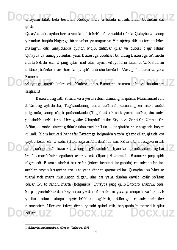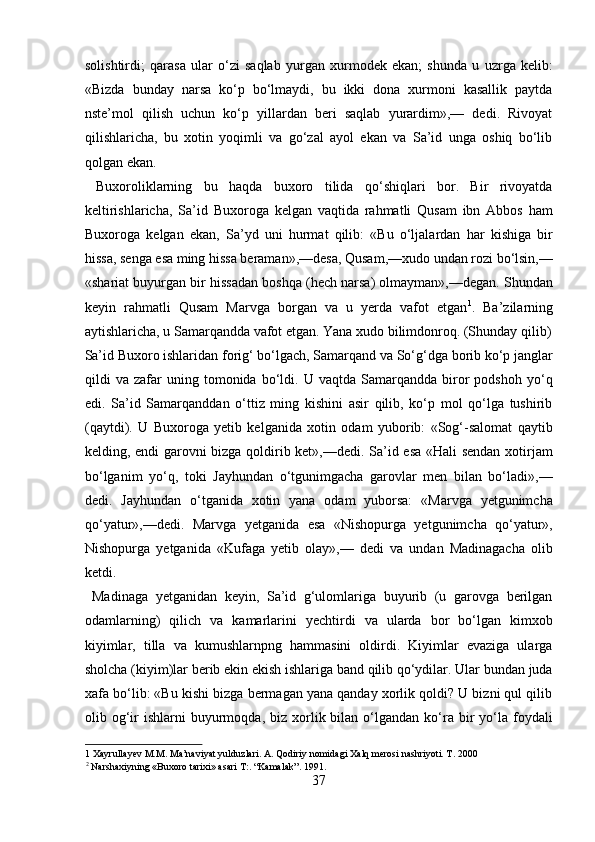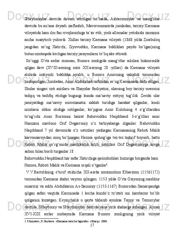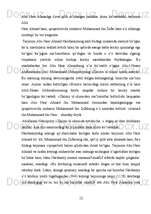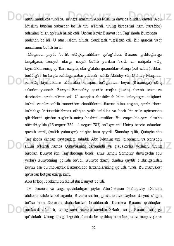Narshaxiyning “Buxoro tarixi” asari tarixiy manba sifatida