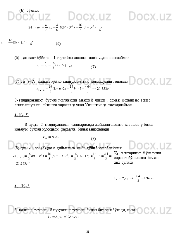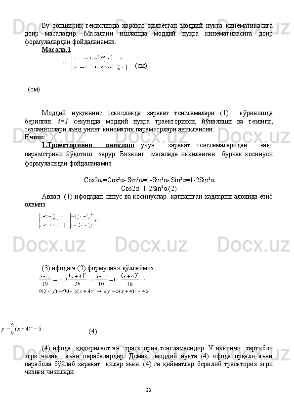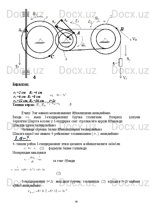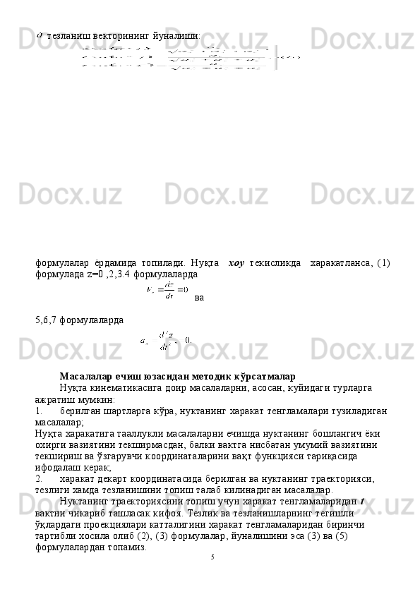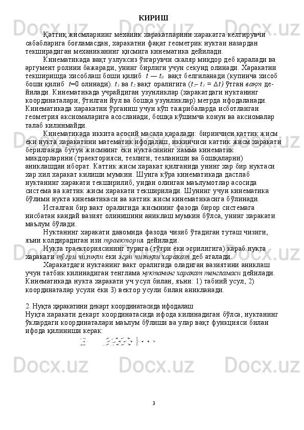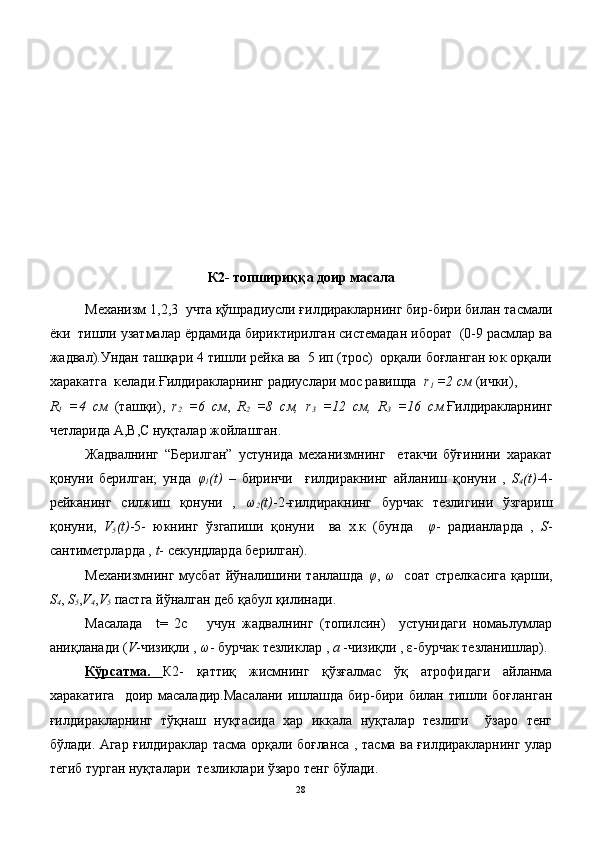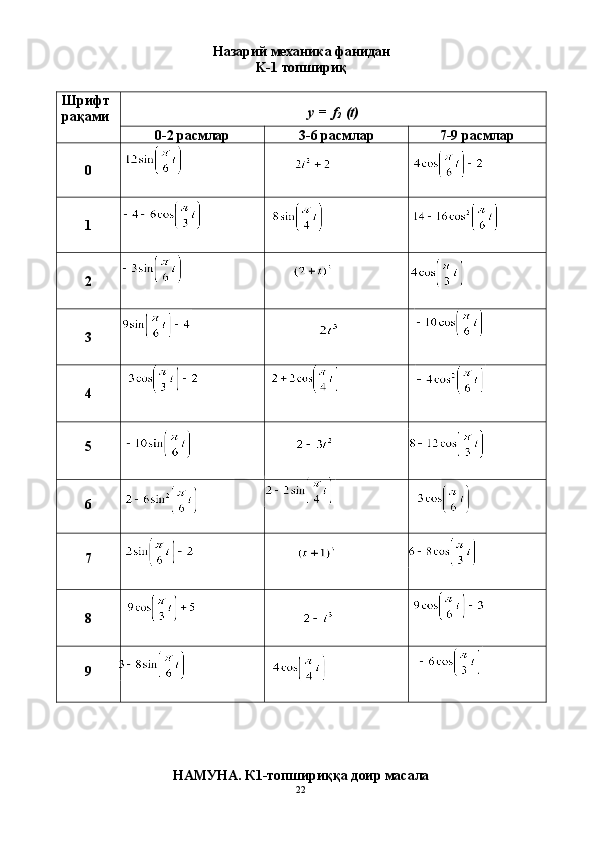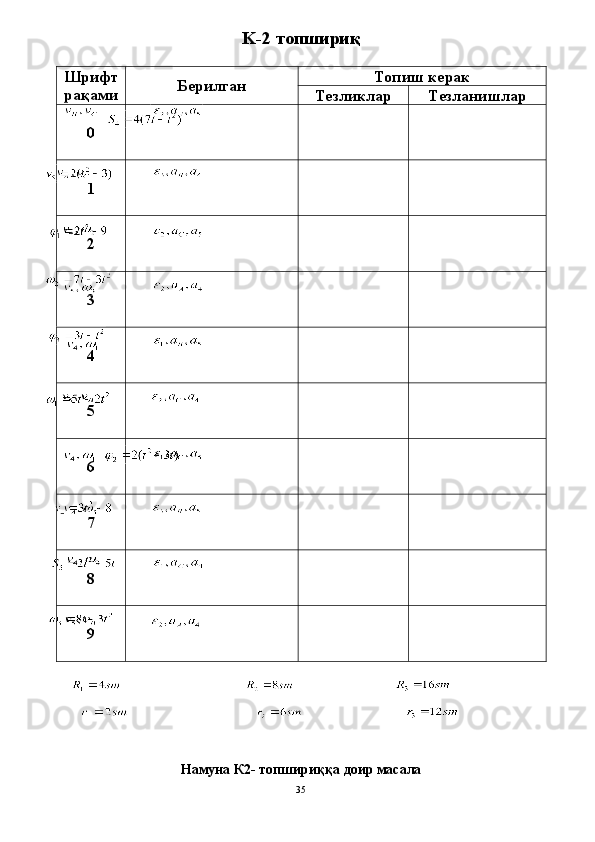 “Назарий механика” фанининг кинематика бўлимидан хисоб-лойиха ишларини бажариш учун