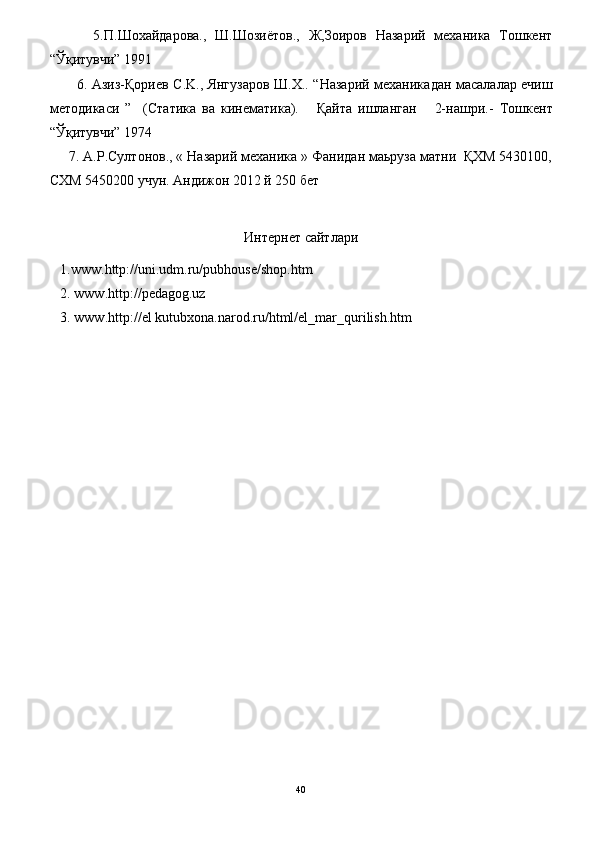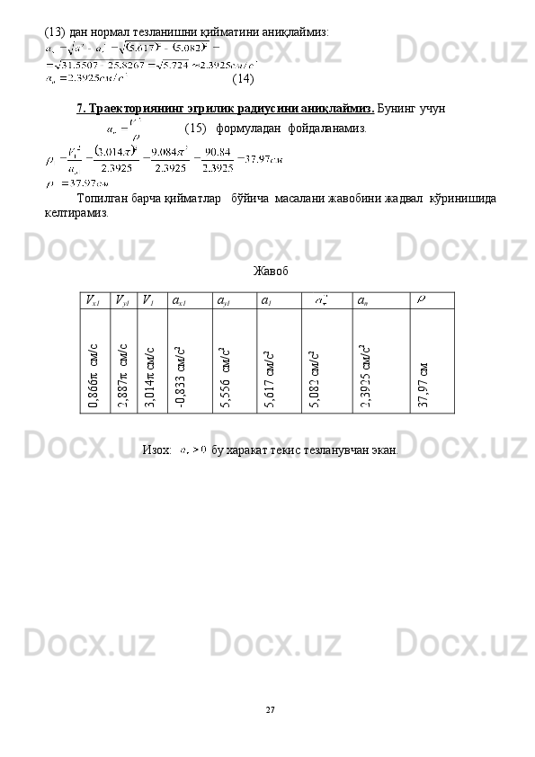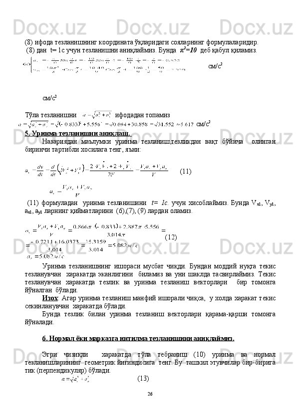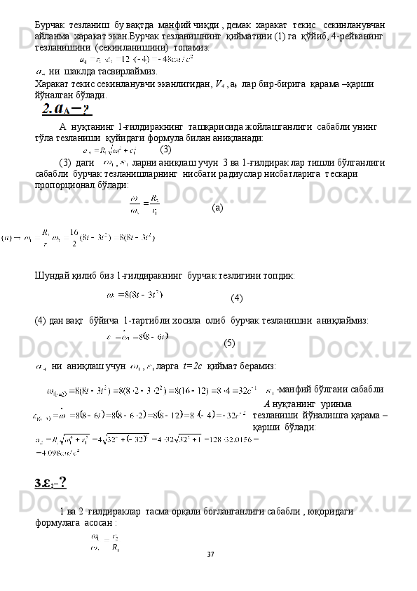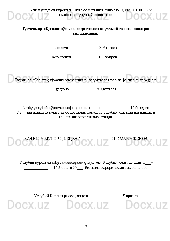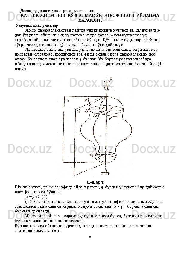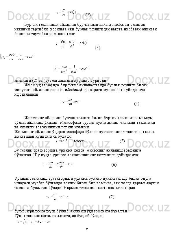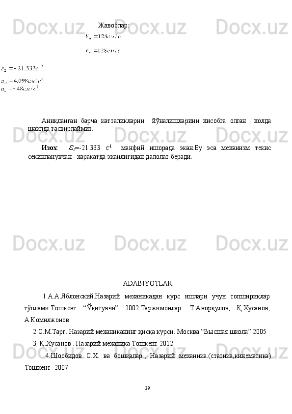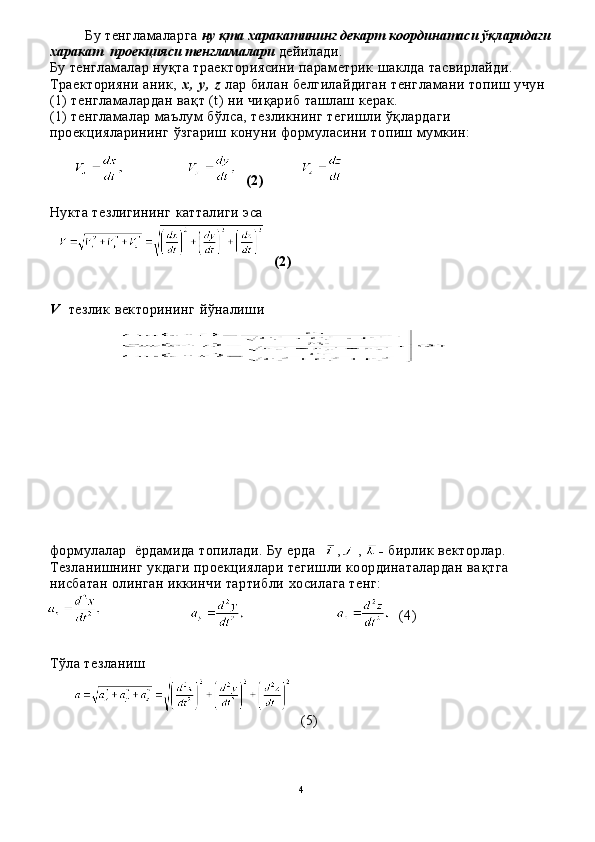 “Назарий механика” фанининг кинематика бўлимидан хисоб-лойиха ишларини бажариш учун