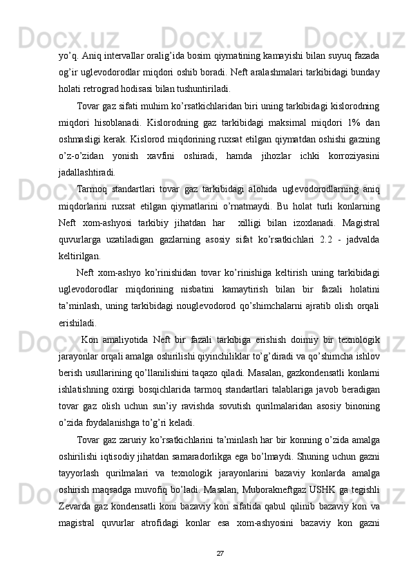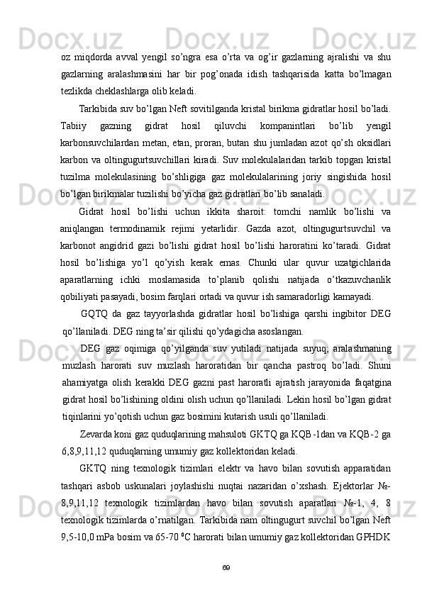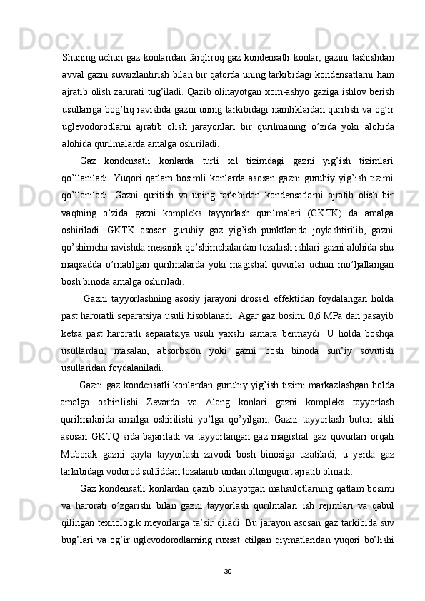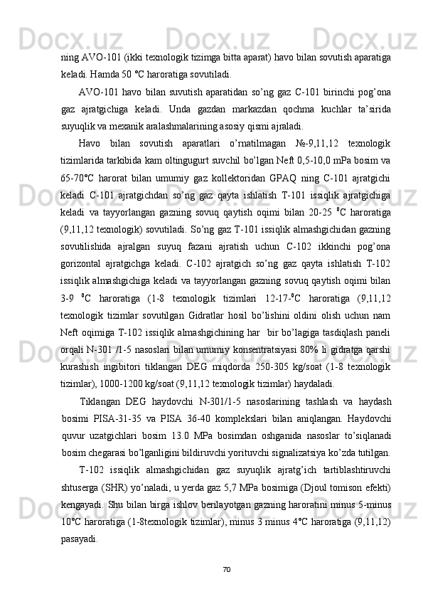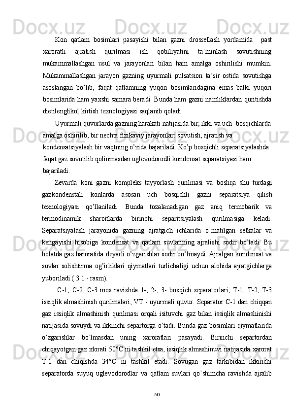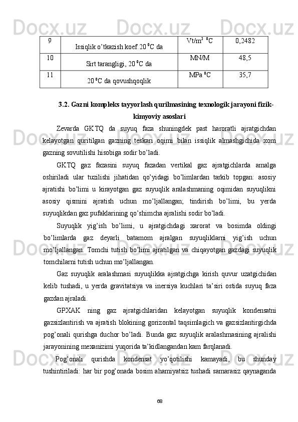 Neft tarkibidagi gazkondensatni suvsizlantirish va tuzsizlantirish jarayonidagi termodinamik kattaliklarni optimallash
