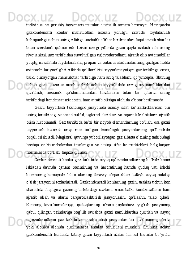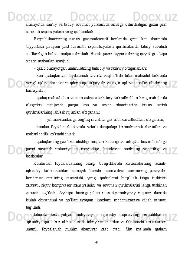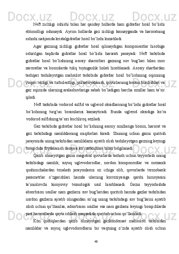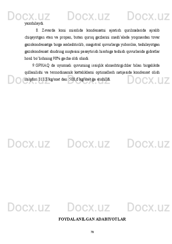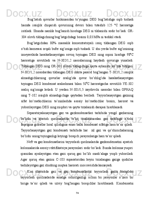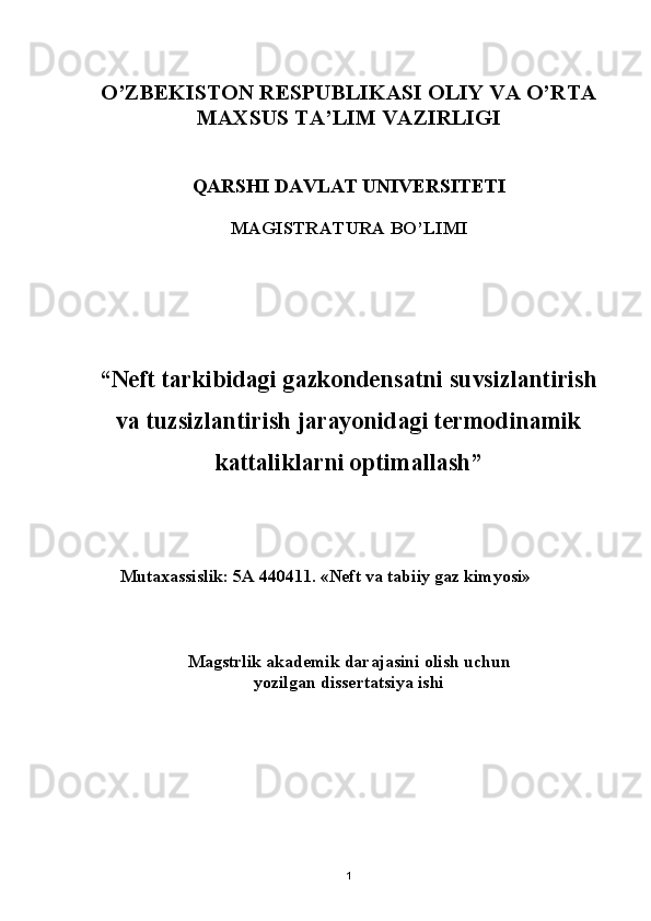 Neft tarkibidagi gazkondensatni suvsizlantirish va tuzsizlantirish jarayonidagi termodinamik kattaliklarni optimallash