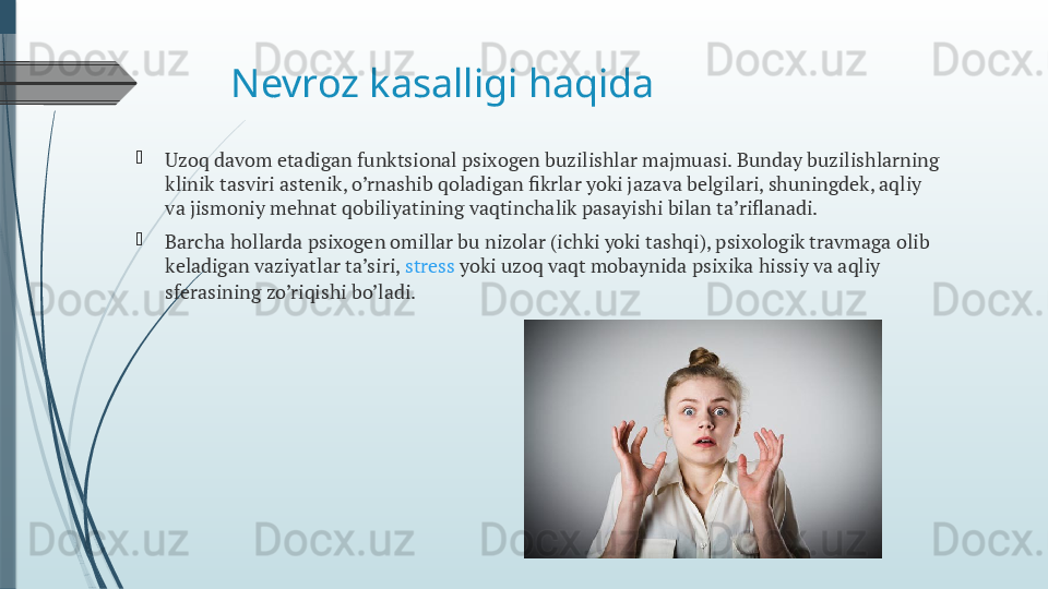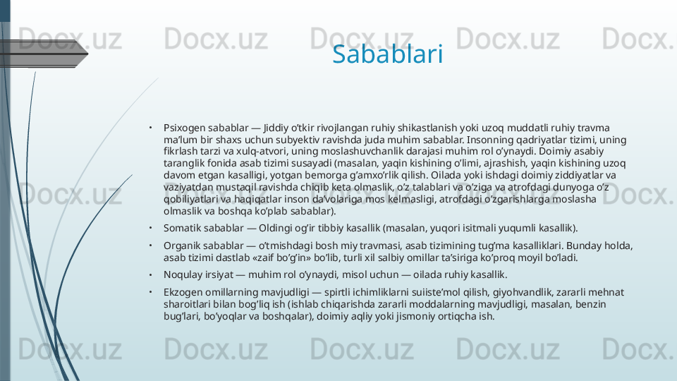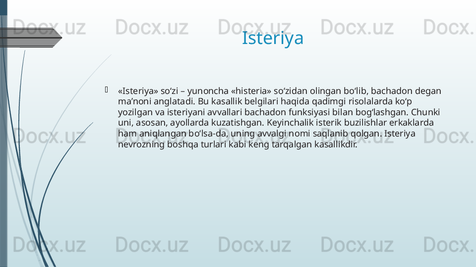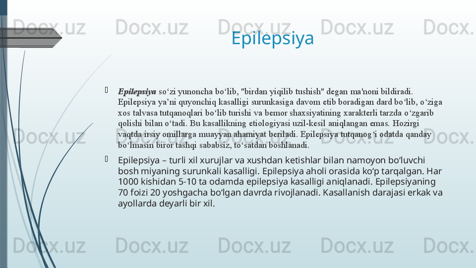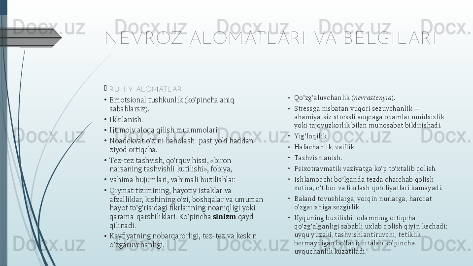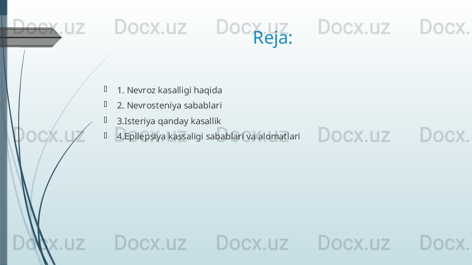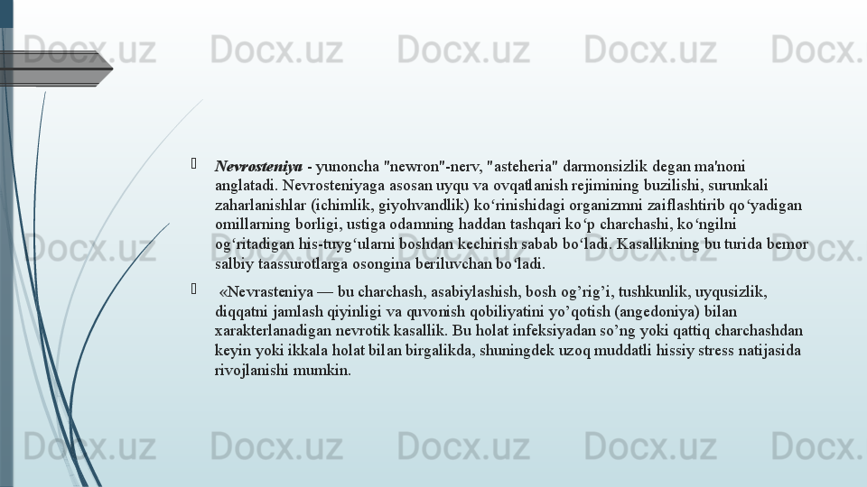 Nevroz. Nevrosteniya. Isteriya. Epilepsiya. Sabablari va alomatlari