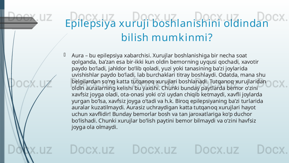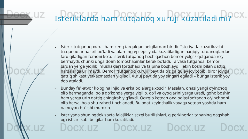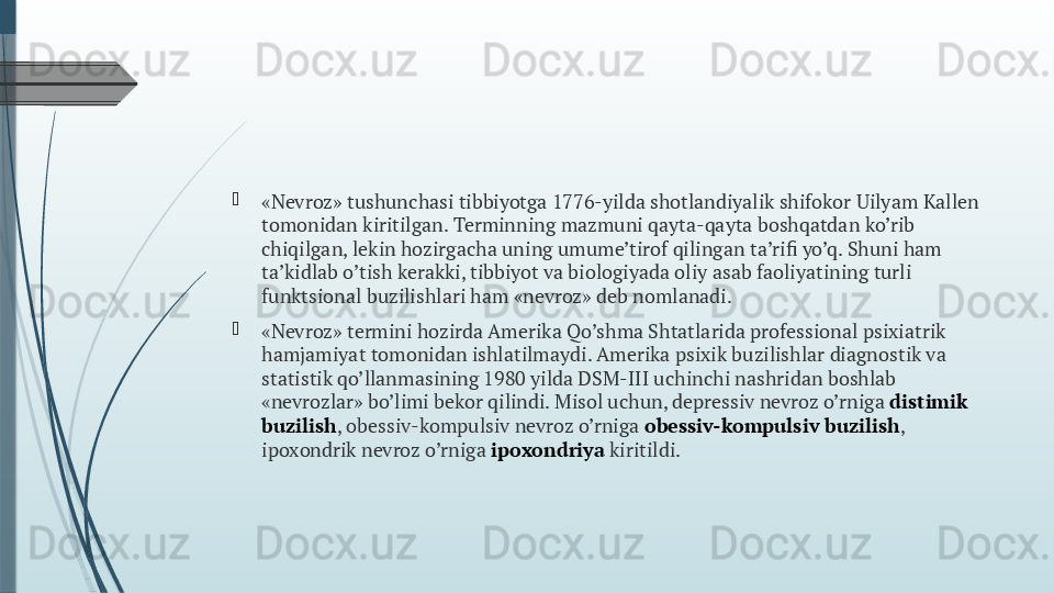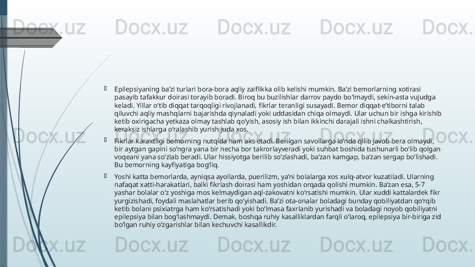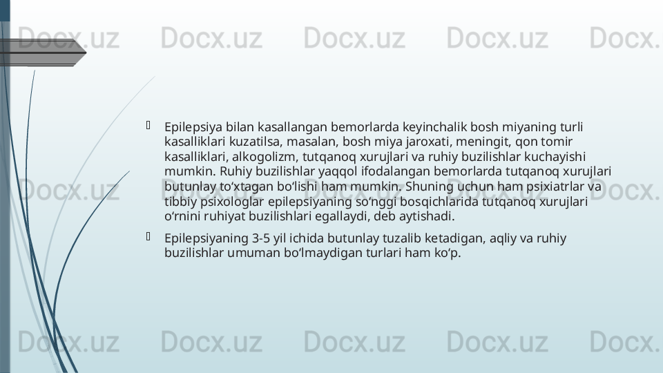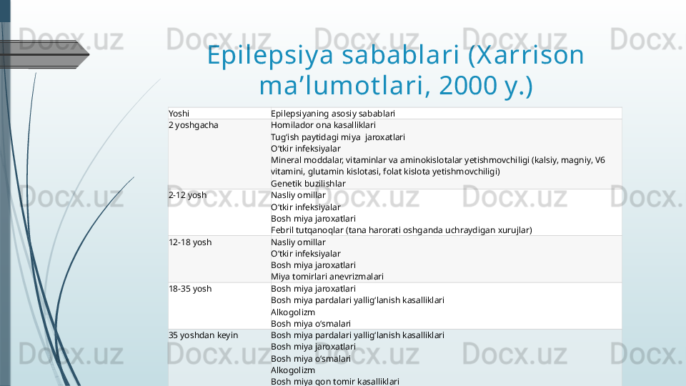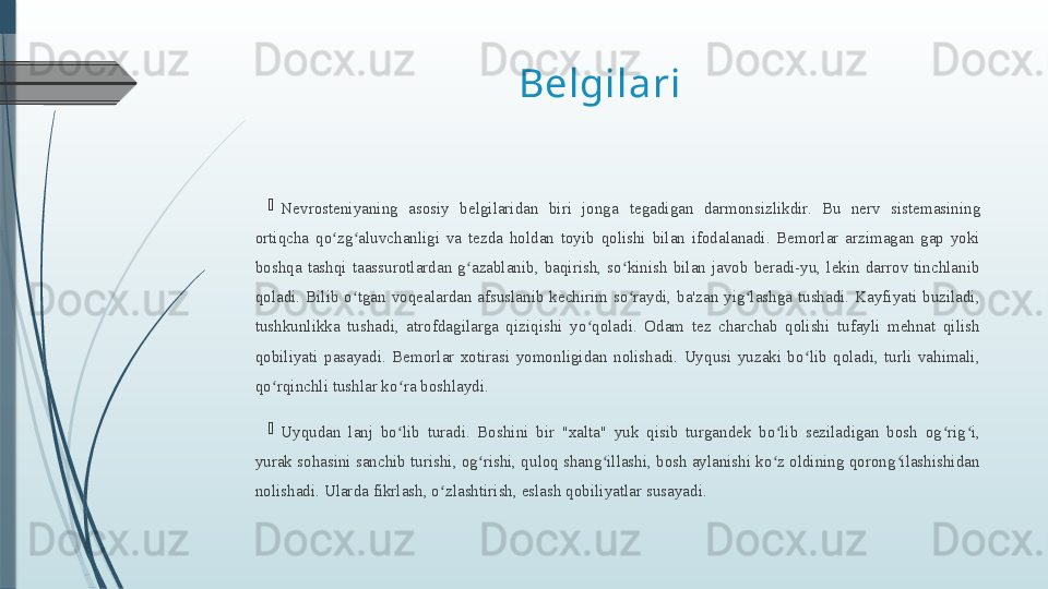 Nevroz. Nevrosteniya. Isteriya. Epilepsiya. Sabablari va alomatlari