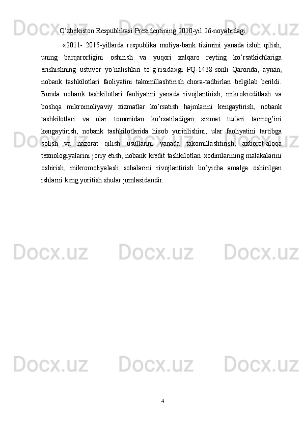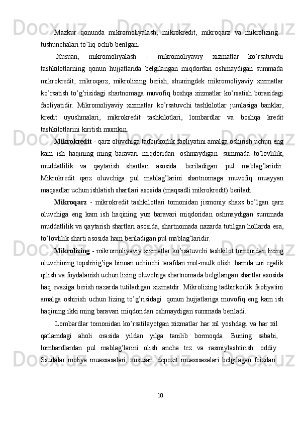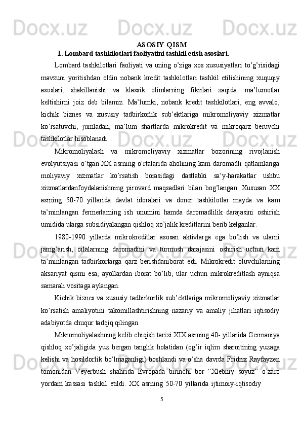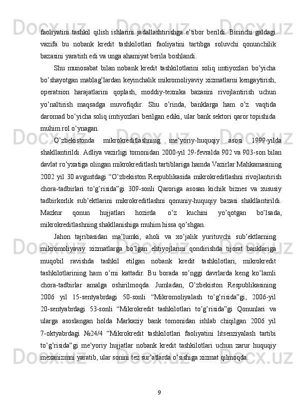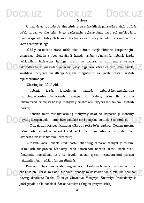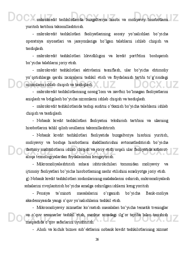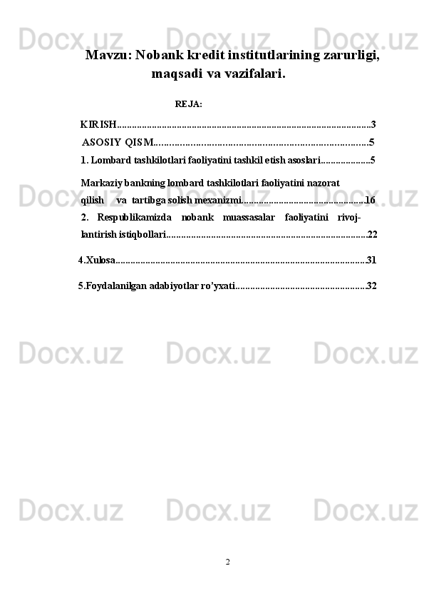 Nobank kredit institutlarining zarurligi, maqsadi va vazifalari