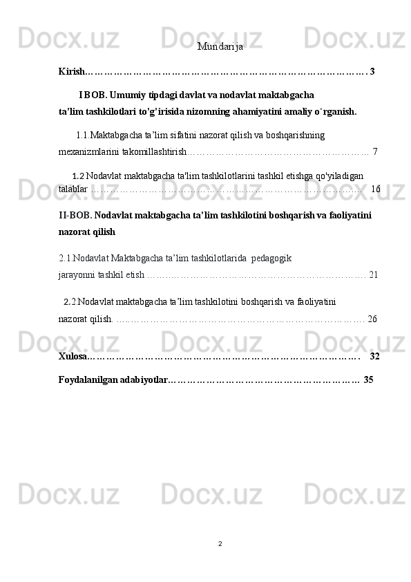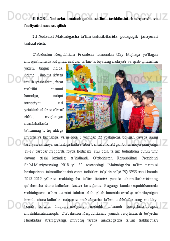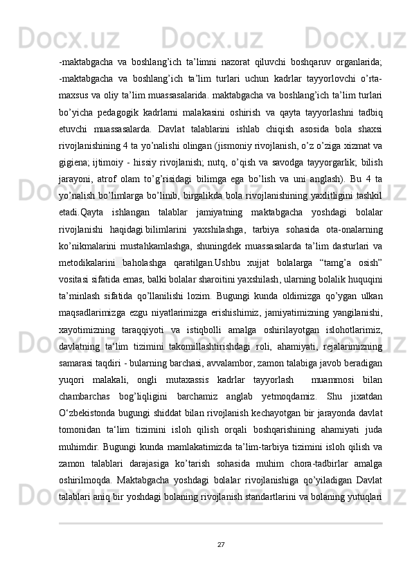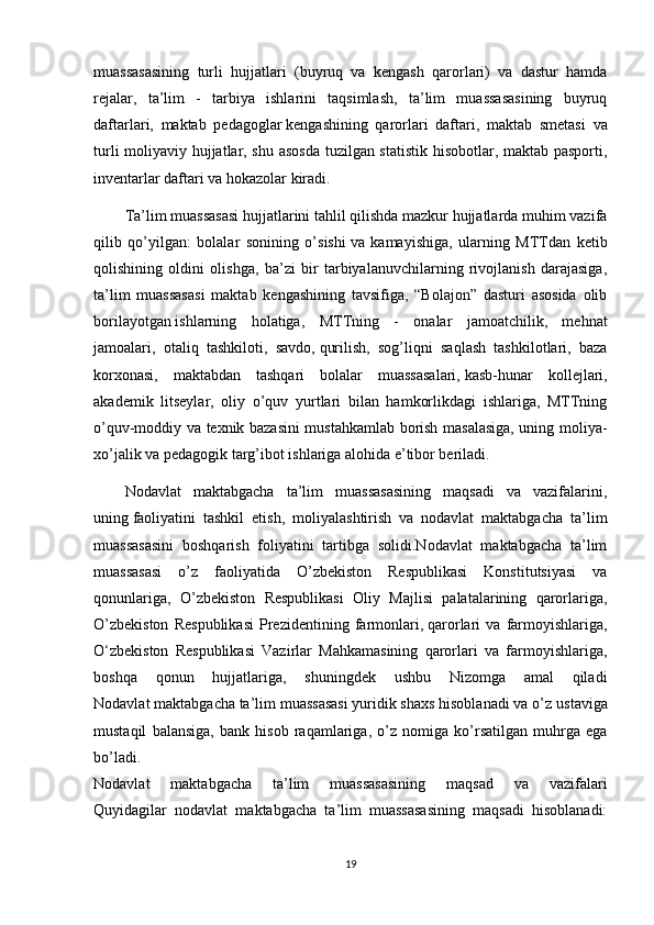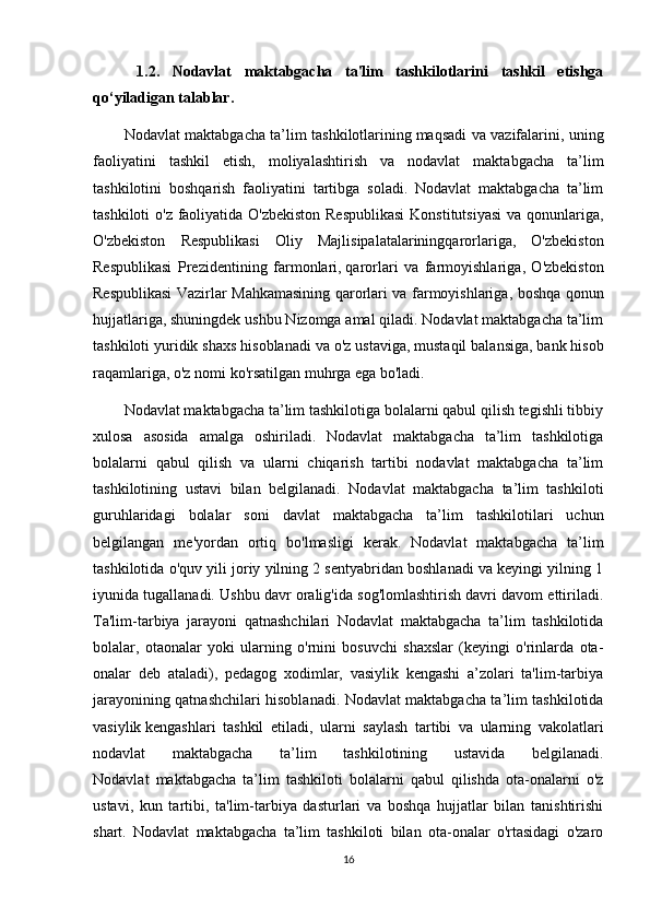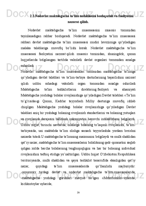 Nodavlat maktabgacha ta’lim tashkilotlarini boshqarish va uning faoliyatini nazorat qilish