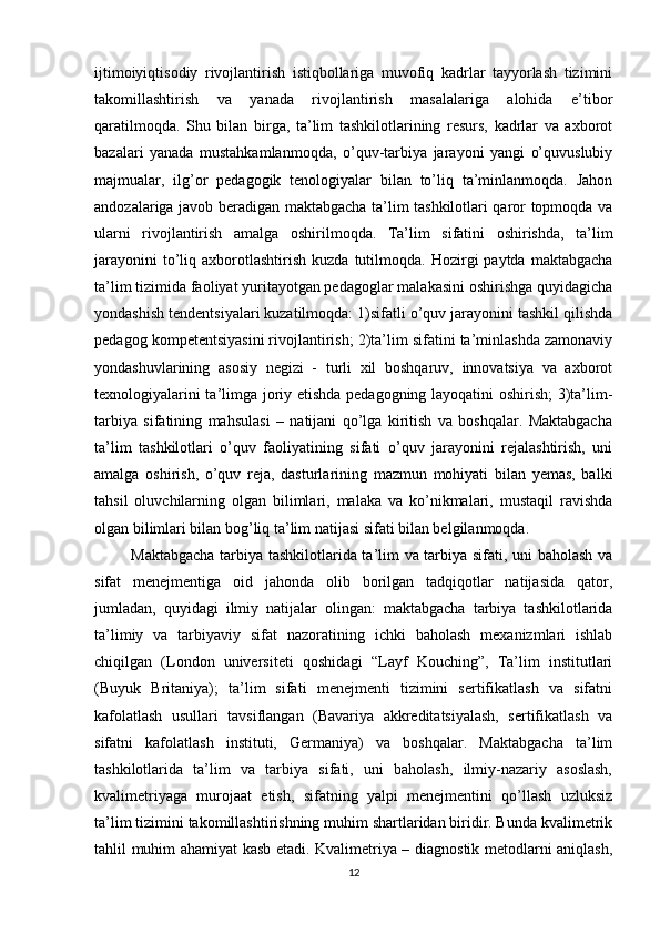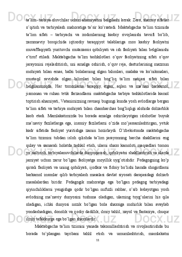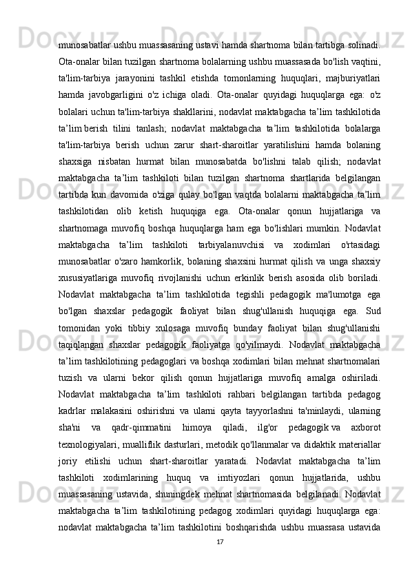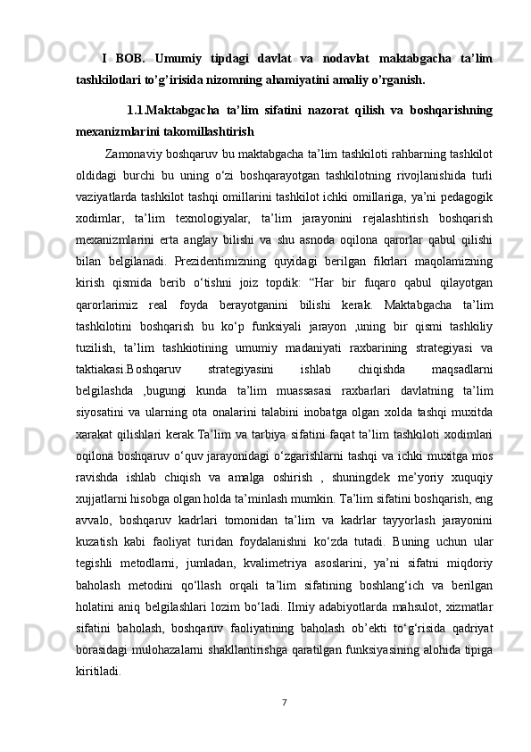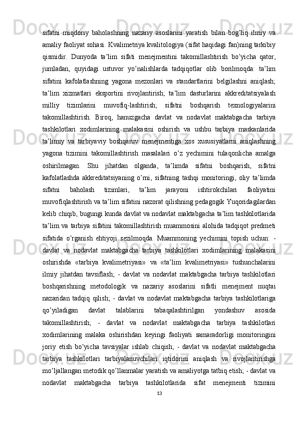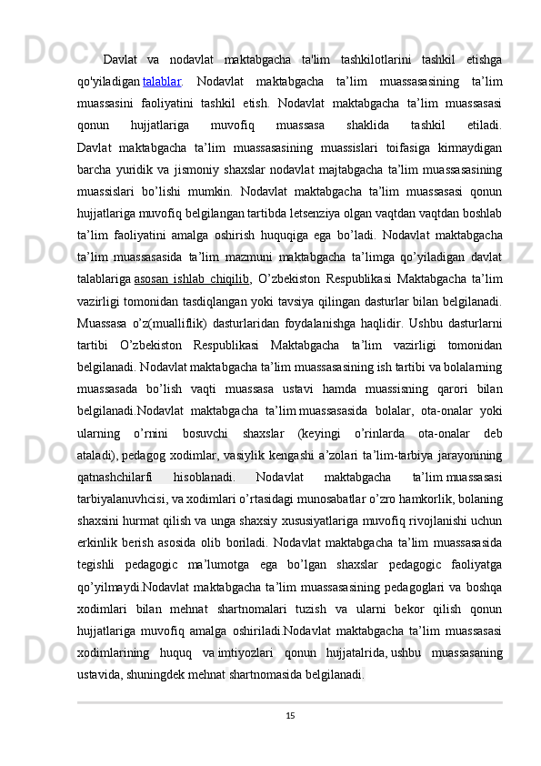 Nodavlat maktabgacha ta’lim tashkilotlarini boshqarish va uning faoliyatini nazorat qilish