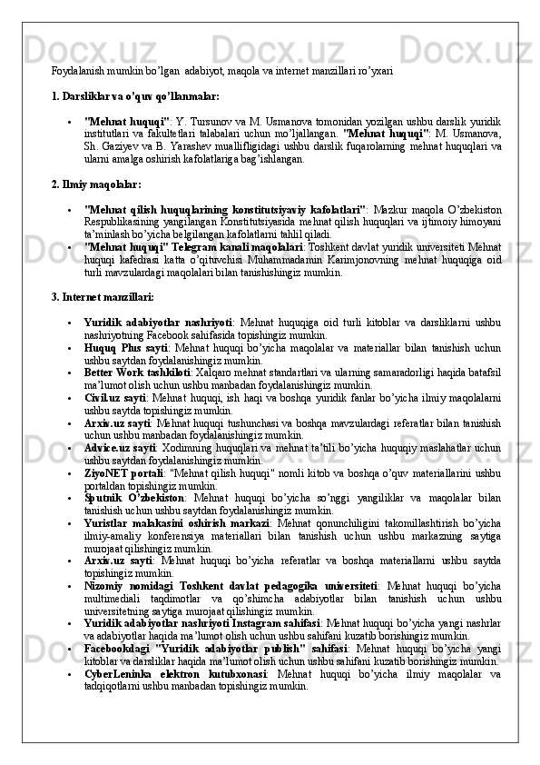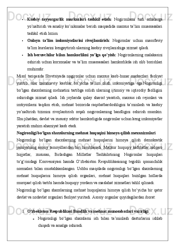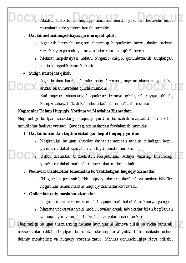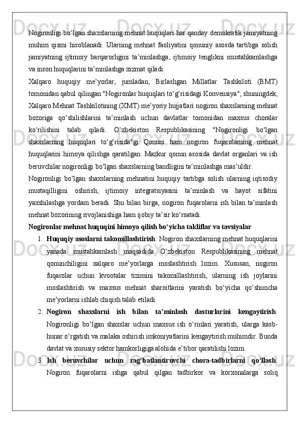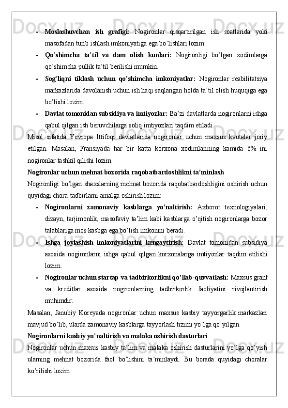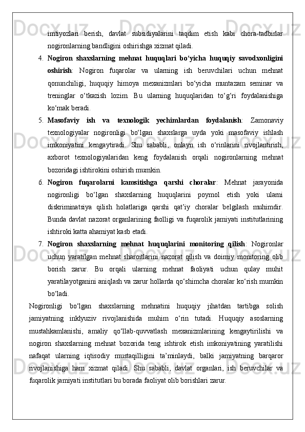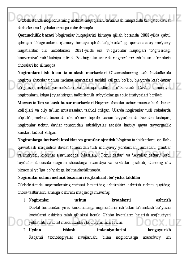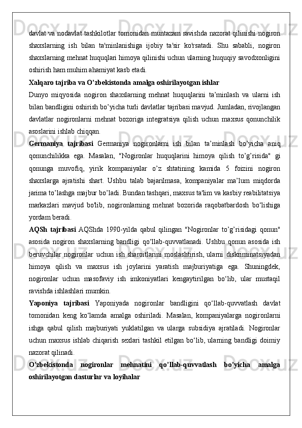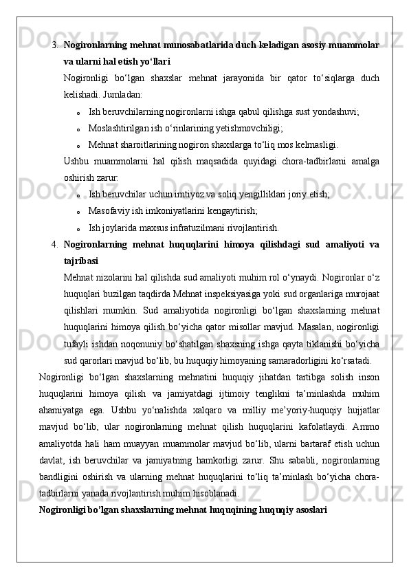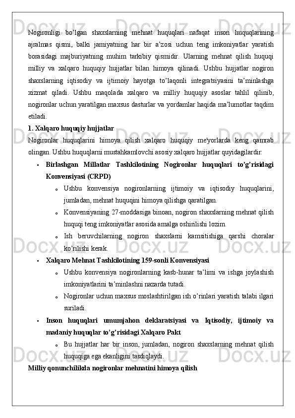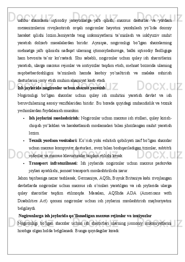 Nogironligi bo’lgan shaxslarning mehnatini huquqiy jihatdan tartibga solishning o’ziga xos xususiyatlari. 25