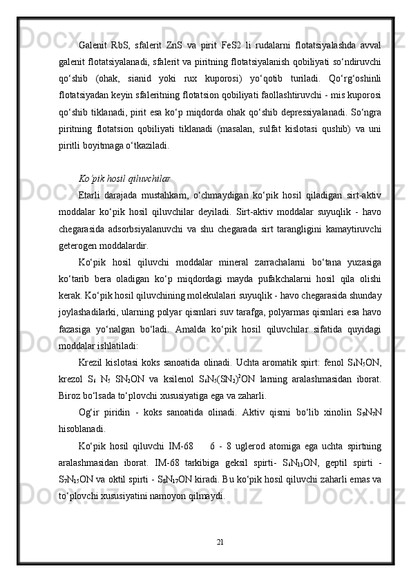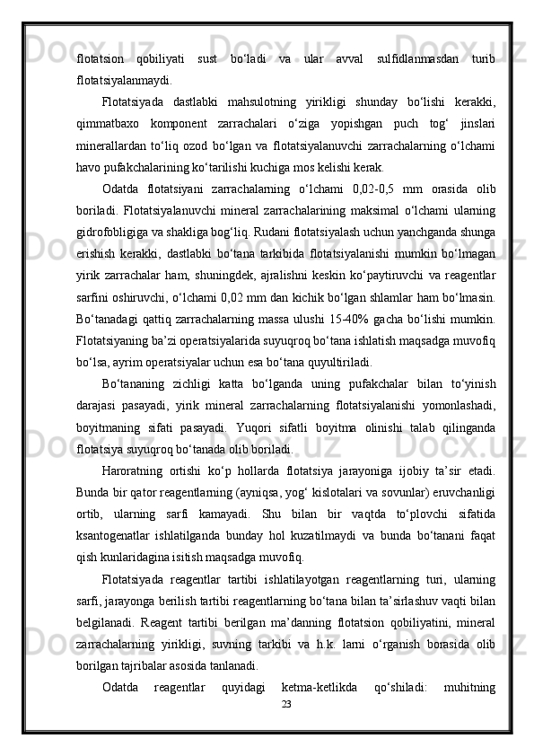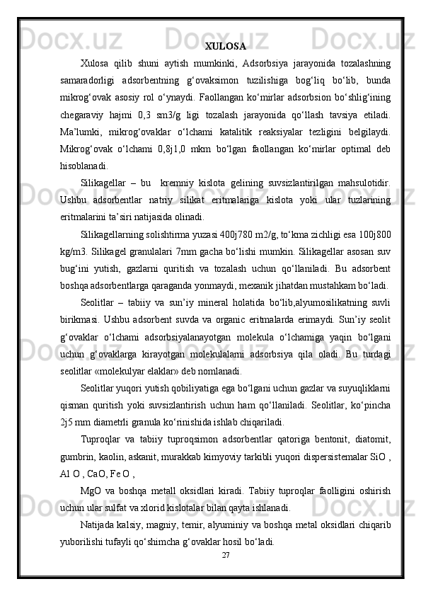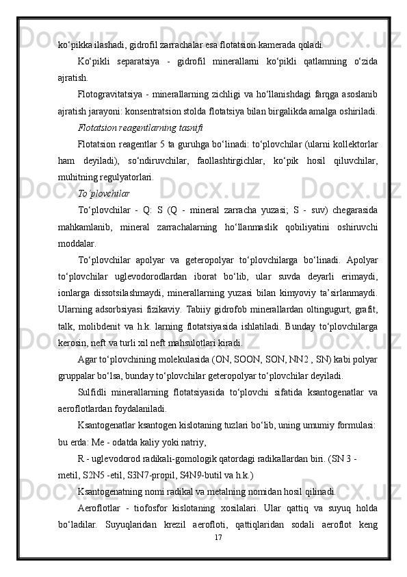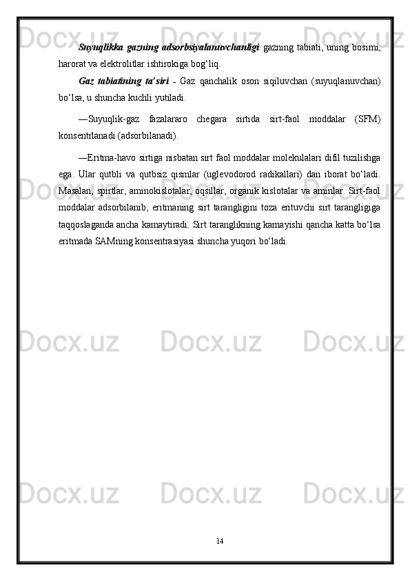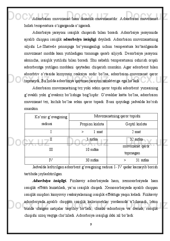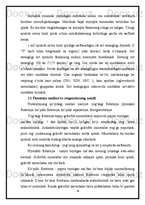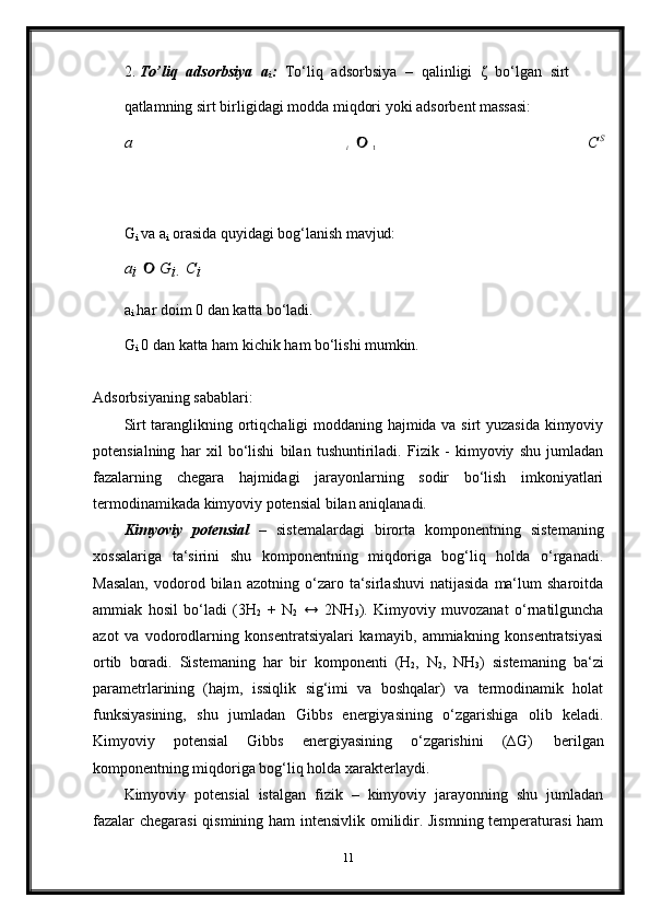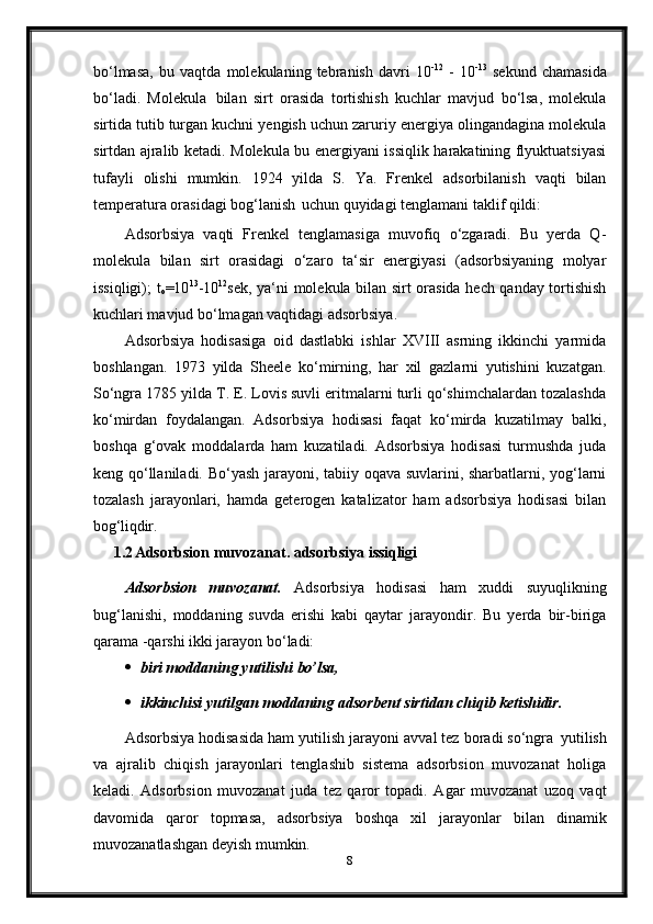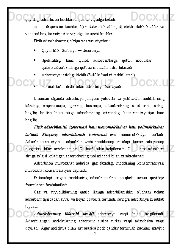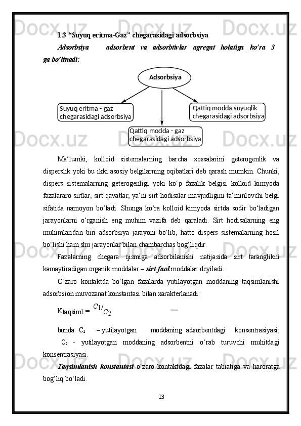 Nomlanish, flotatsiya, Adsorbsiya jarayonlarining asosiy nazariy tamoyillari_UMUMIY KIMYO VA KOLLOID KIMYO VA ORGANIK KIMYO