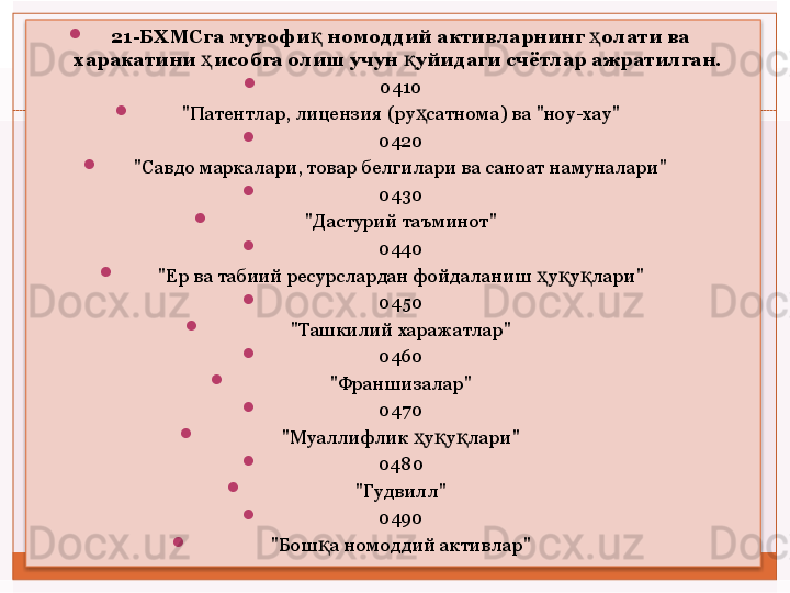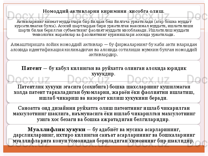 Номоддий активлар ҳисоби