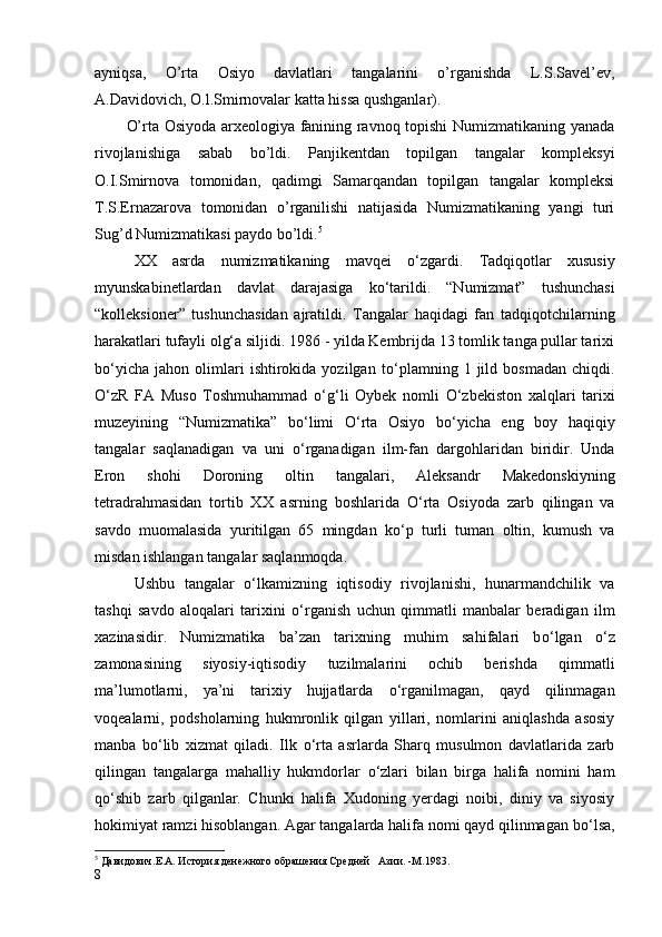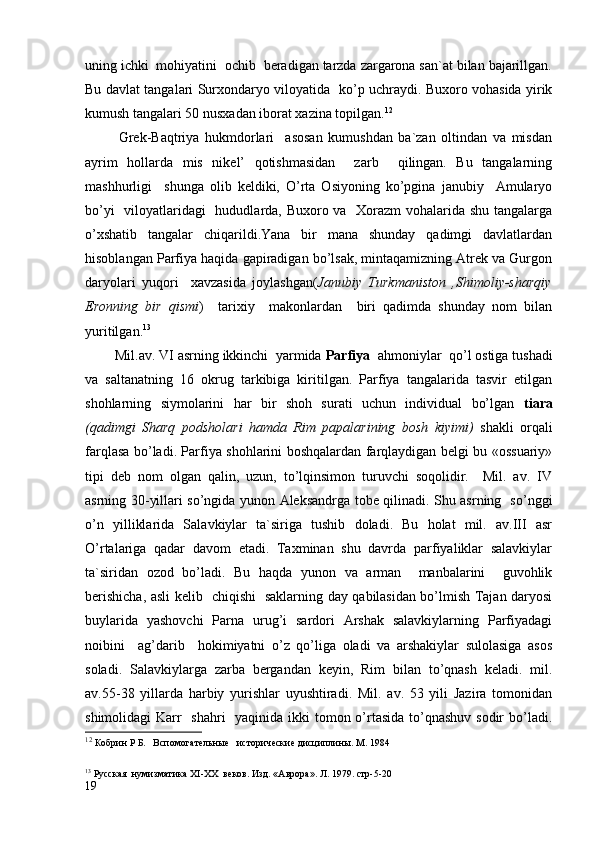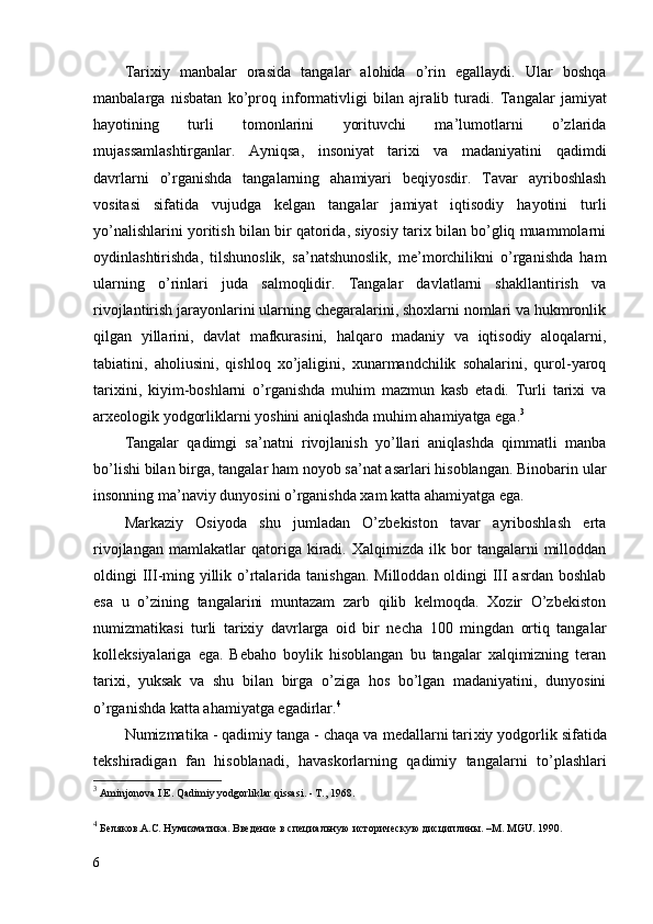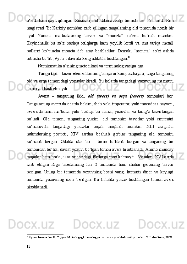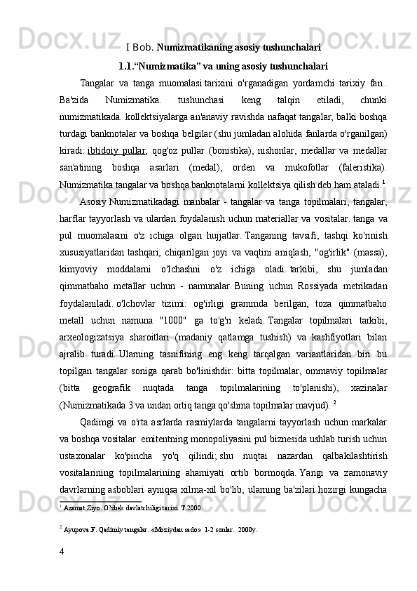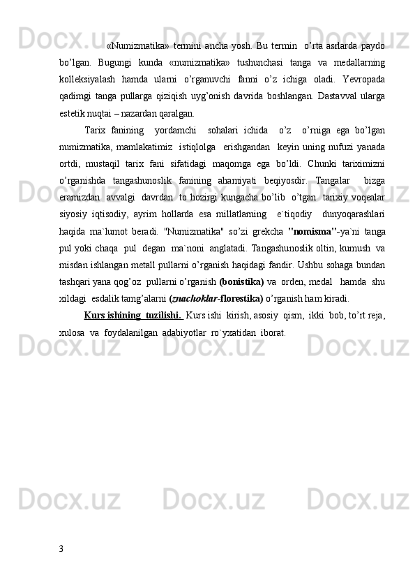 Numizmatika asoslari. Numizmatikaning asosiy tushunchalari