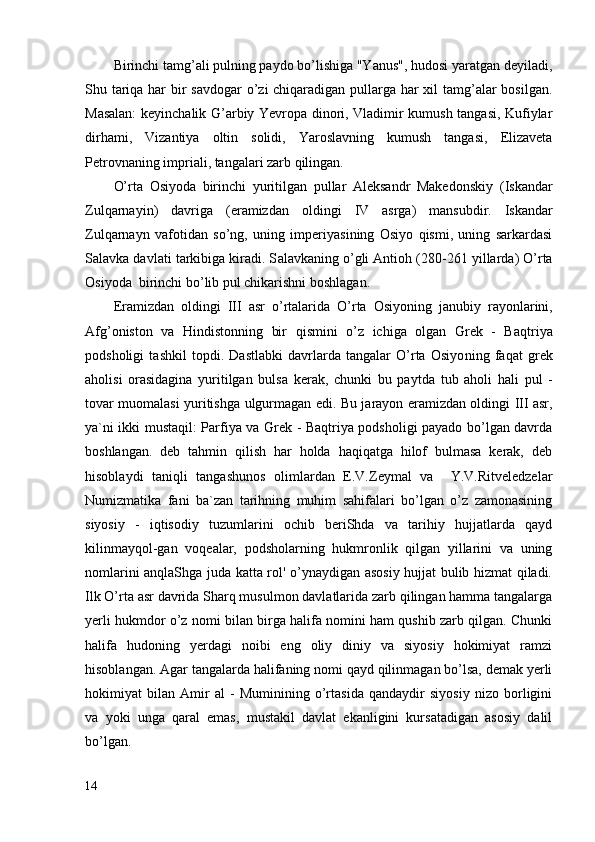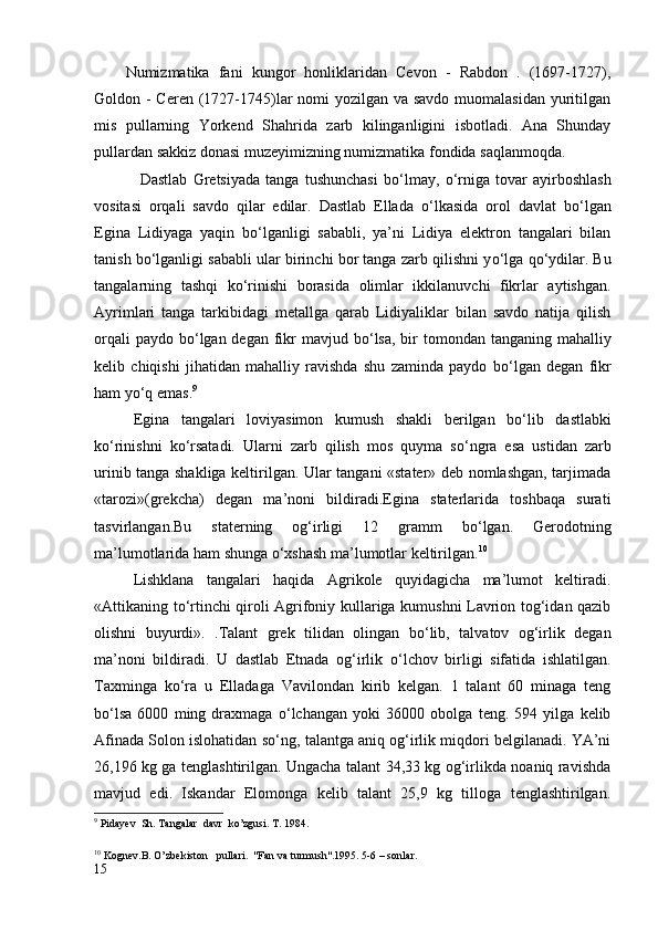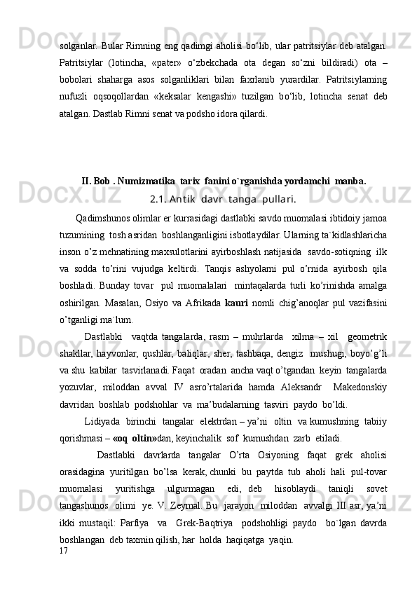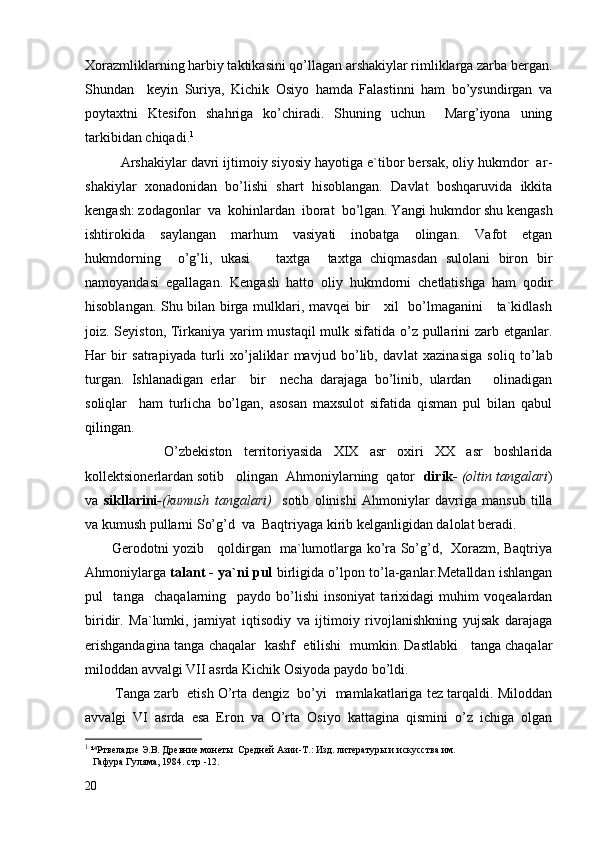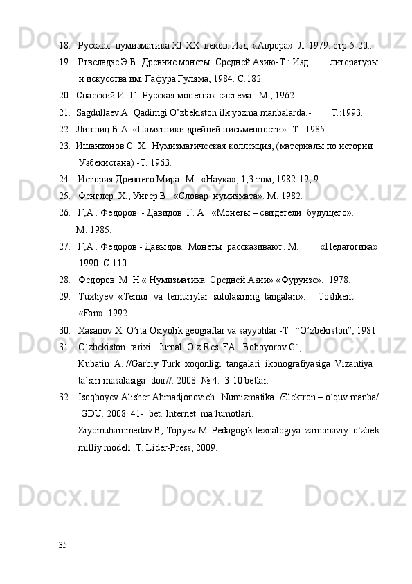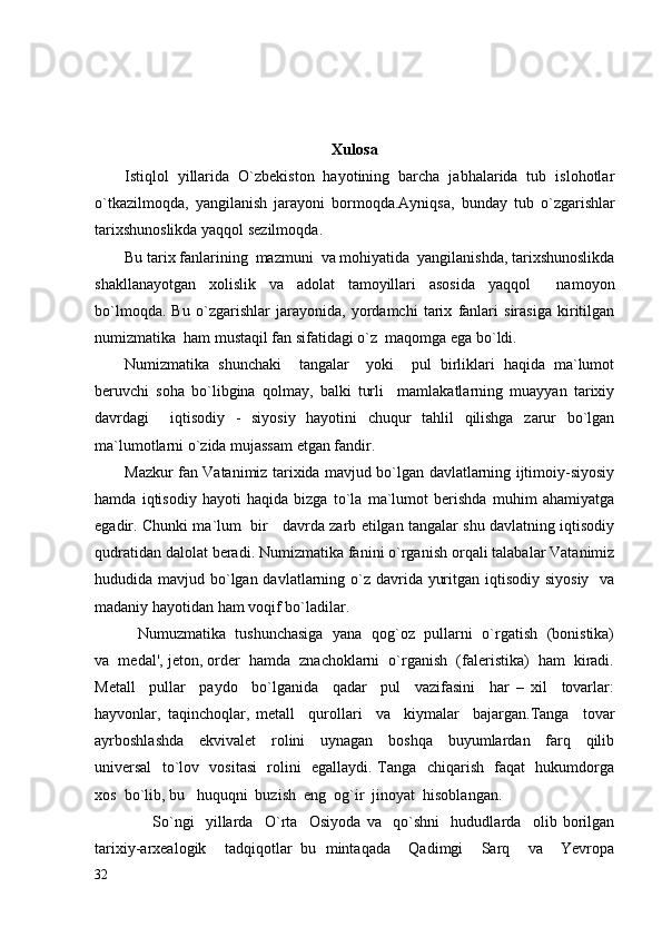 Numizmatika asoslari. Numizmatikaning asosiy tushunchalari