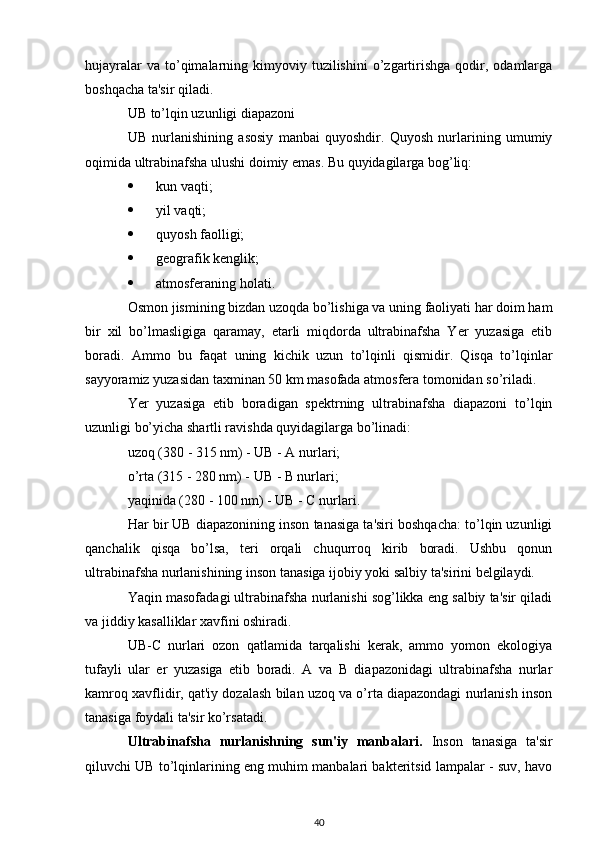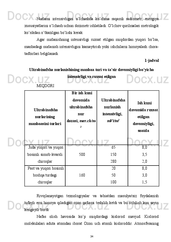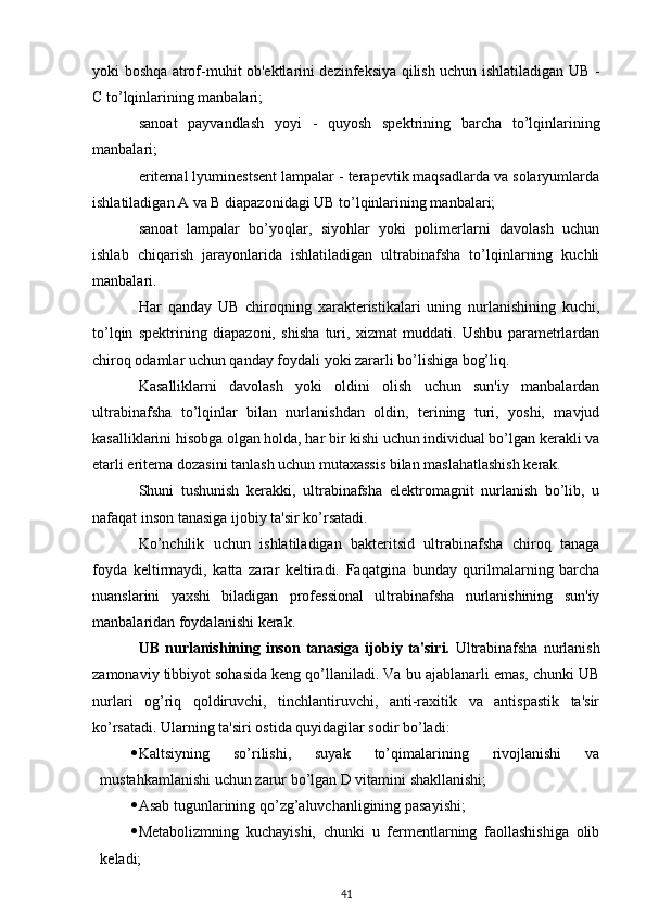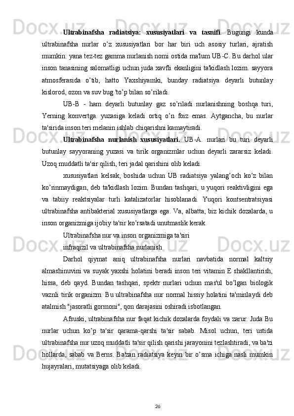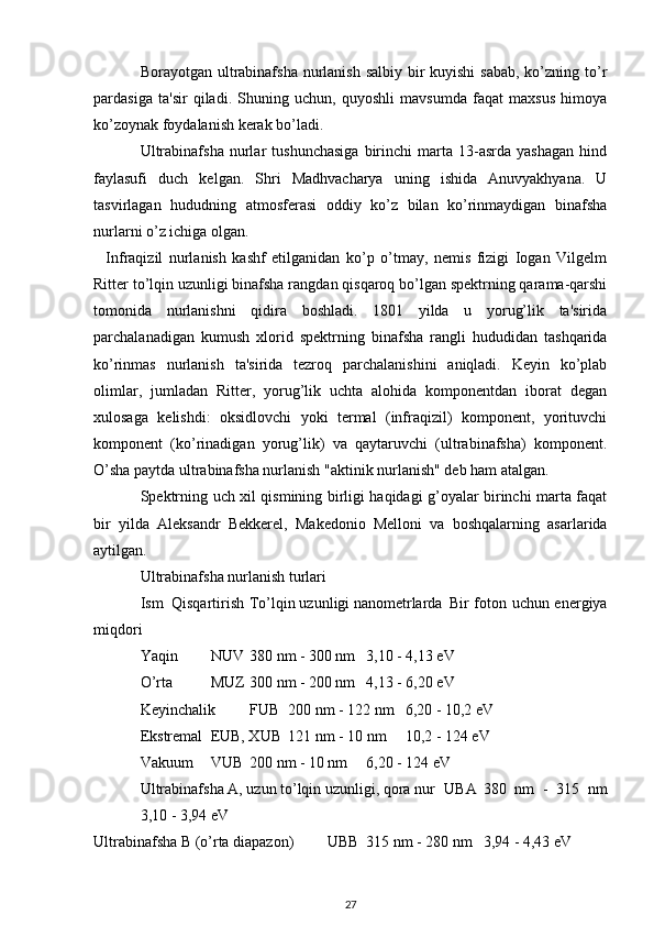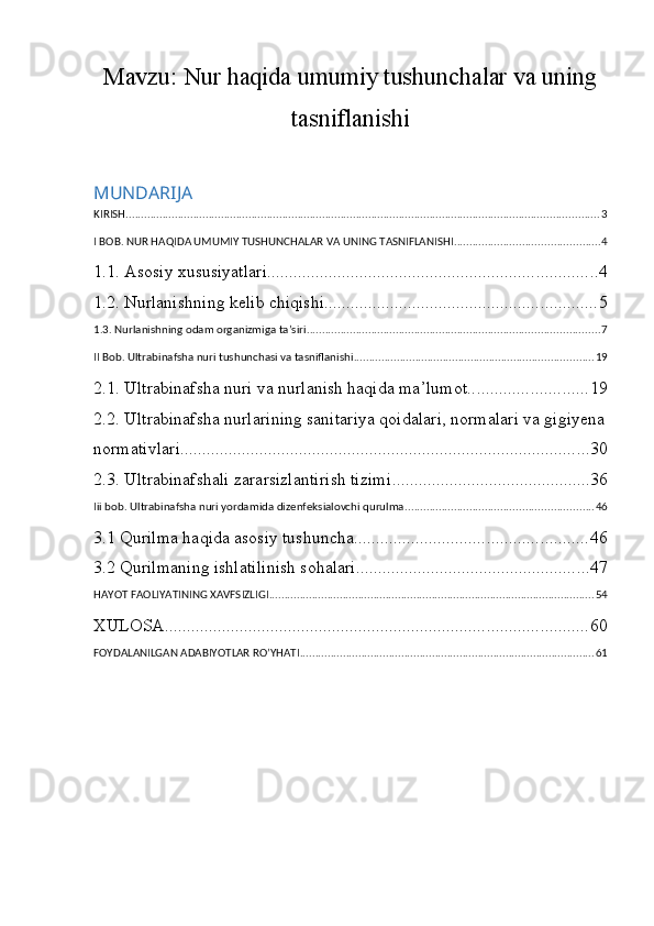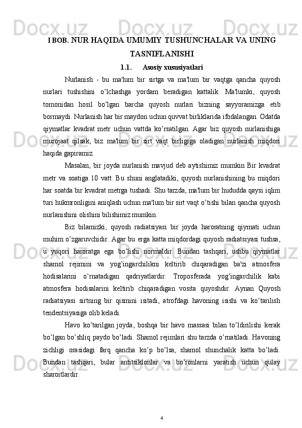 Nur haqida umumiy tushunchalar va uning tasniflanishi