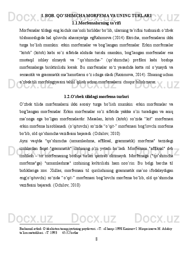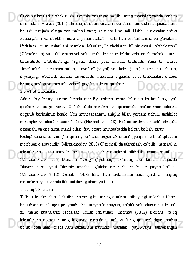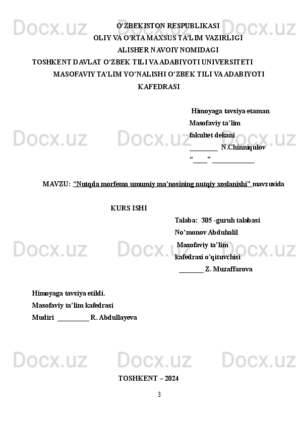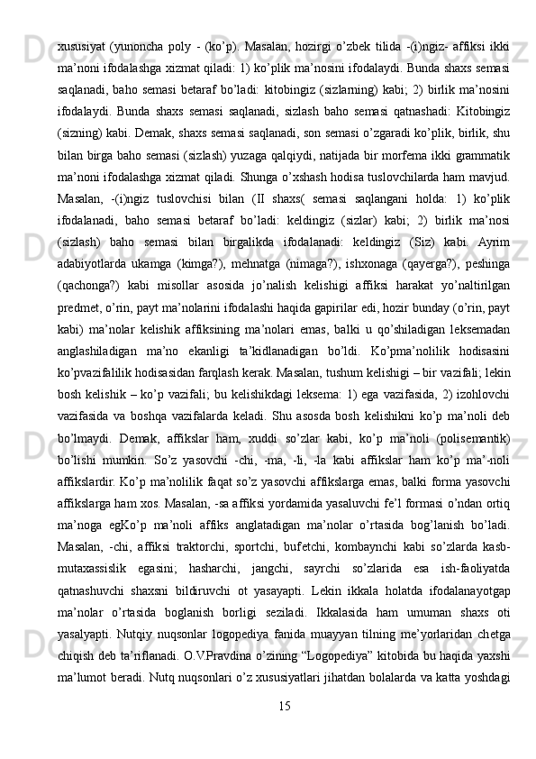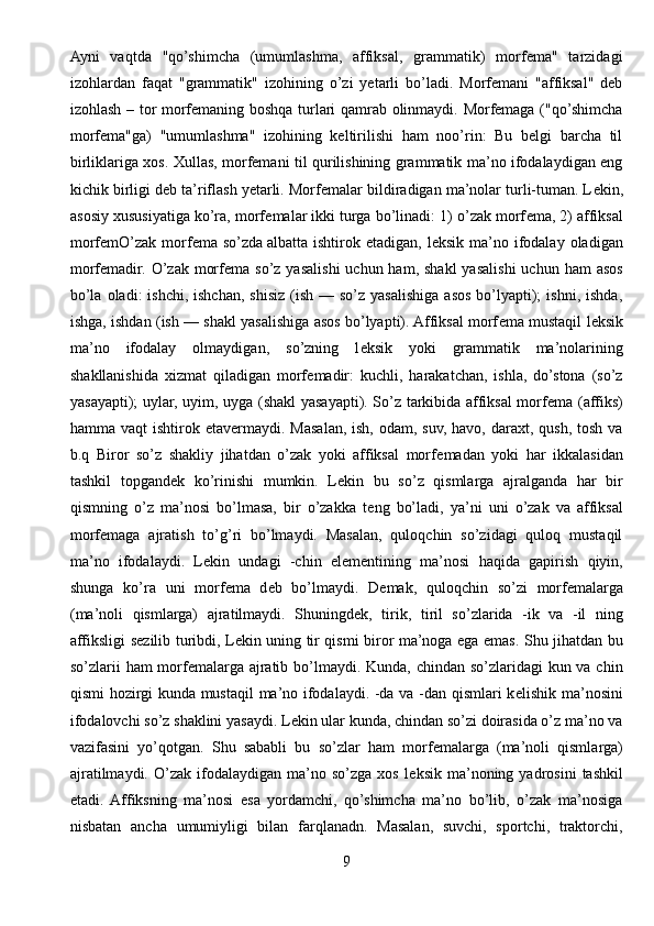 Nutqda morfema umumiy ma’nosining nutqiy xoslanishi