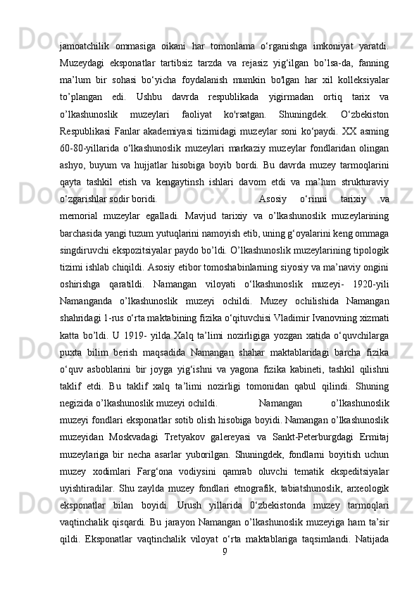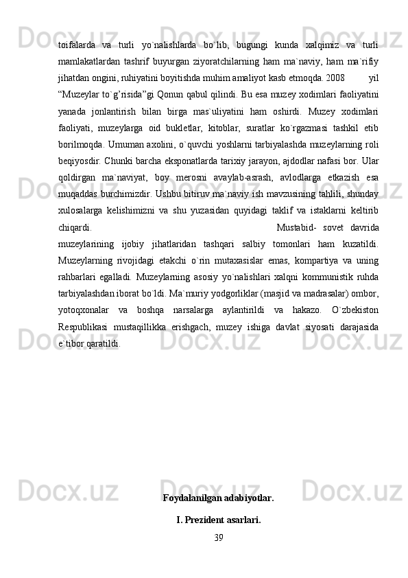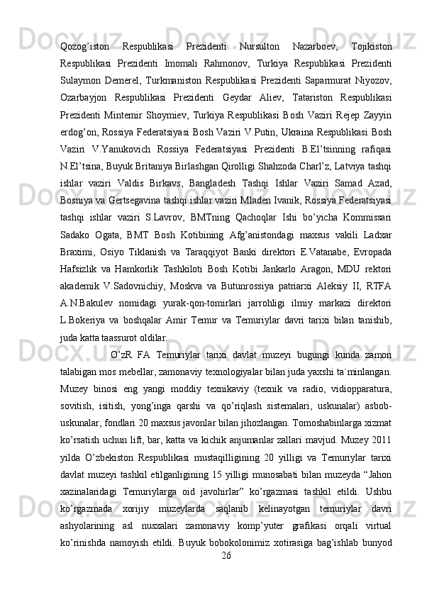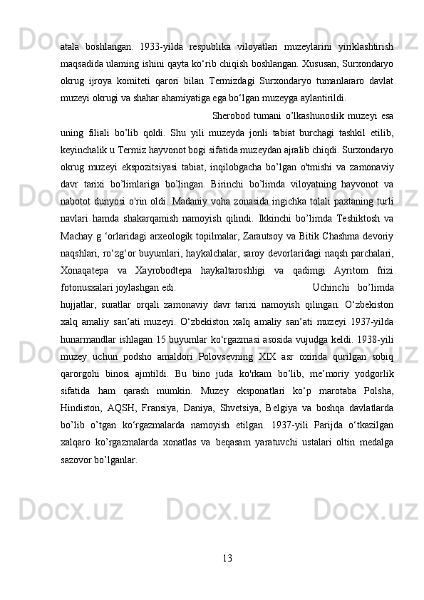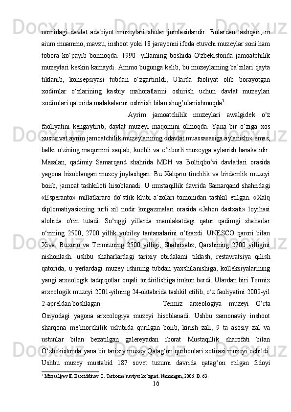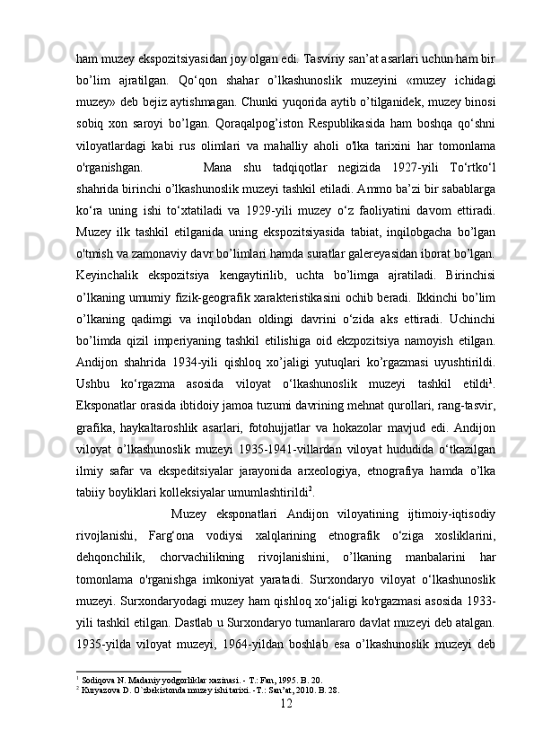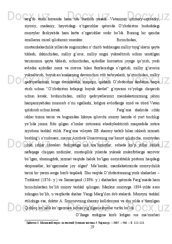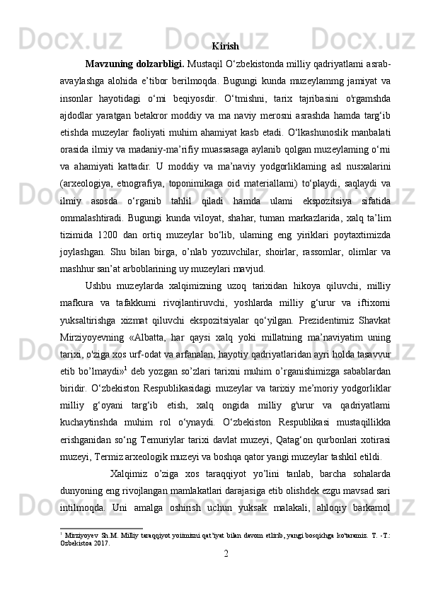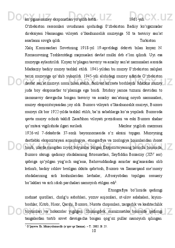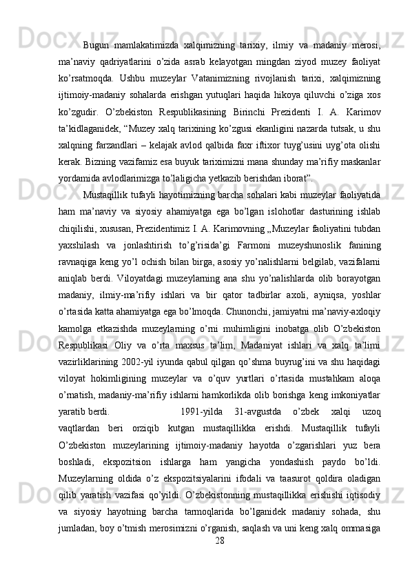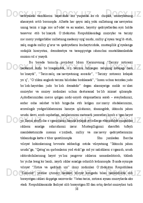 O'lka tarixini o'rganishda muzeylarning ahamiyati