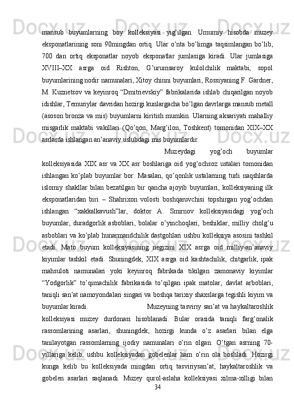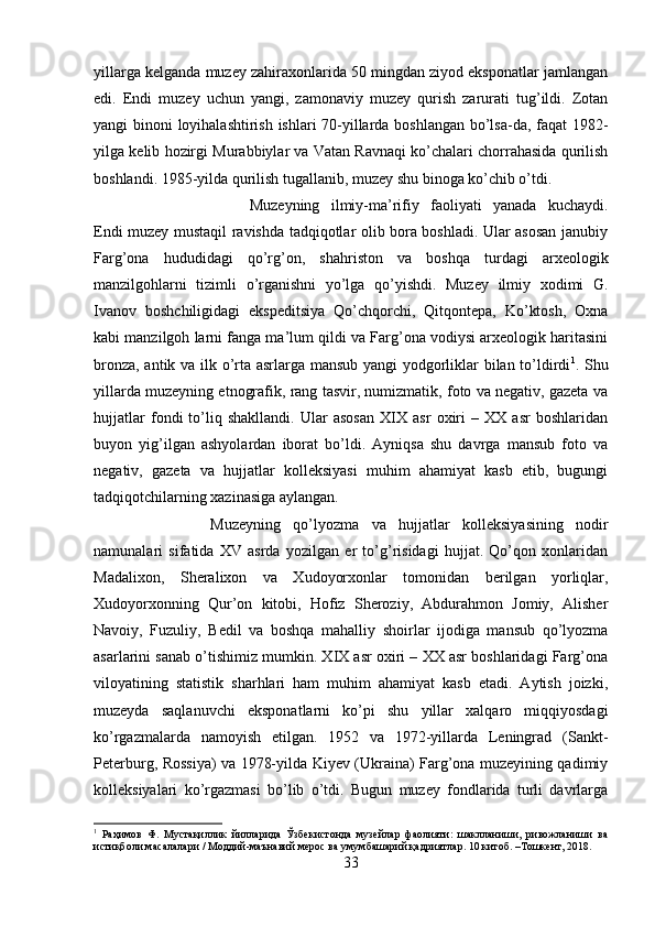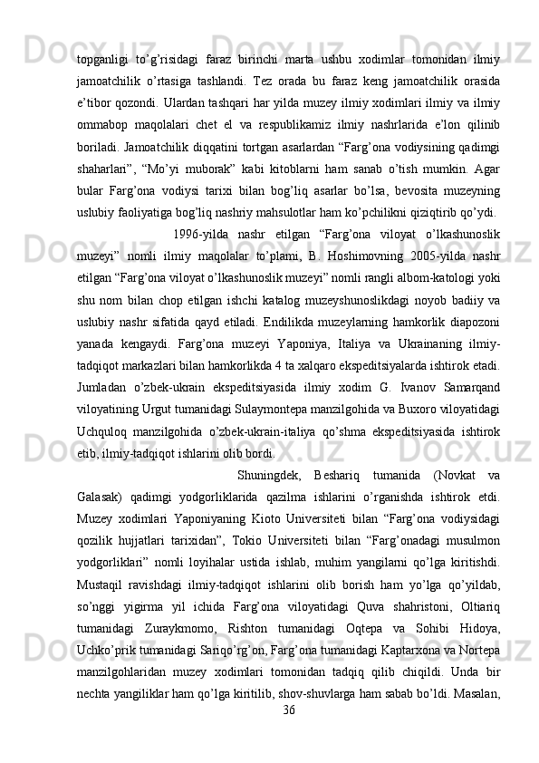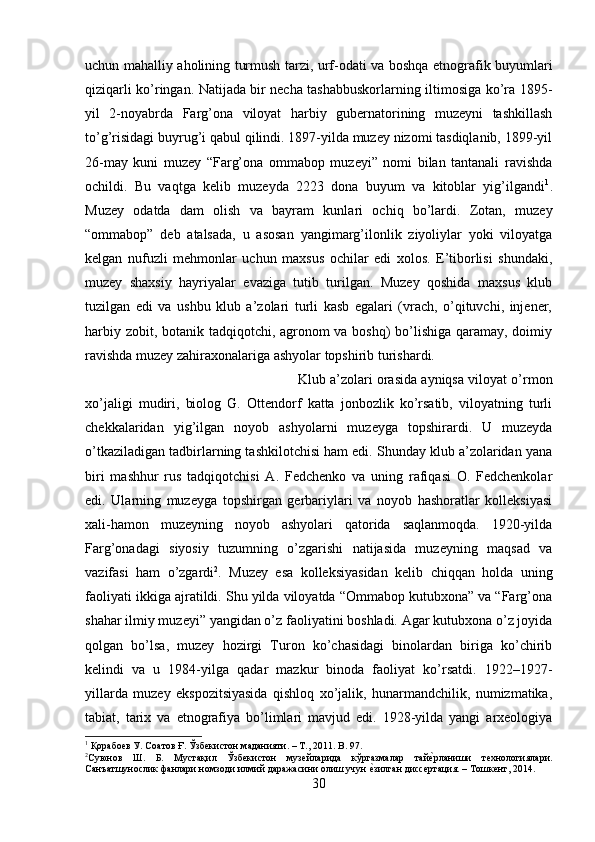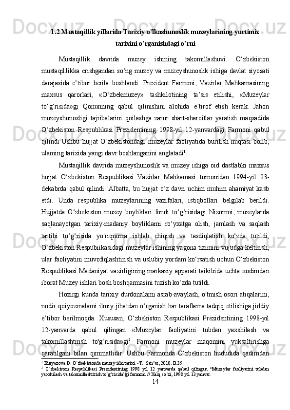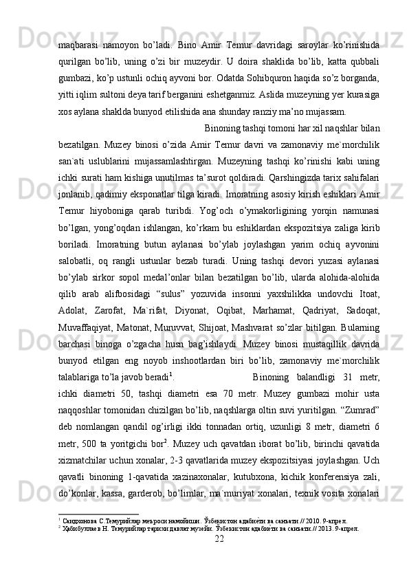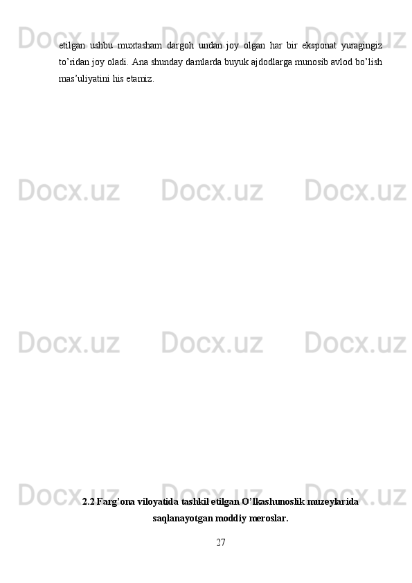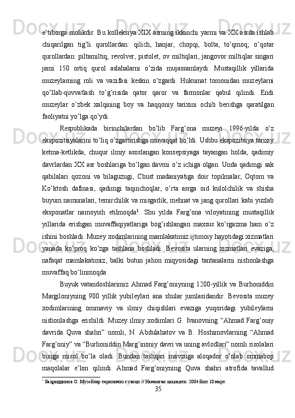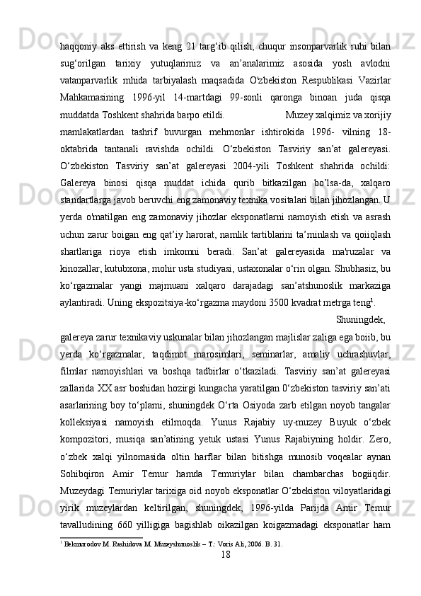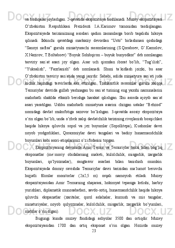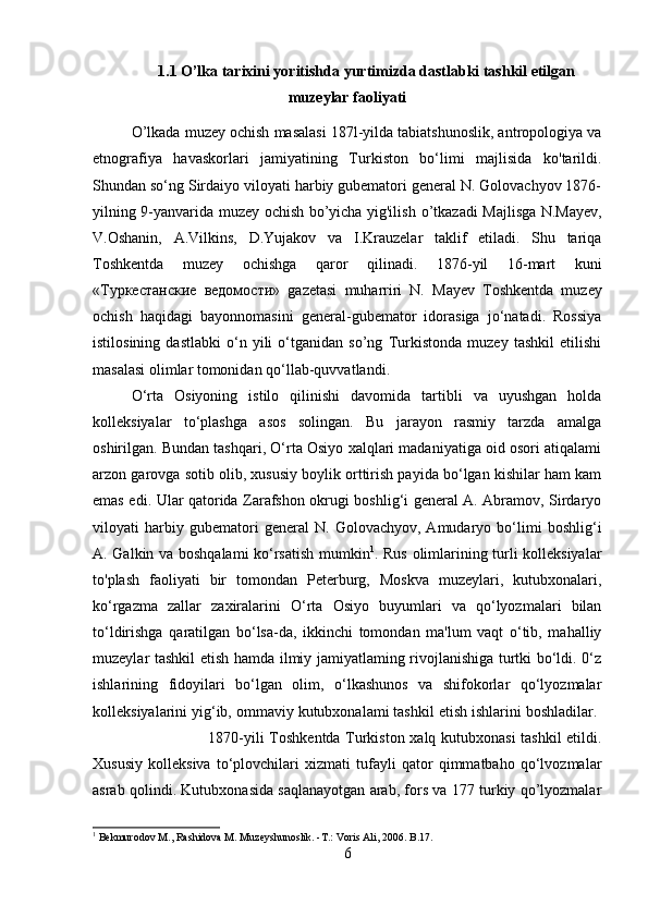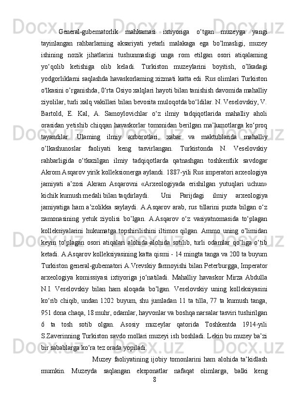 O'lka tarixini o'rganishda muzeylarning ahamiyati