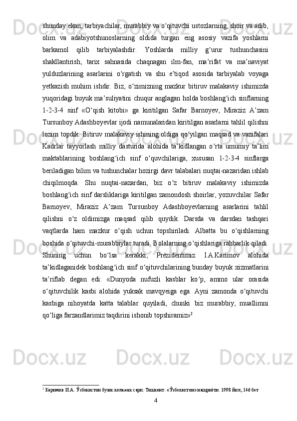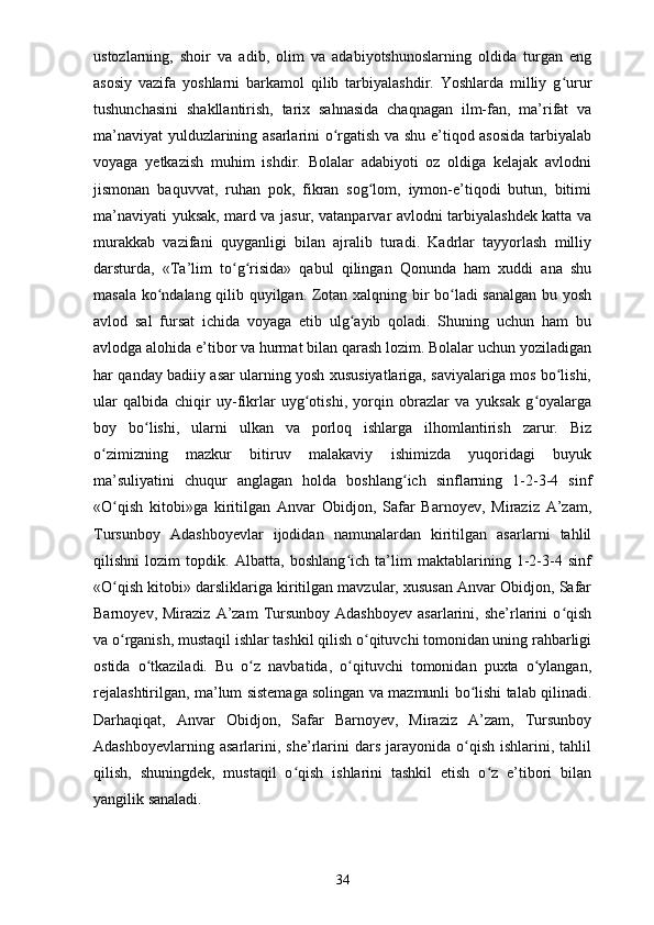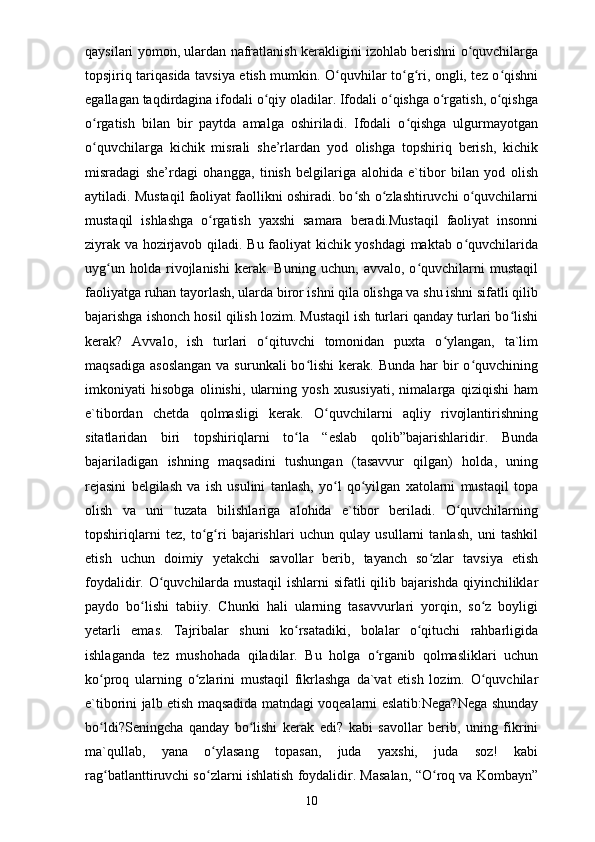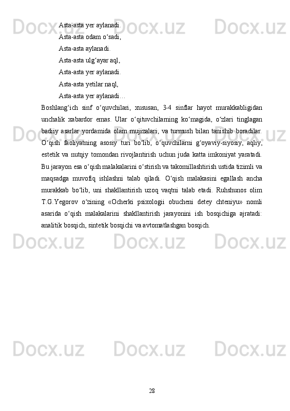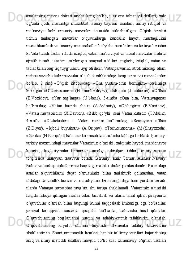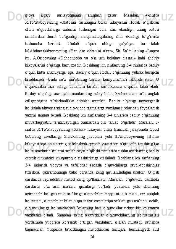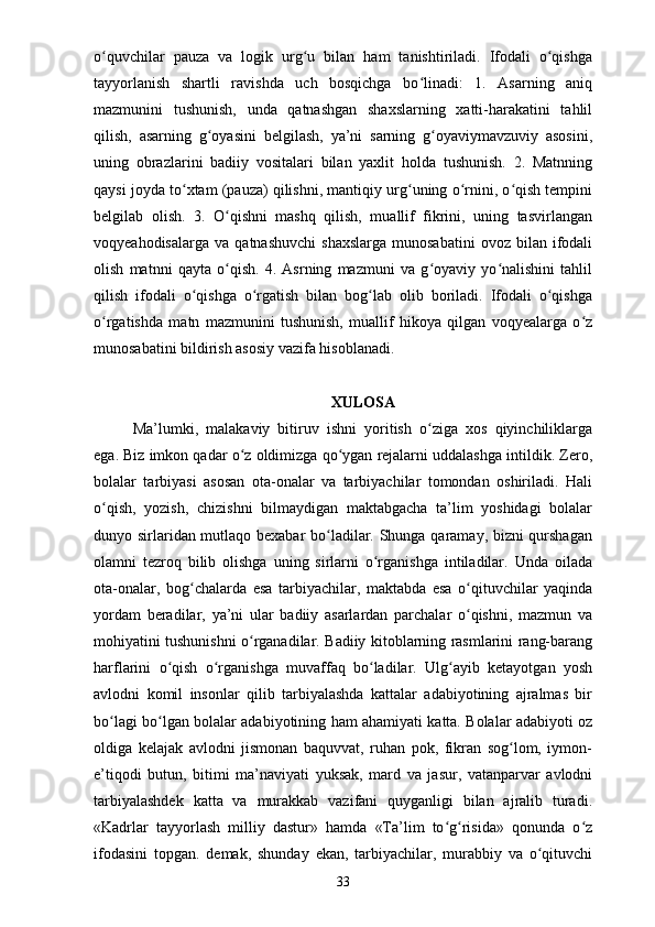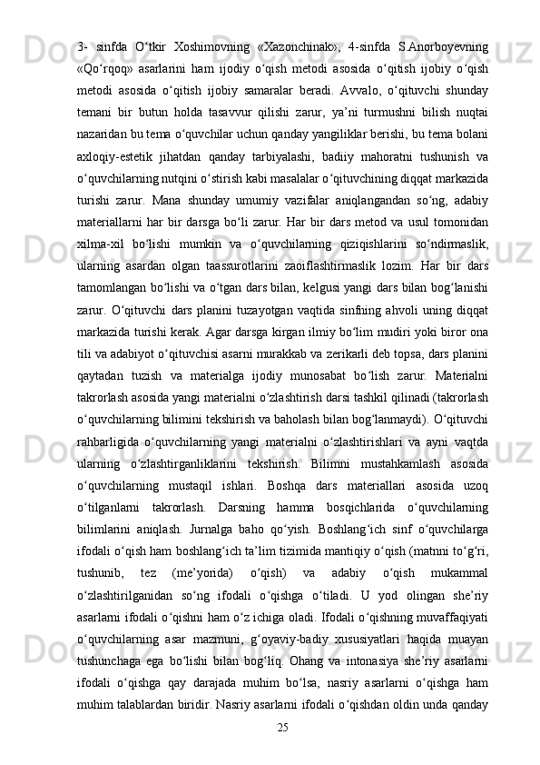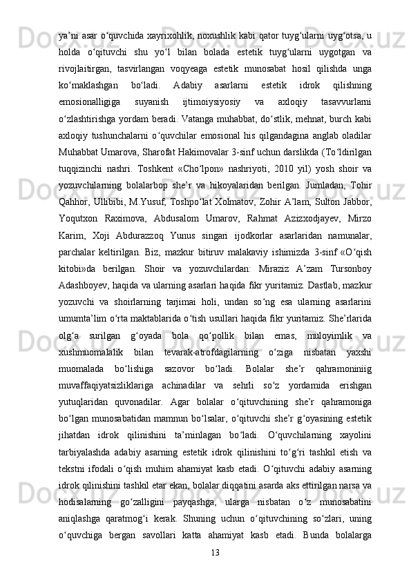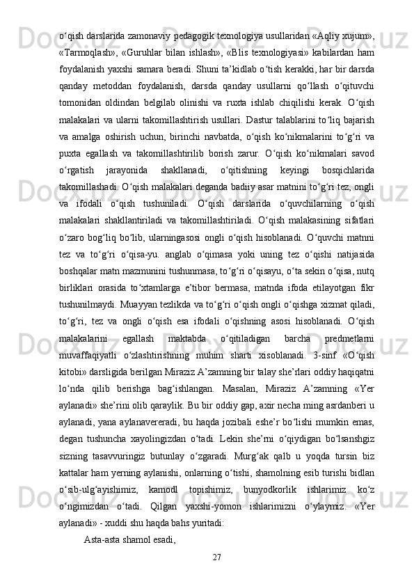 Oʻqish darslarida she'riy asarlarni oʻrganish uslubiyoti
